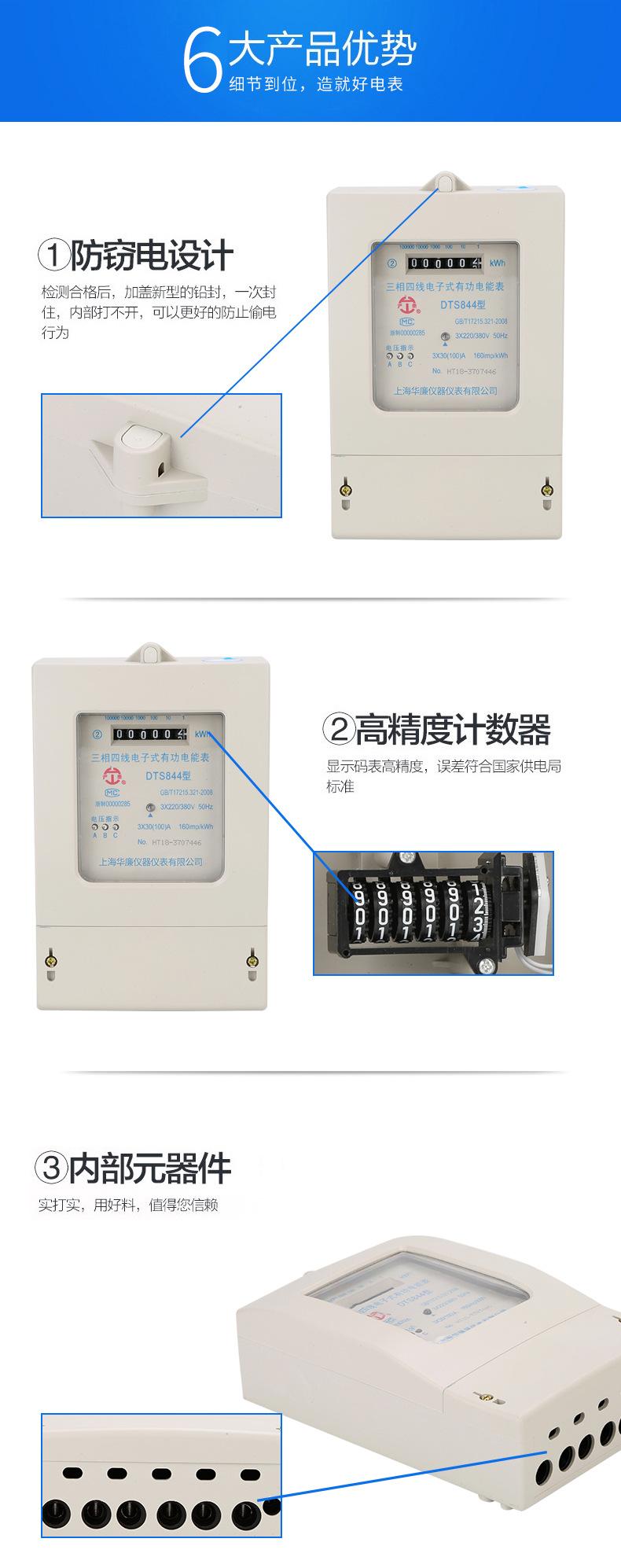 Medidor de Energía Eléctrica Electrónico Activo Trifásico de Cuatro Hilos DTS844 Trifásico de Tres Hilos Resistencia-capacitancia Medidor de Energía Eléctrica Inteligente Preciso