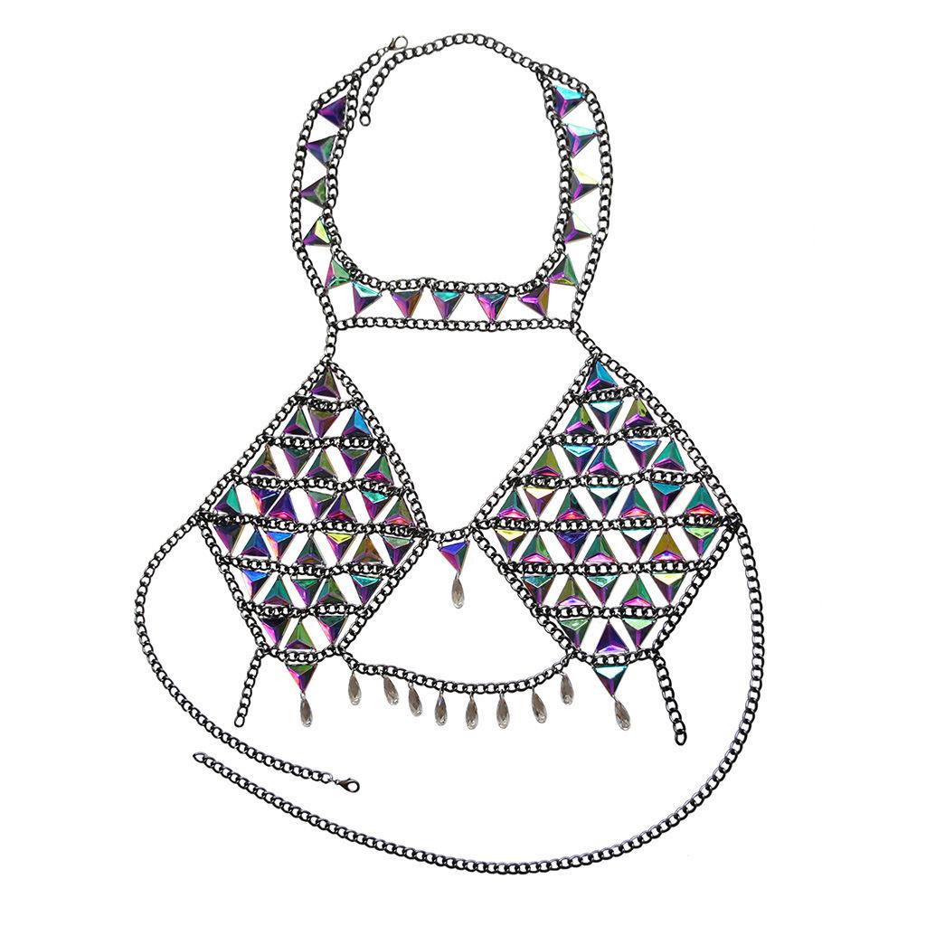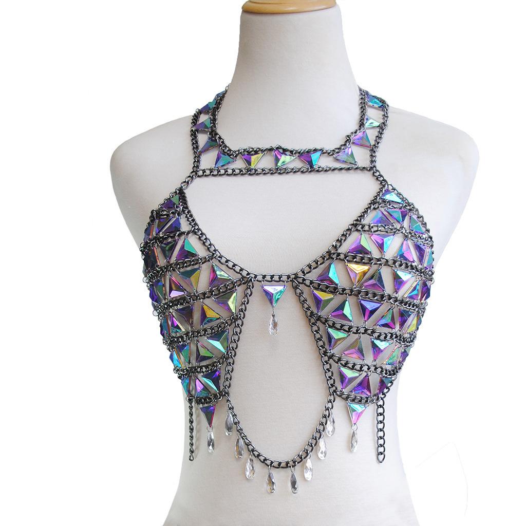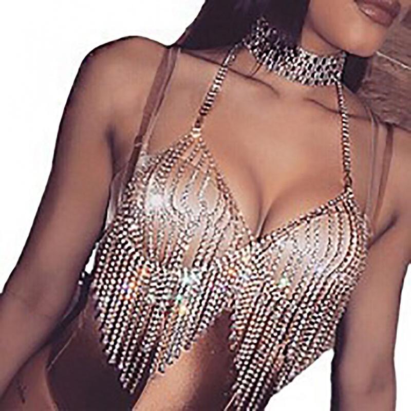 Bikini tipo chaleco con cuello halter y cadena para el cuerpo, estilo de moda de AliExpress, para discoteca, con piedras preciosas, primavera y verano 2019¥46Compre ya
