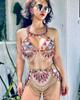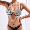 Bikini con cadena para mujer, estilo novedoso, estilo transfronterizo europeo y americano, con cuello halter y piedras preciosas que gotean en el club nocturno¥46Compre ya