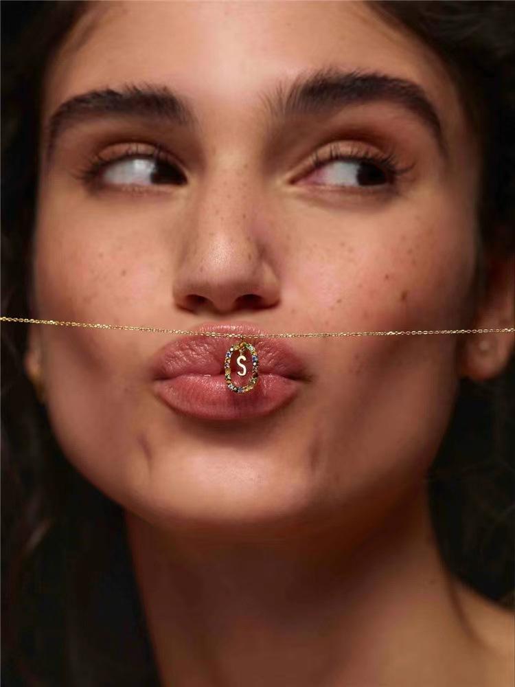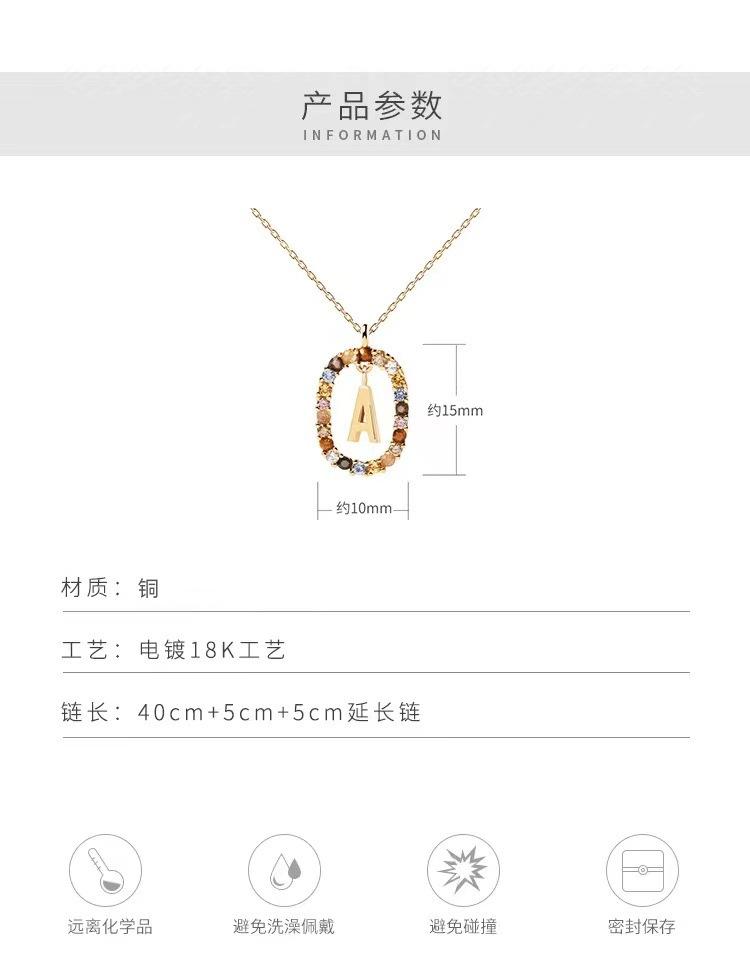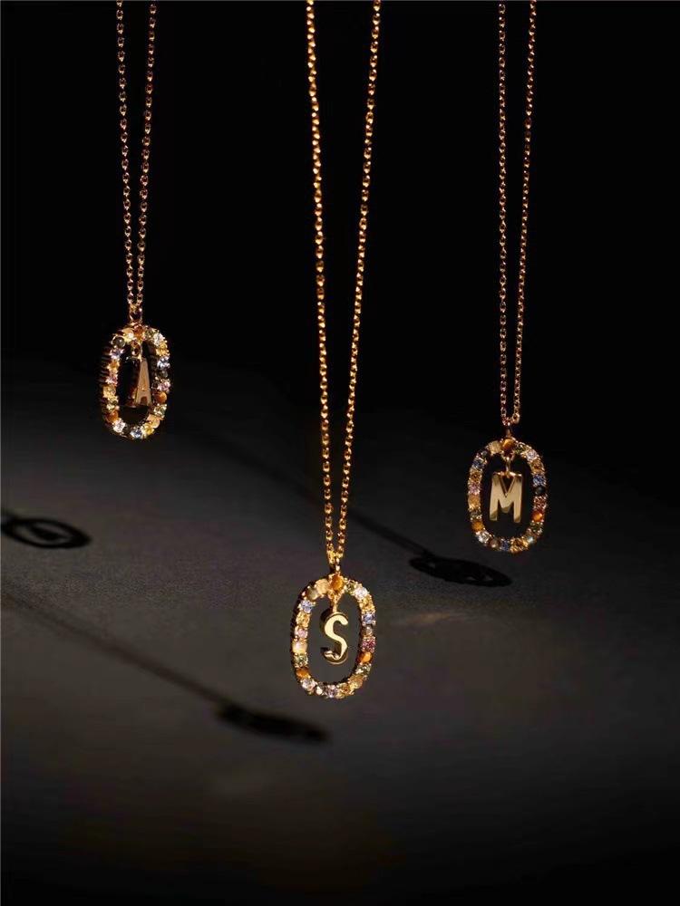 Collar con letras españolas transfronterizas, colgante de circonita de color para mujer, estilo europeo y americano, cadena de clavícula ligera de lujo de alta gama que combina con todo.