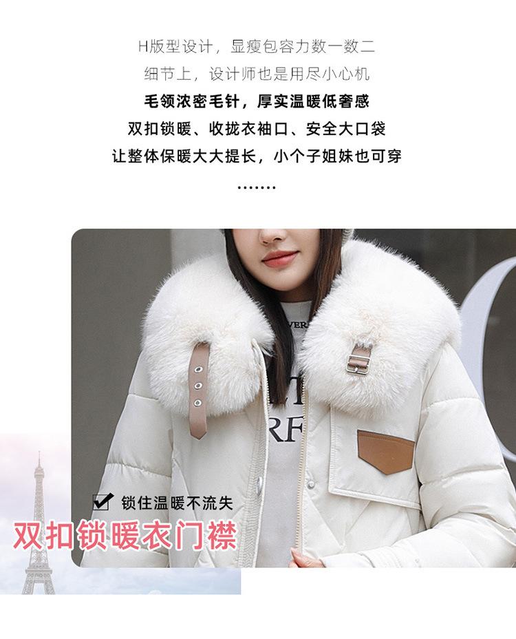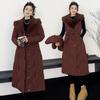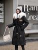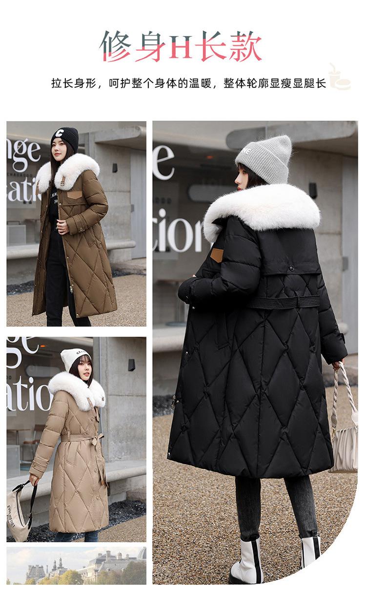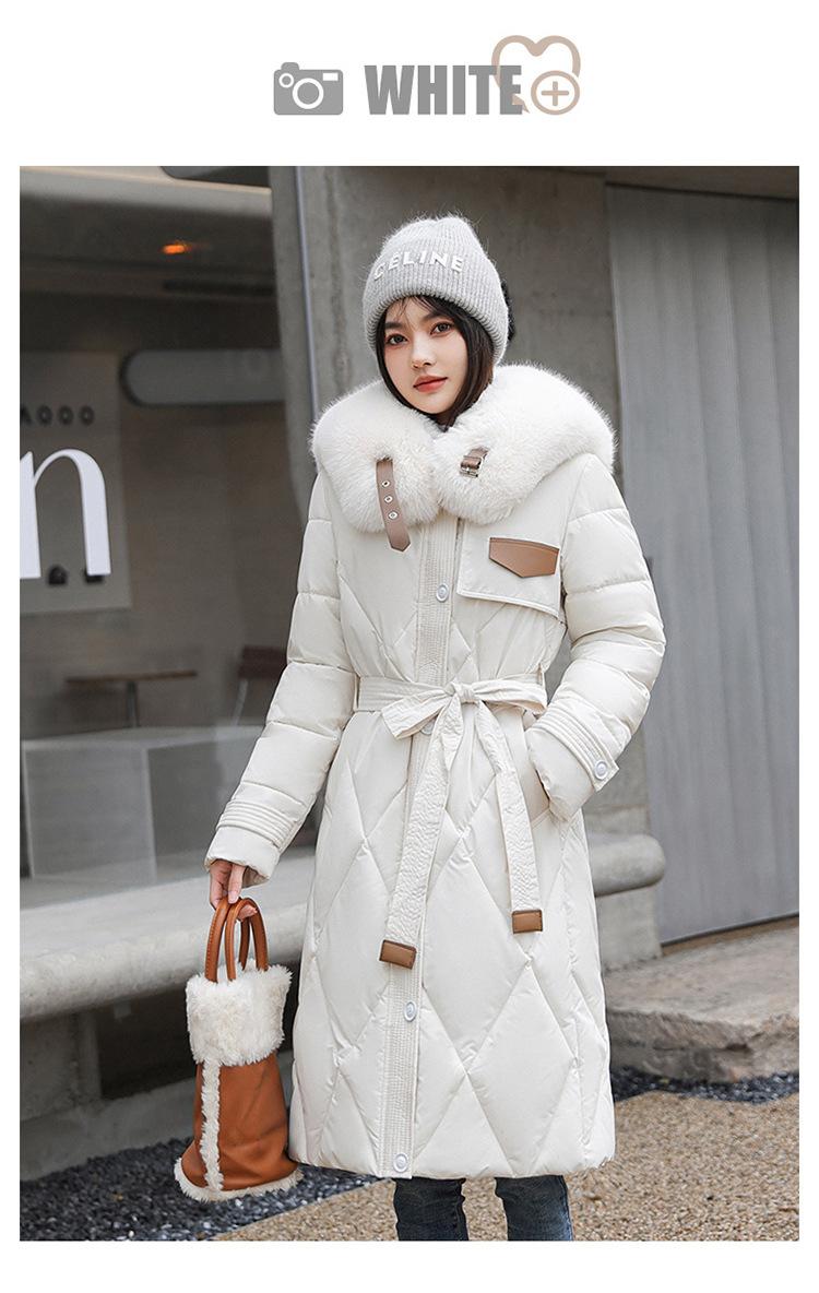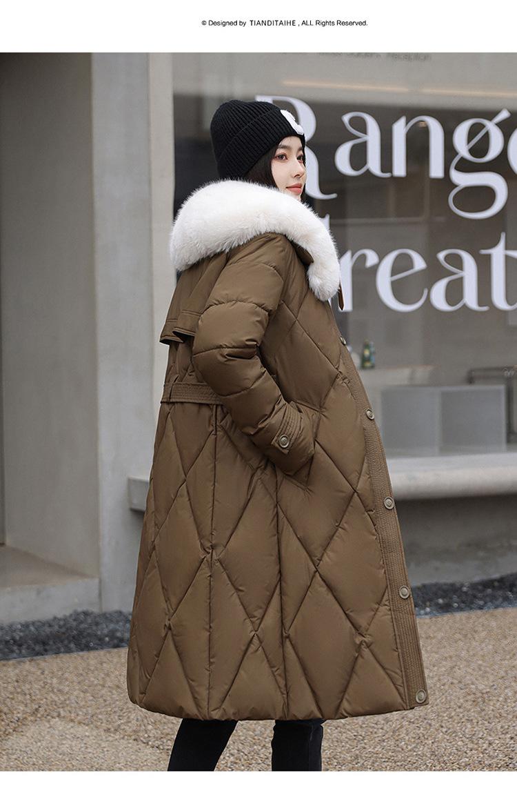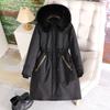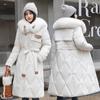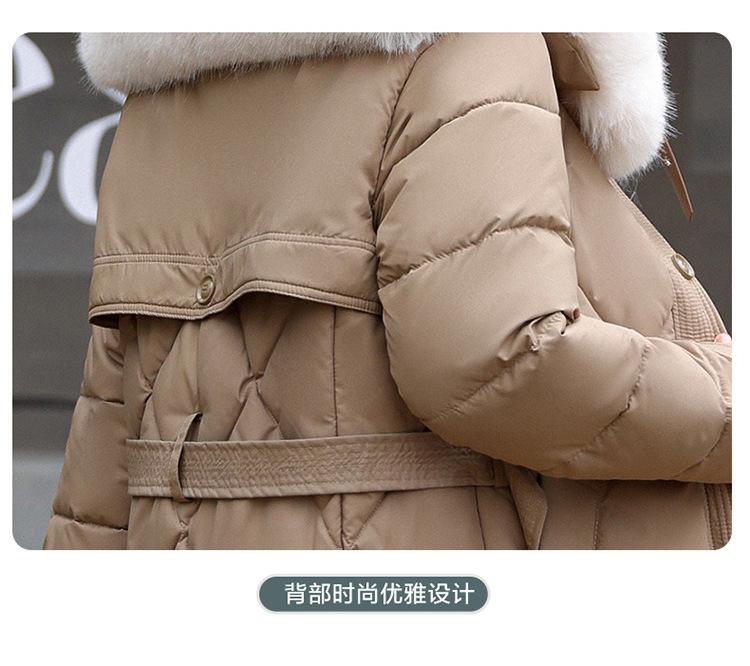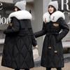 Abrigo acolchado de algodón de plumón nuevo de longitud media sobre la rodilla con cuello de piel grande para mujer, ropa de invierno elegante para afinar la cintura, chaqueta abrigo acolchado de algodón grueso, moda