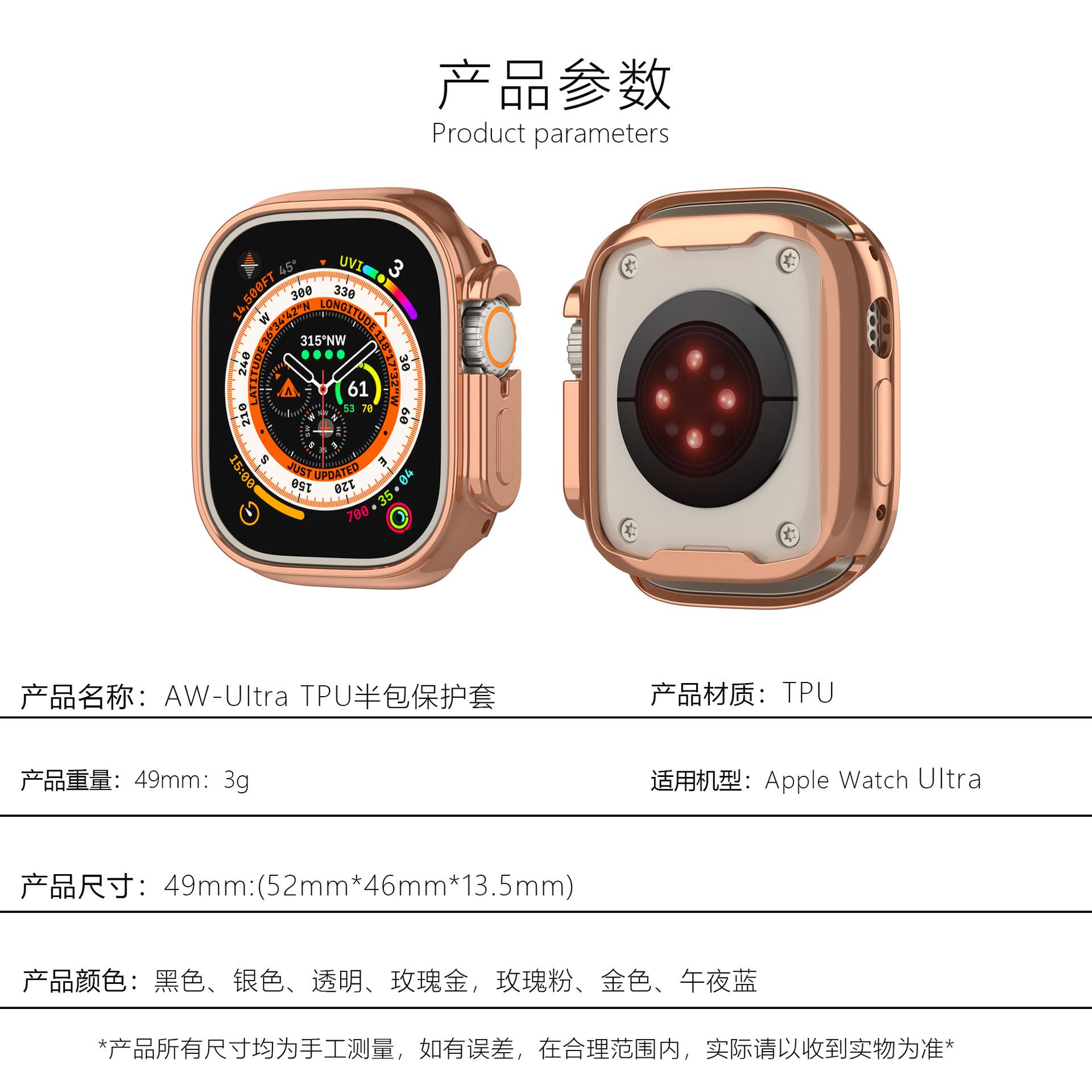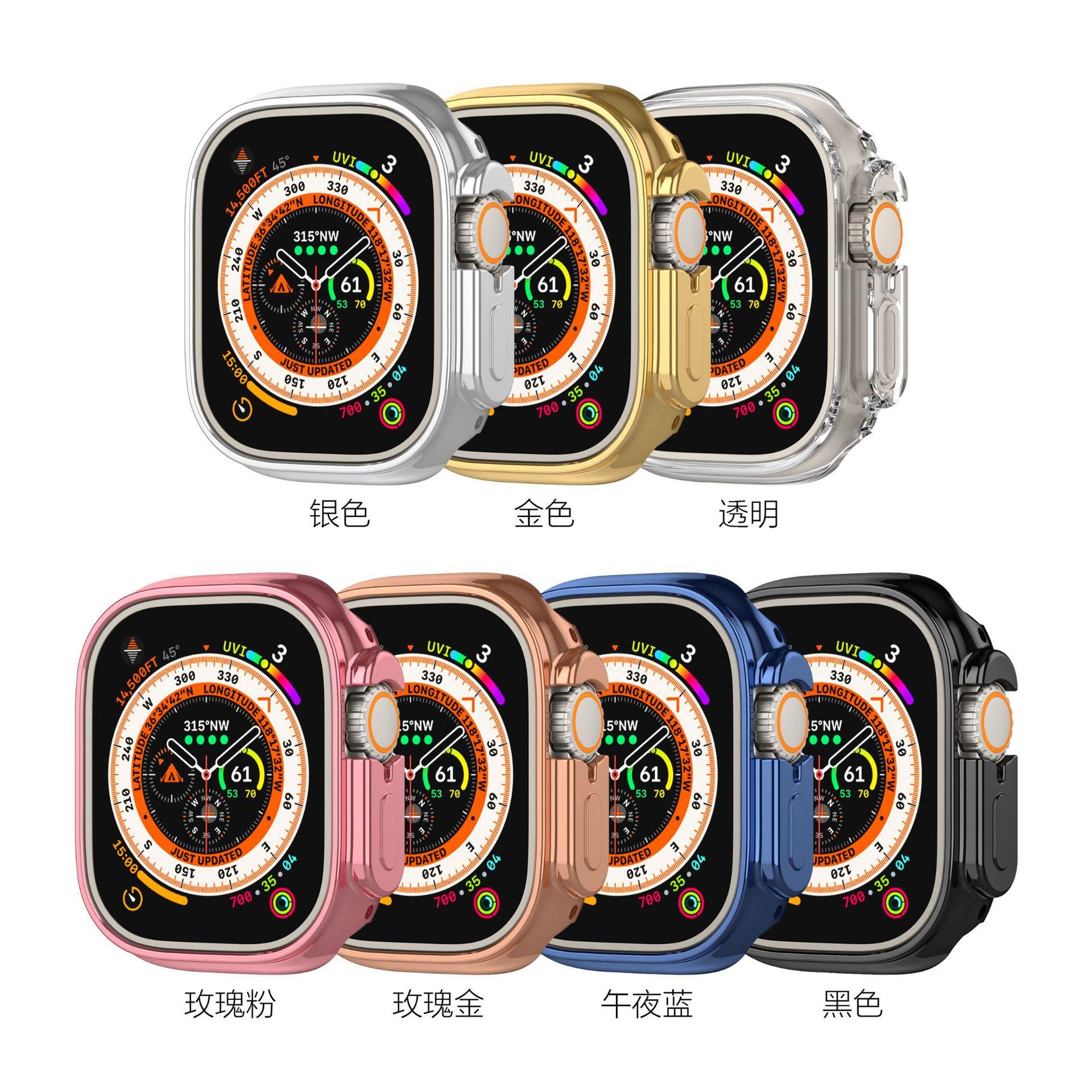 Adecuado para iWatch 1~9 generación Ultra 49 mm, funda protectora de TPU universal de medio paquete, funda protectora galvanizada