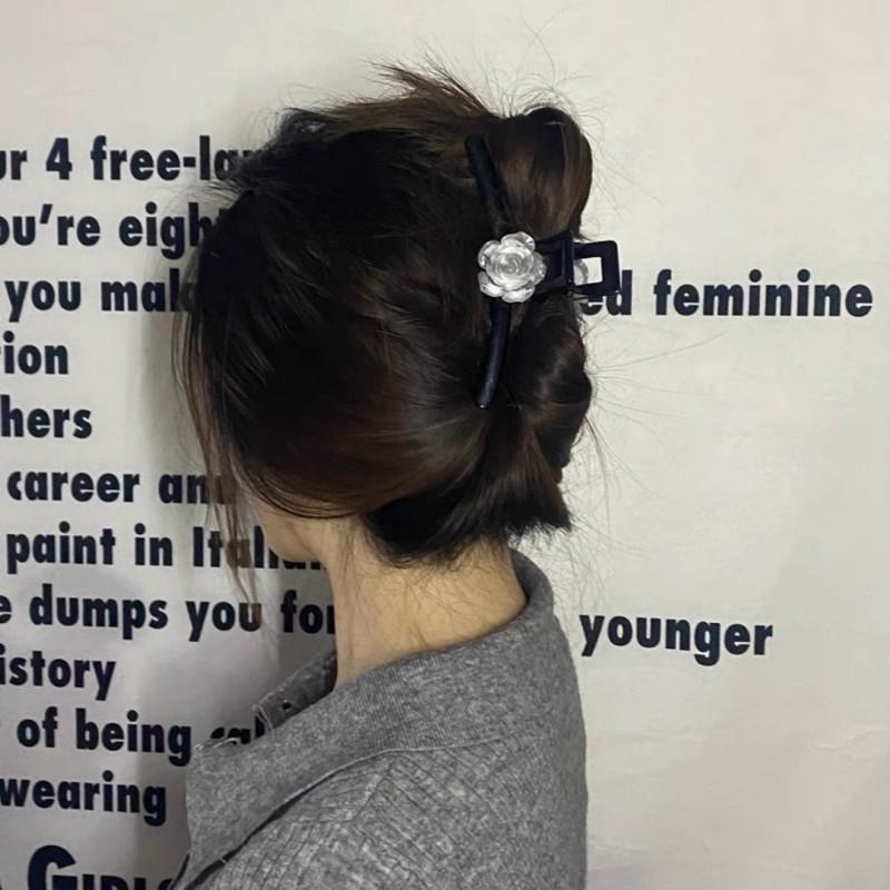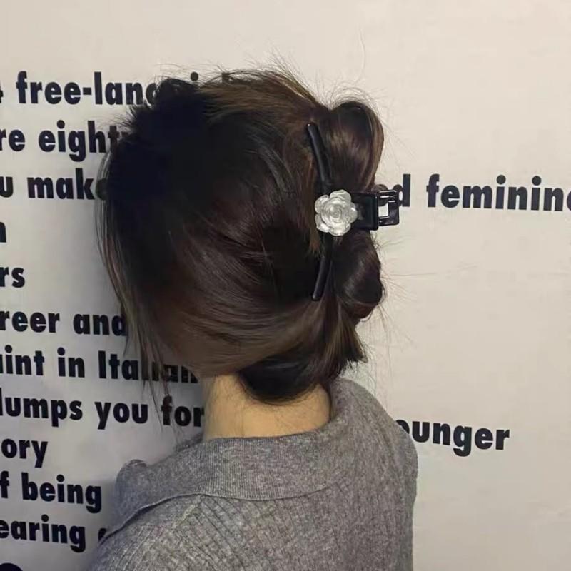 Elegante y elegante horquilla de camelia para mujer, volumen de cabello, clip de tiburón grande, placa de cabeza trasera, pinza de agarre para el cabello, horquilla, tocado