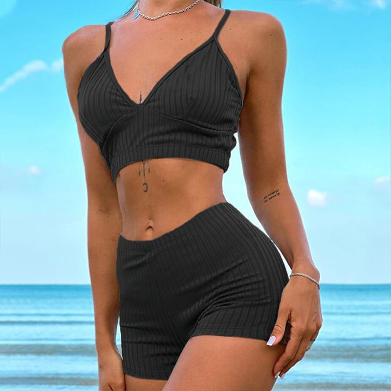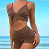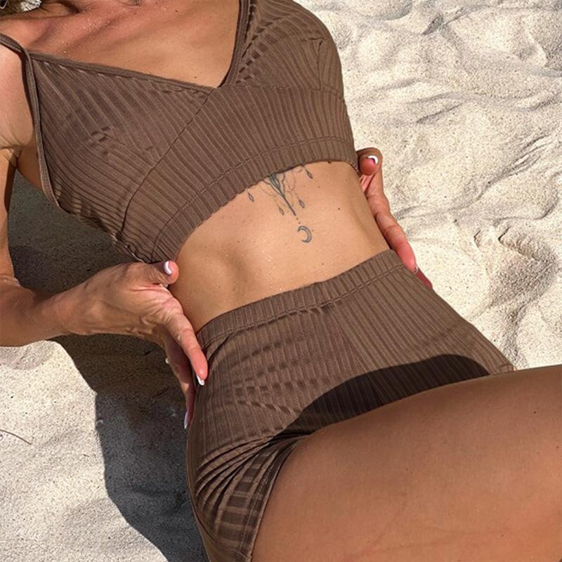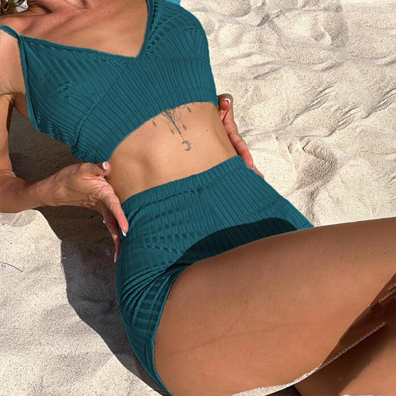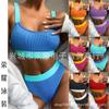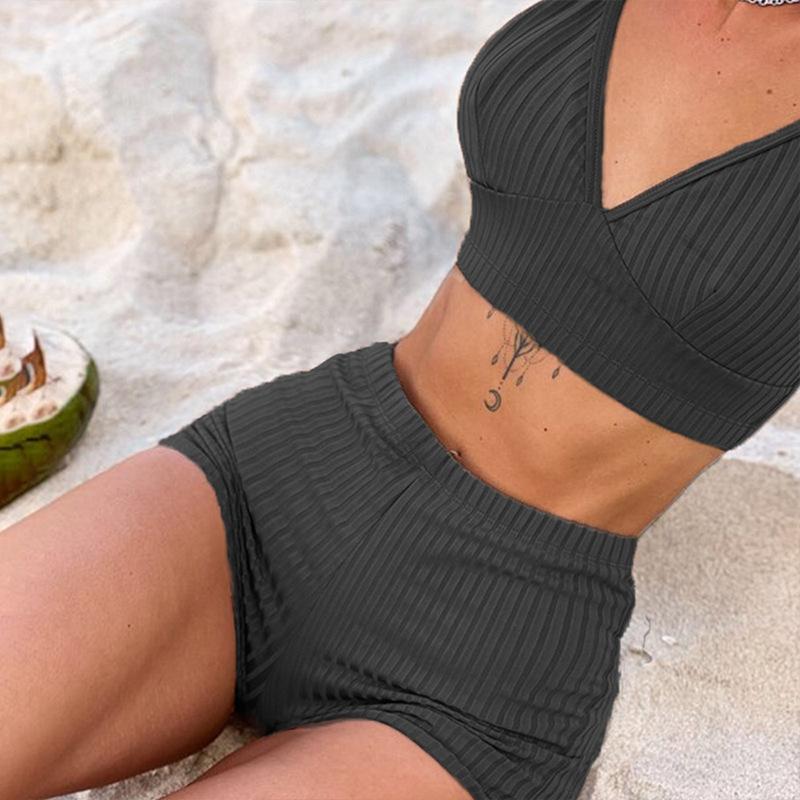Nuevo bikini europeo y americano, traje de baño sexy para mujer, bikini de color sólido, traje de baño dividido de cintura alta, traje de baño transfronterizo para mujer