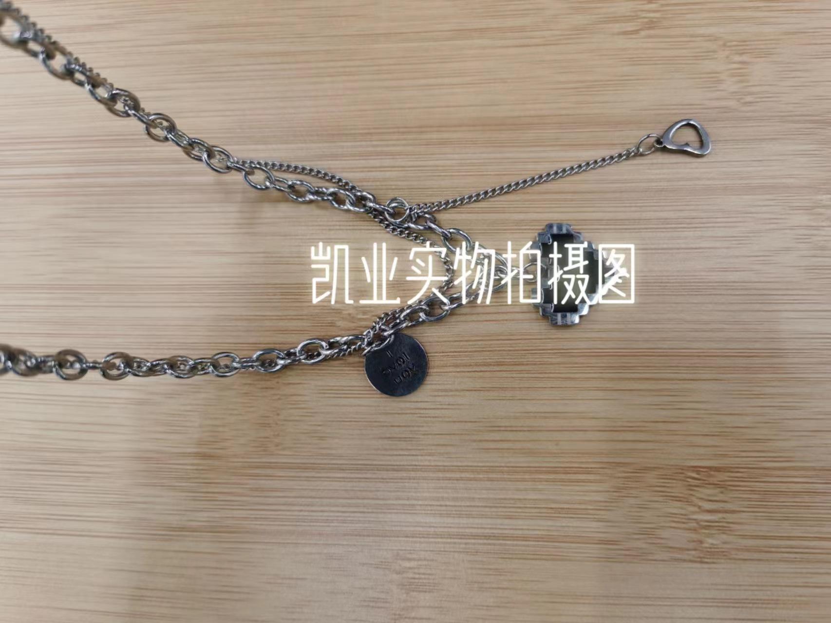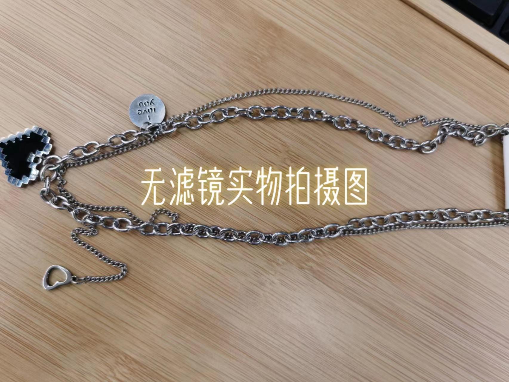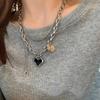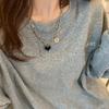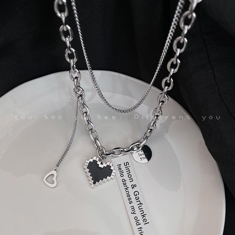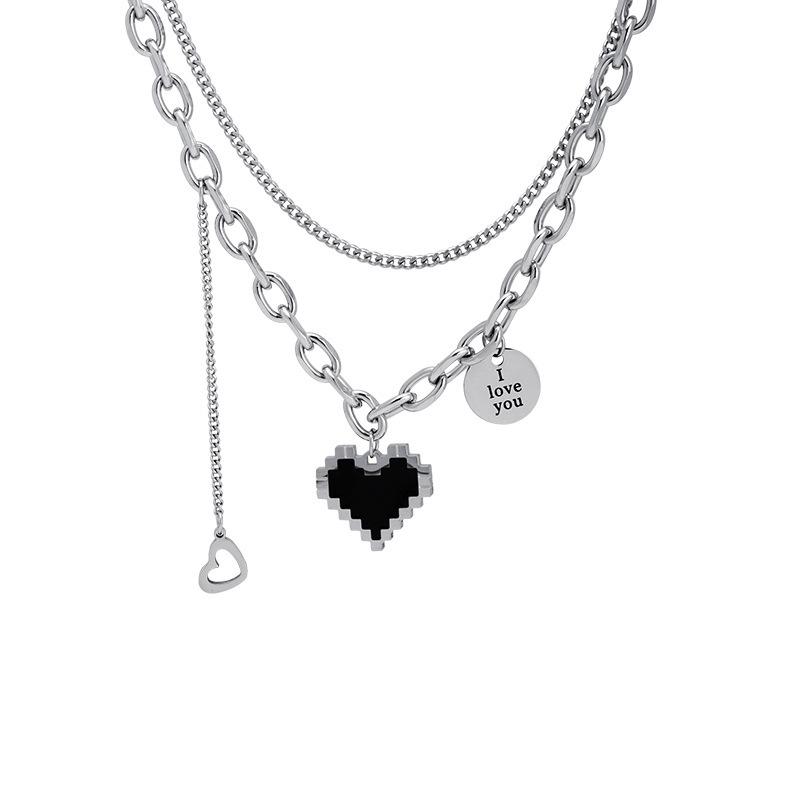 Collar de doble capa con mosaico de acero de titanio y corazón de melocotón para mujer, estilo hip hop, ligero y lujoso.