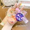 Llavero de Nieve Luminosa con Cabeza de Mickey de Dibujos Animados y Arena Movediza para Mujer, Colgante Exquisito y Lindo para Mochila, Llavero para Bolso de Pareja
