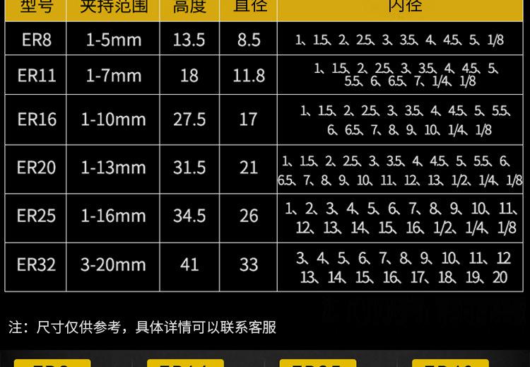 ER08-(3-5mm) Precision 0.008 ER08-(3-5mm) Precision 0.008 Please note the size *, ER11-(3-7mm) Accuracy 0.008 ...