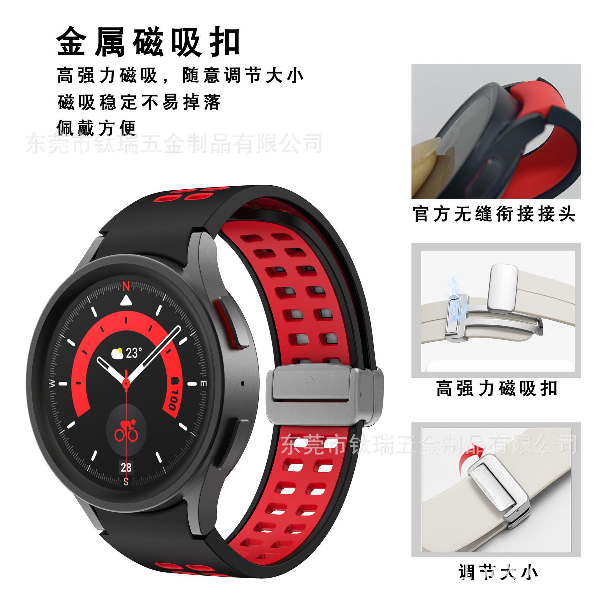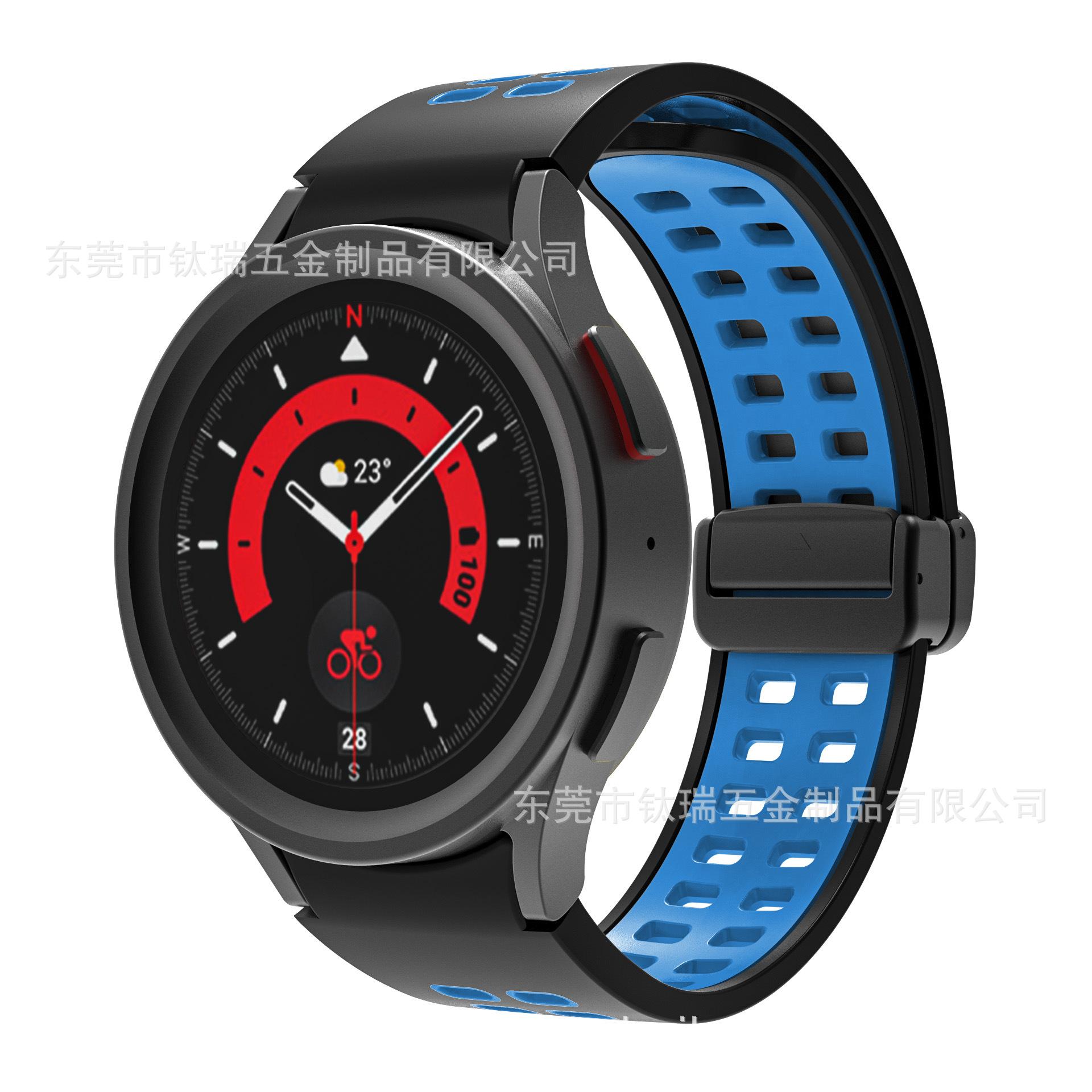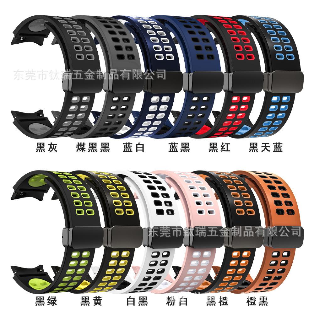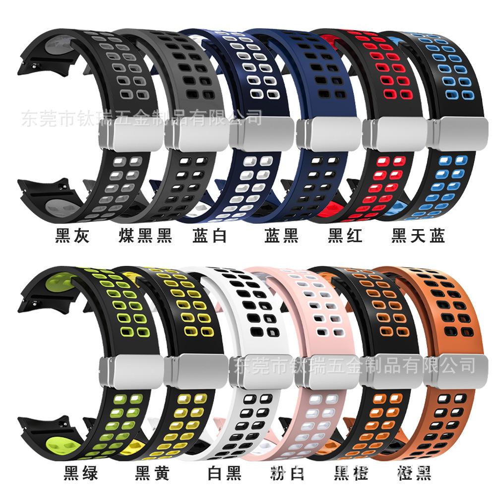 [Nombre del producto] Adecuado para Samsung Galaxy watch5 correa de silicona bicolor watch5pro correa con hebilla plegable magnética de orificio cuadrado