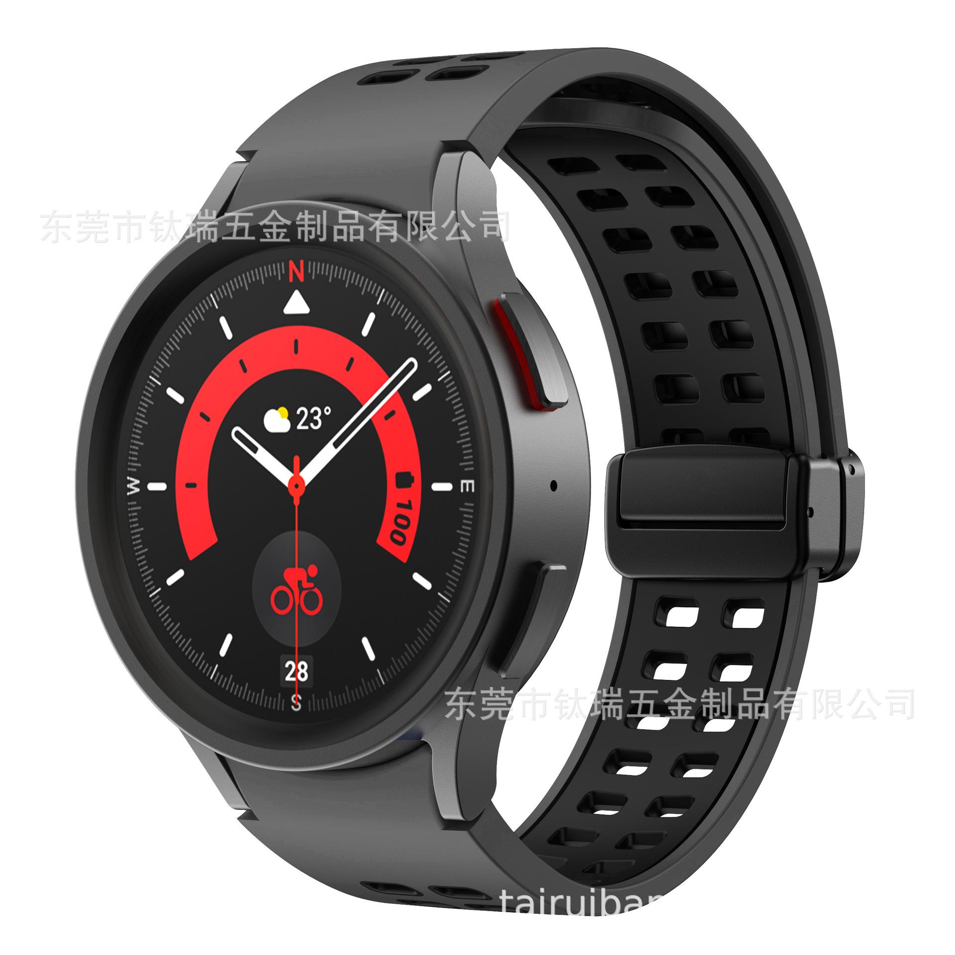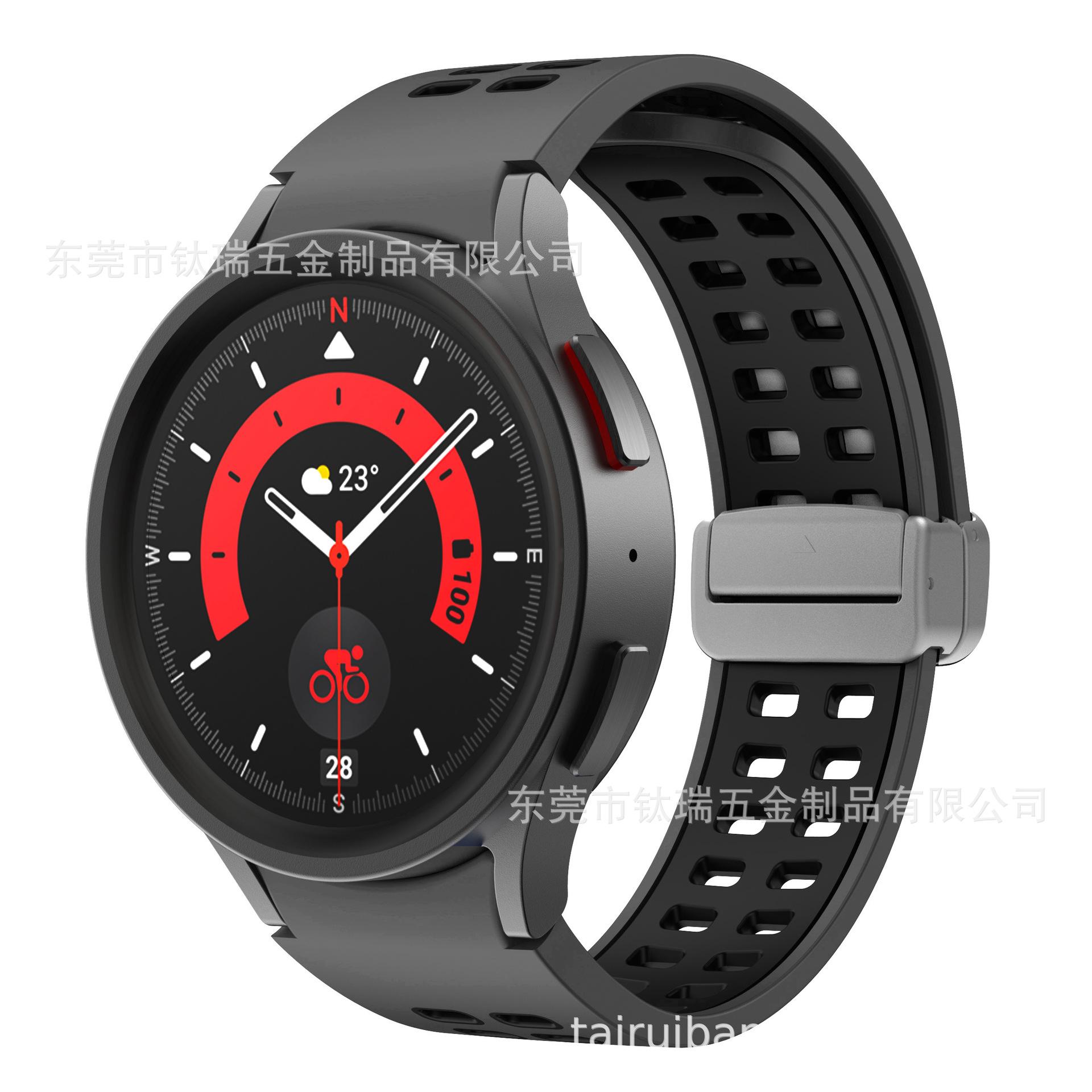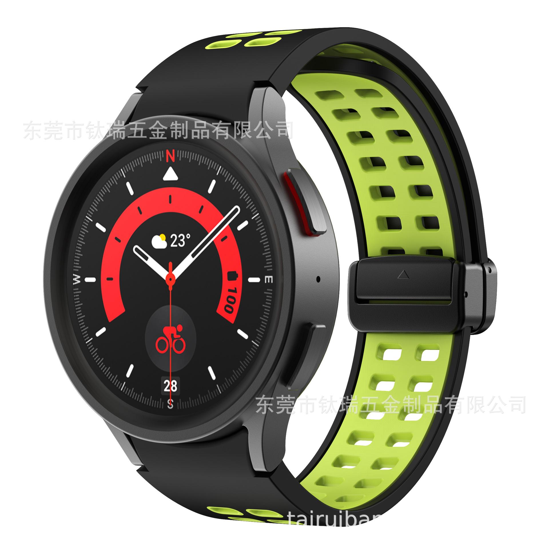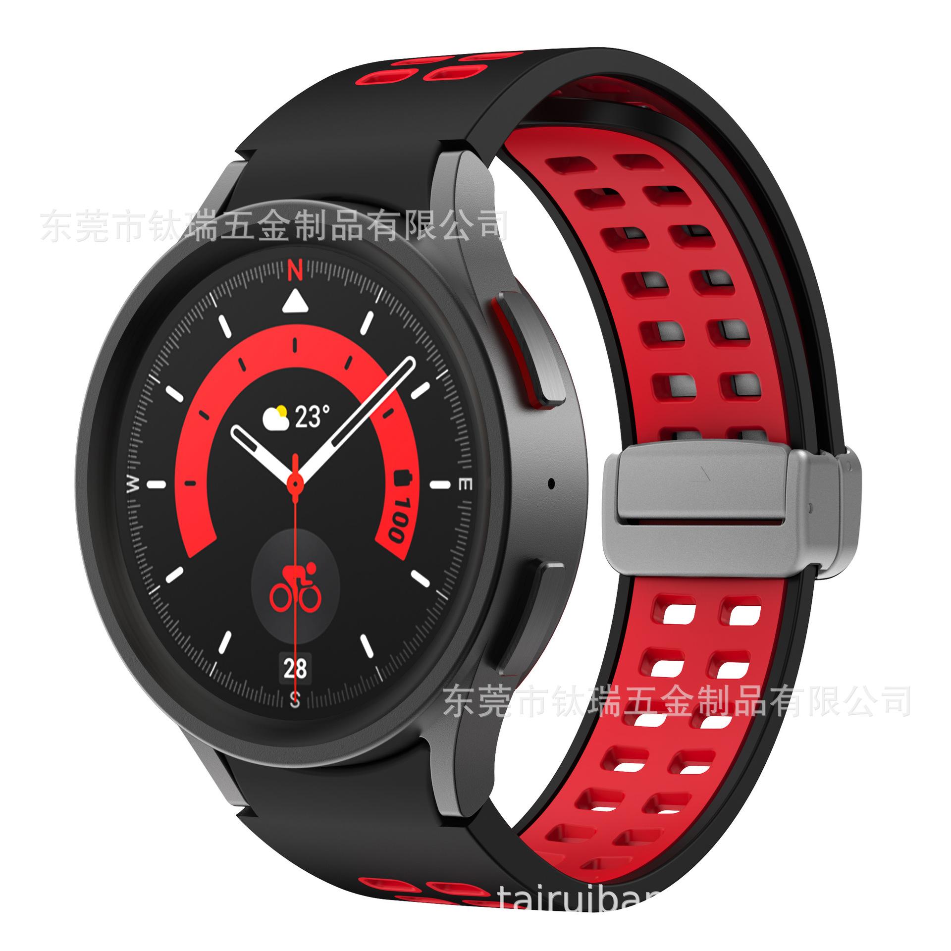 [Nombre del producto] Adecuado para Samsung Galaxy watch5 correa de silicona bicolor watch5pro correa con hebilla plegable magnética de orificio cuadrado
