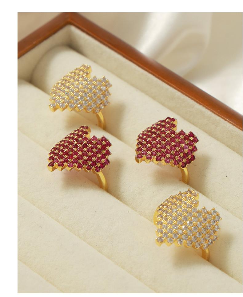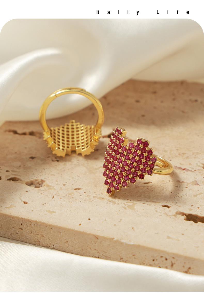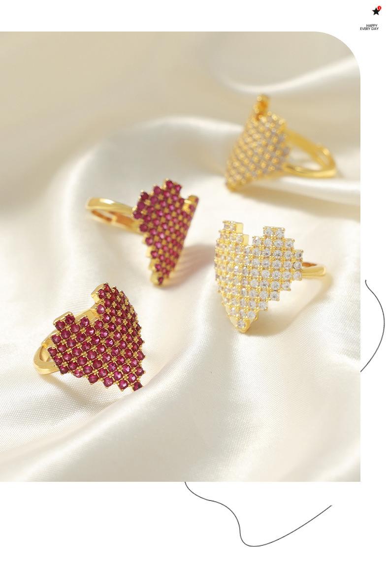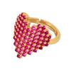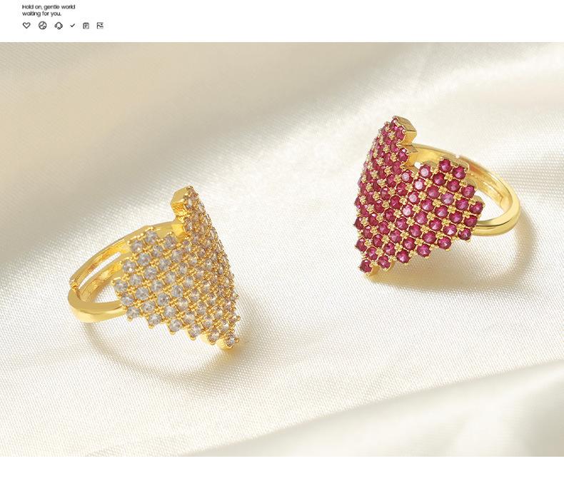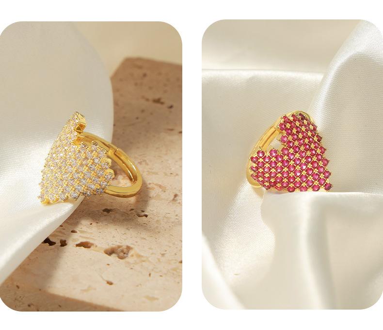 Moda Transfronteriza Estilo Europeo y Americano Lujo Ligero Anillo de Material de Cobre Juego en Forma de Corazón Zircón de Color Anillo de Apertura Ajustable Joyería para Mujer