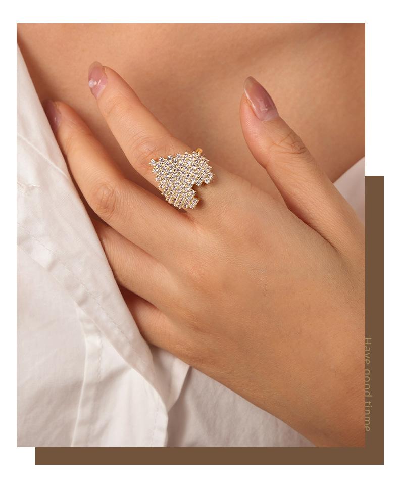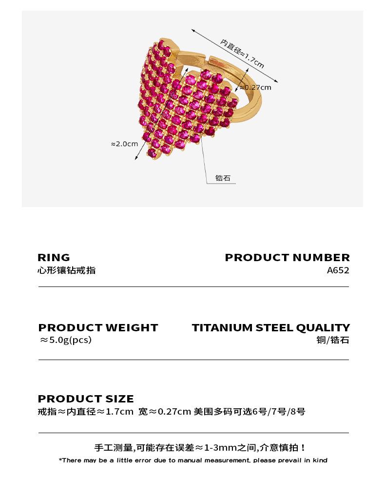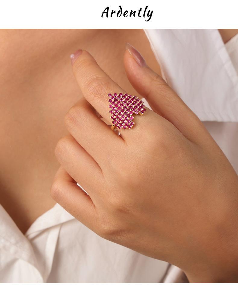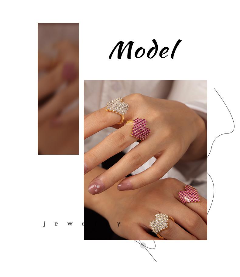 Moda Transfronteriza Estilo Europeo y Americano Lujo Ligero Anillo de Material de Cobre Juego en Forma de Corazón Zircón de Color Anillo de Apertura Ajustable Joyería para Mujer