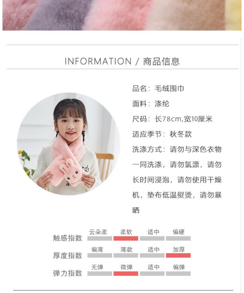 Bufanda de bebé de otoño e invierno coreana, bufanda de conejito para niños y niñas, cálida y gruesa de felpa.