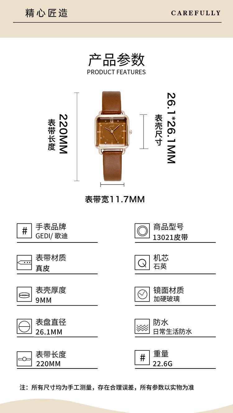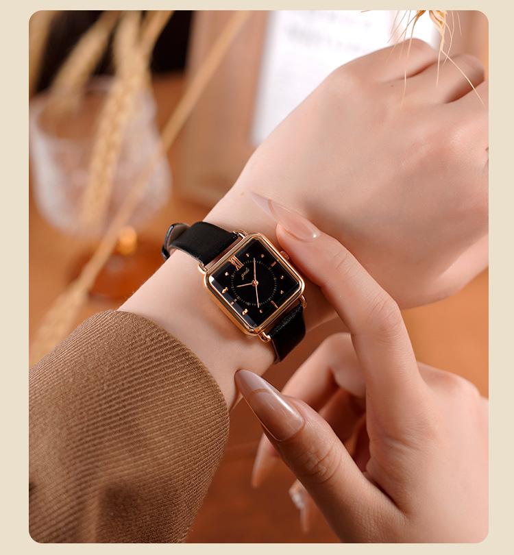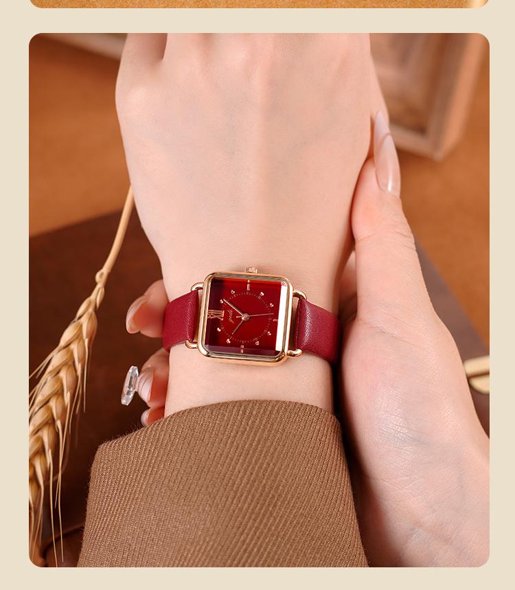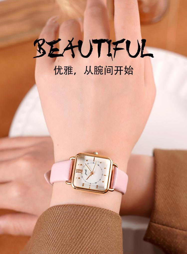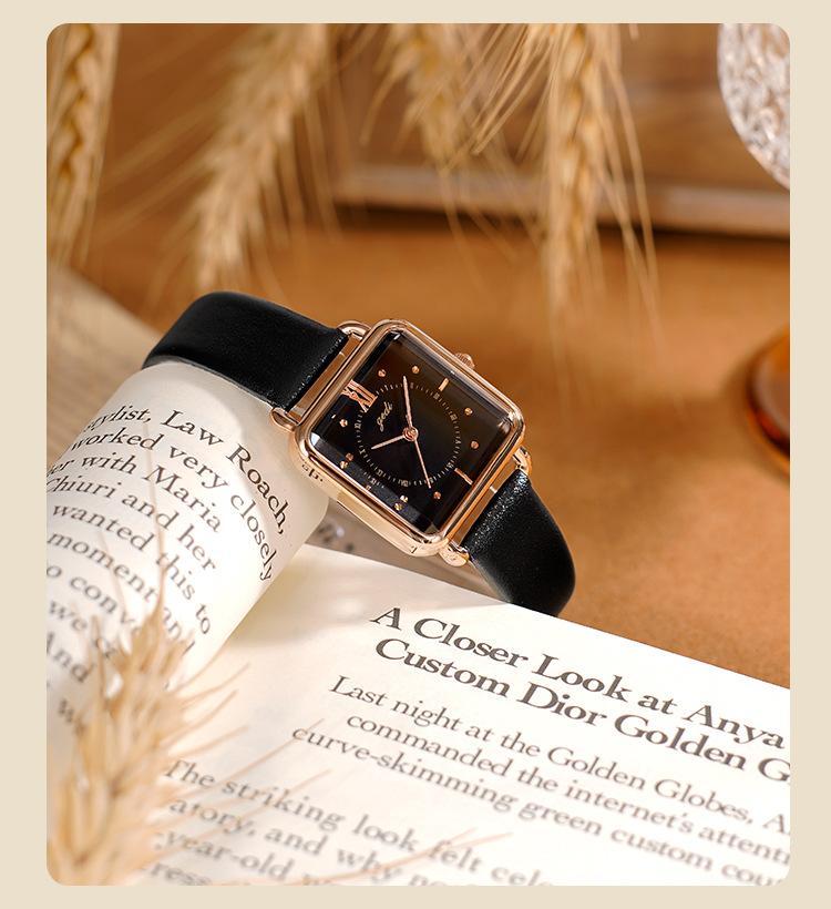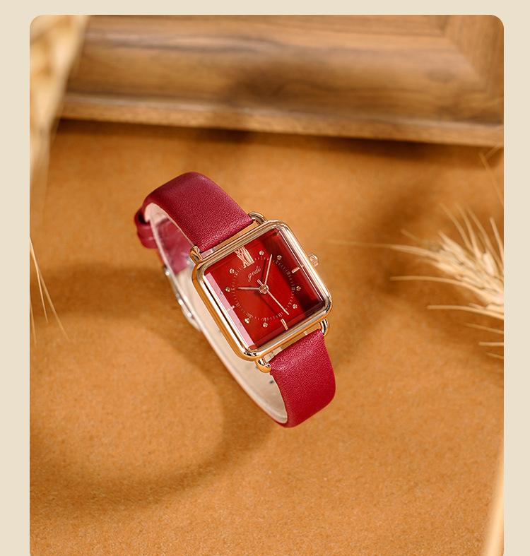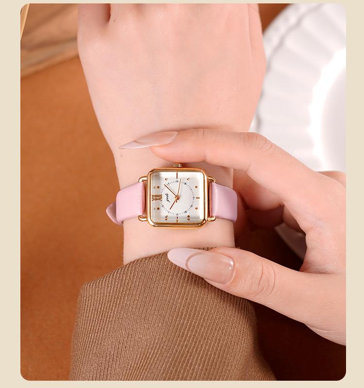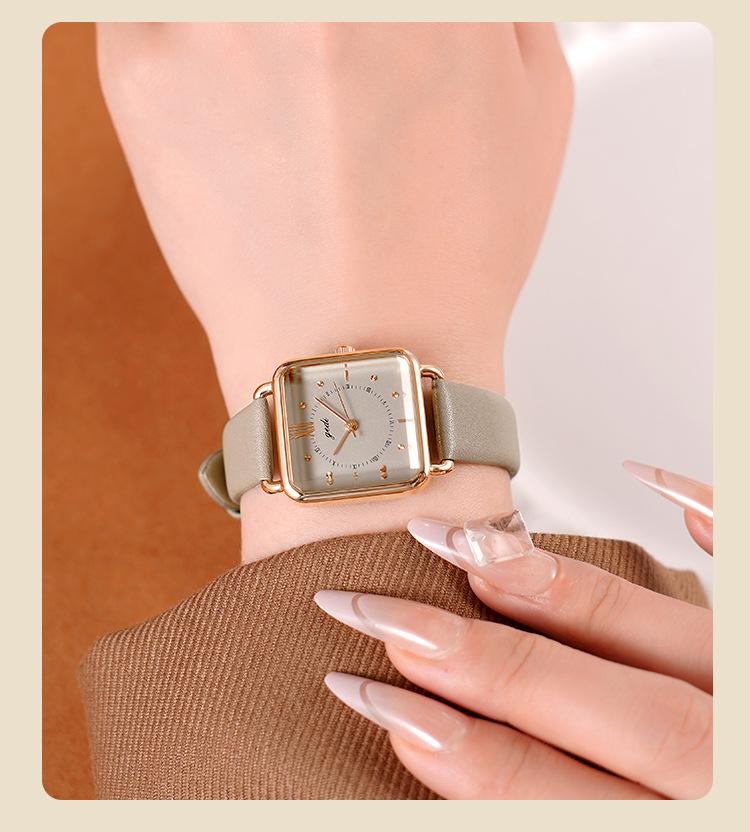 Reloj de cuarzo resistente al agua con correa para mujer, estilo retro Goldie, de alta gama, cuadrado pequeño, con esfera grande y sentido de la moda.