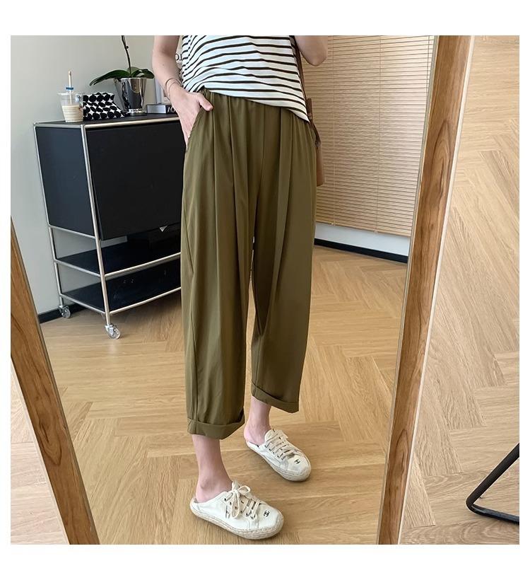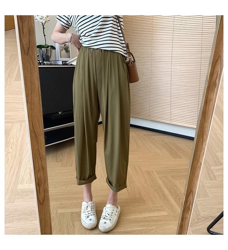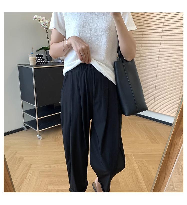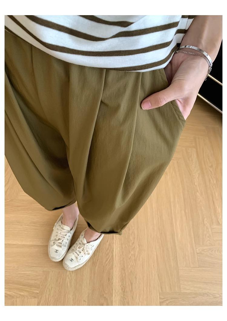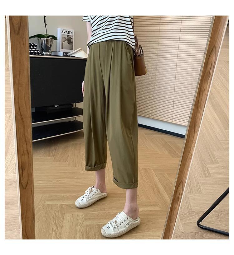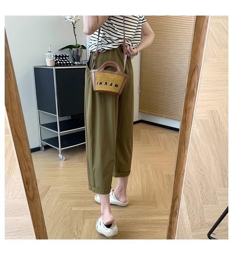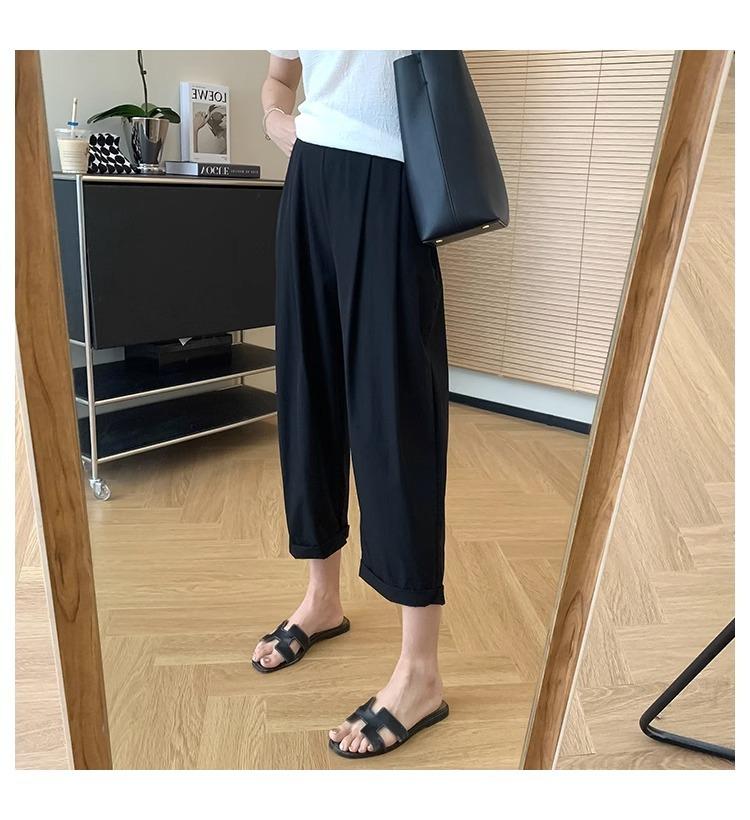Pantalones harén rectos de cintura alta para mujer, verano 2024, pantalones casuales de pierna ancha recortados con forma de pera y holgados y finos, nuevos
