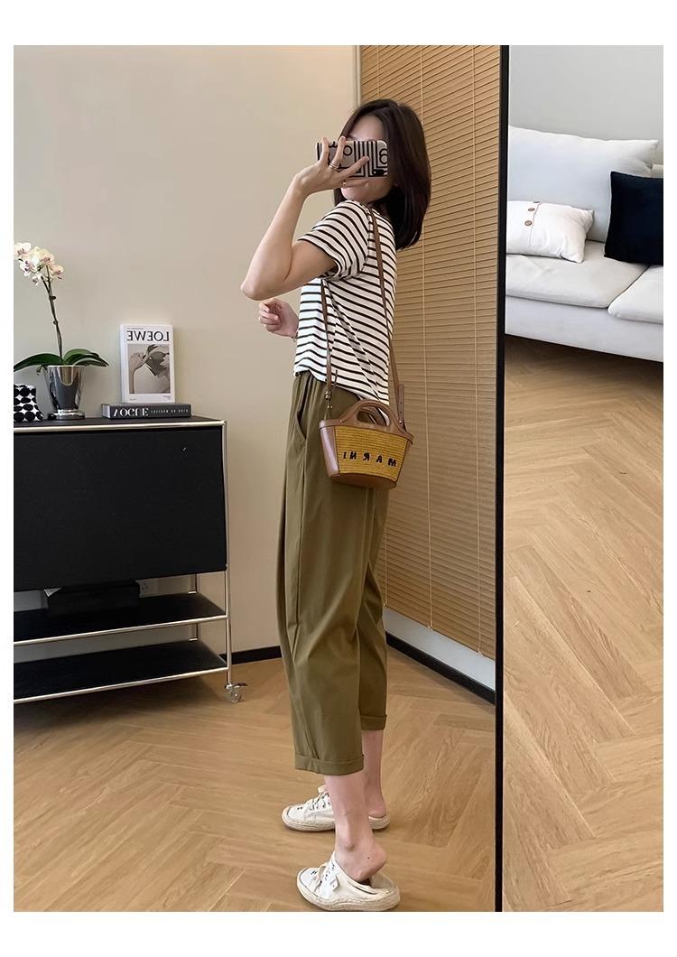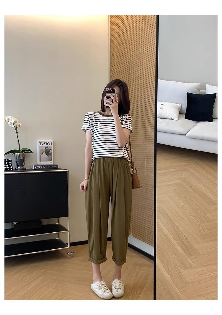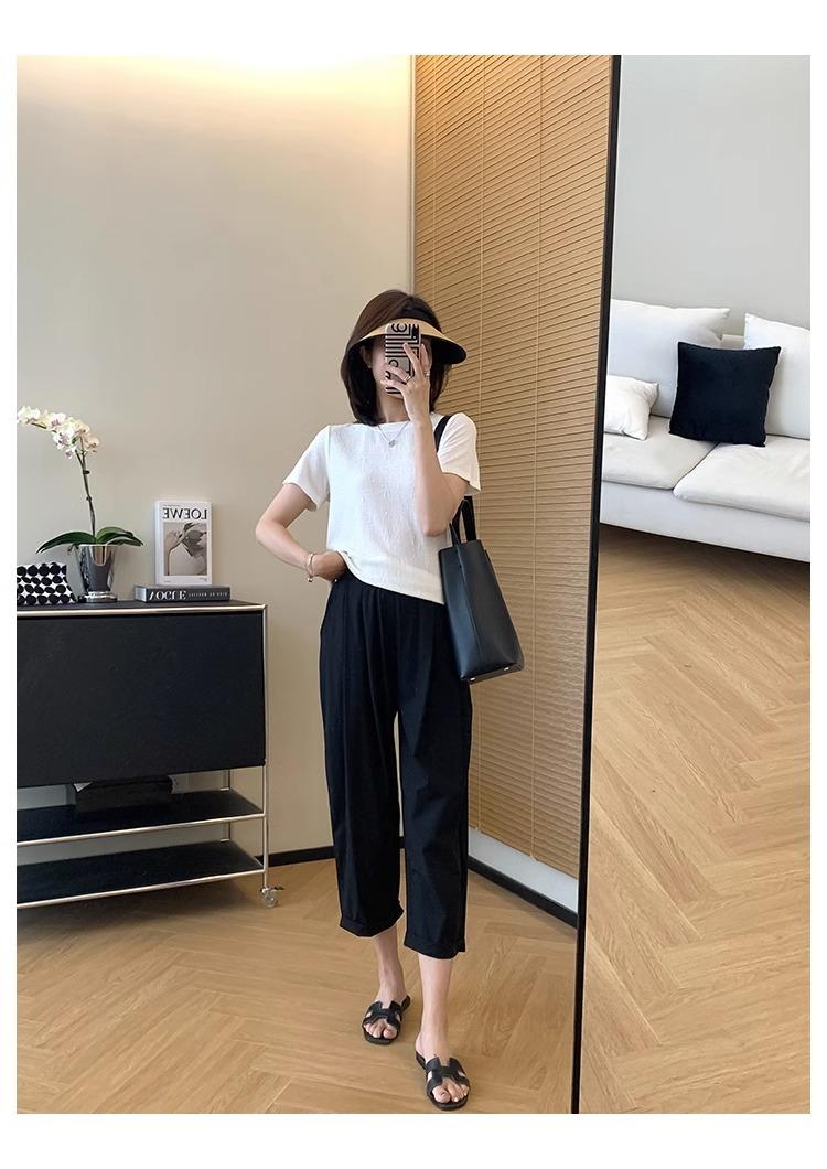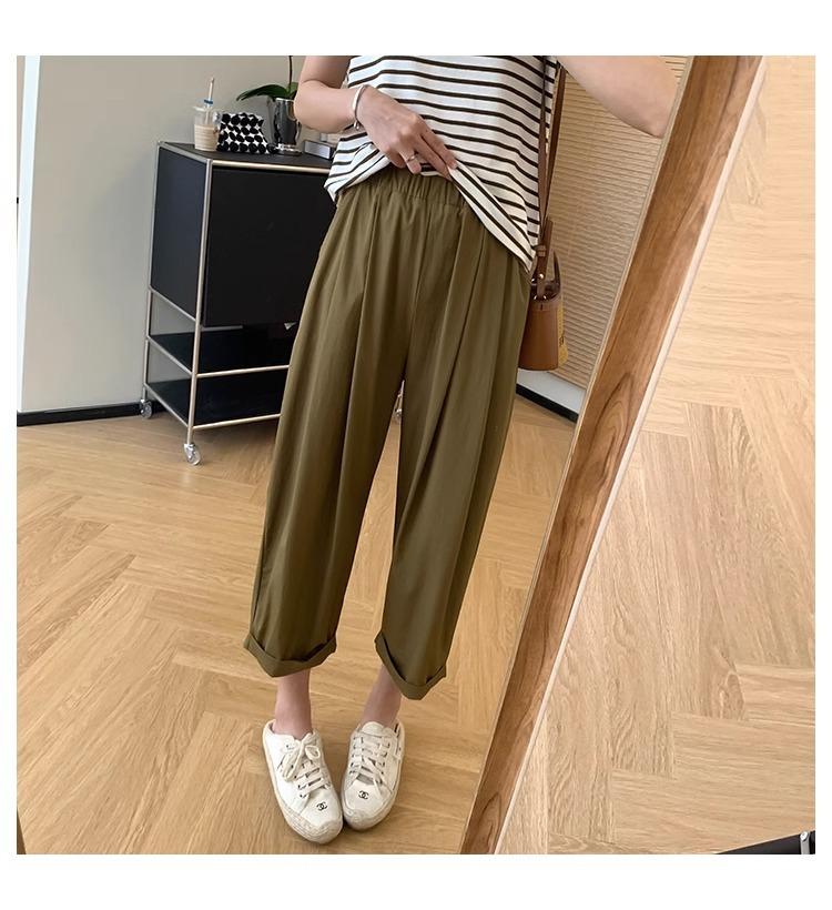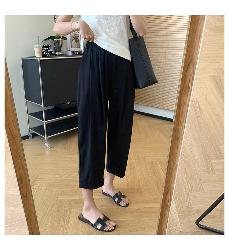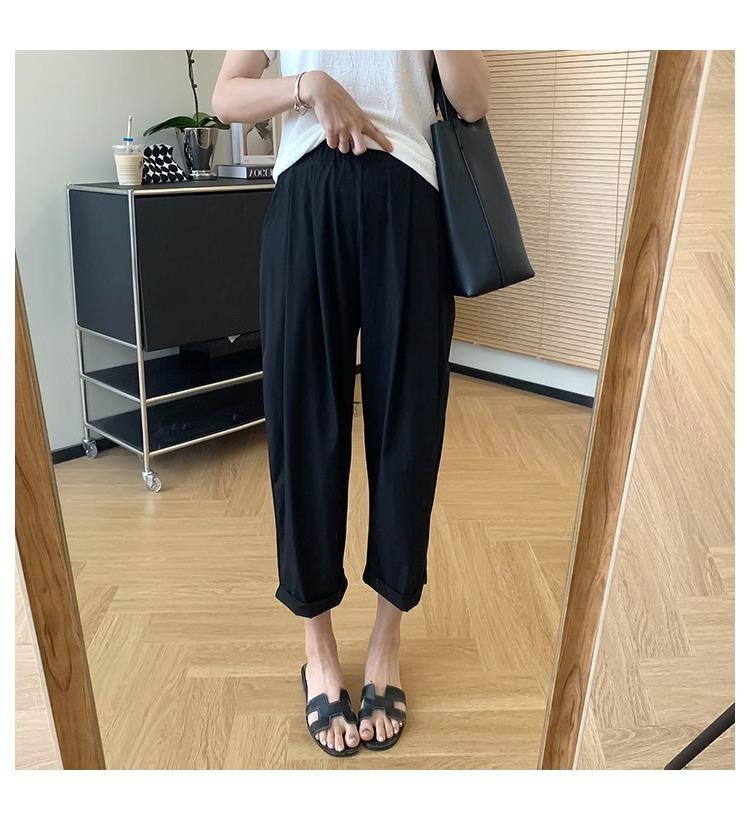 Pantalones harén rectos de cintura alta para mujer, verano 2024, pantalones casuales de pierna ancha recortados con forma de pera y holgados y finos, nuevos