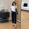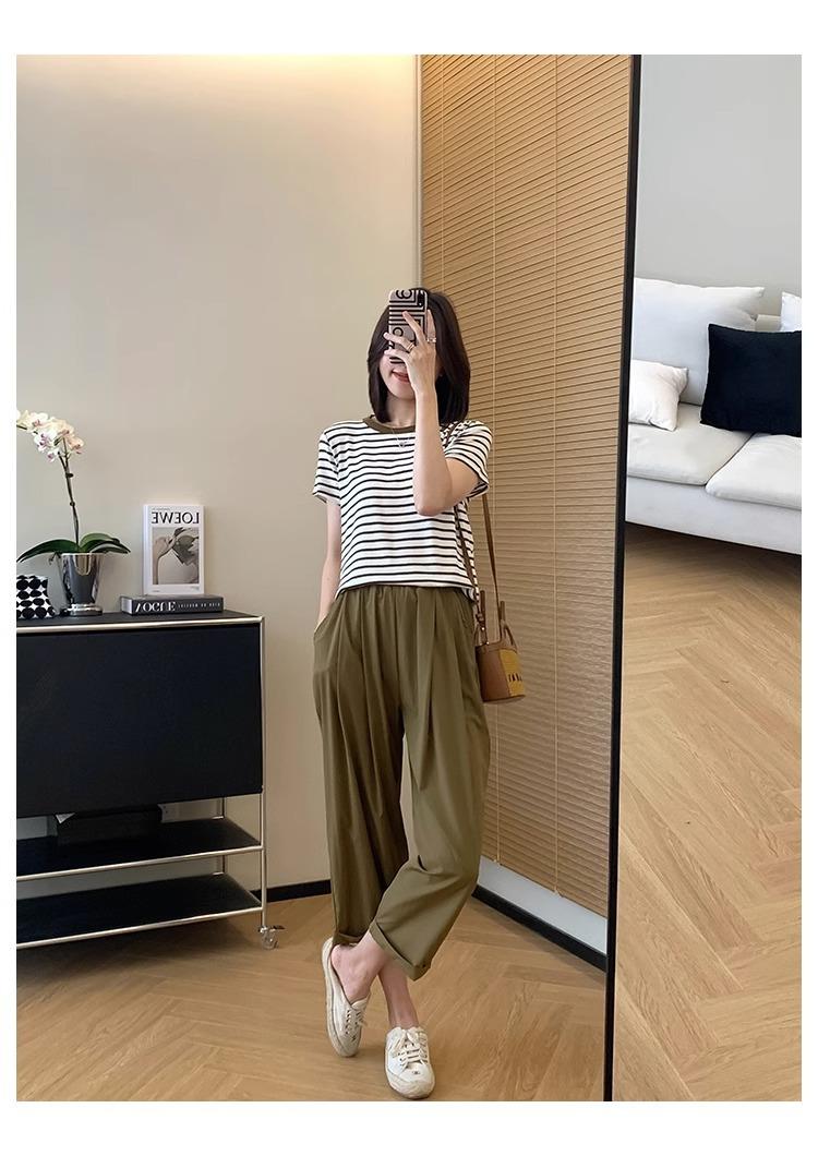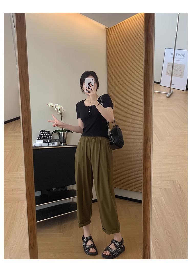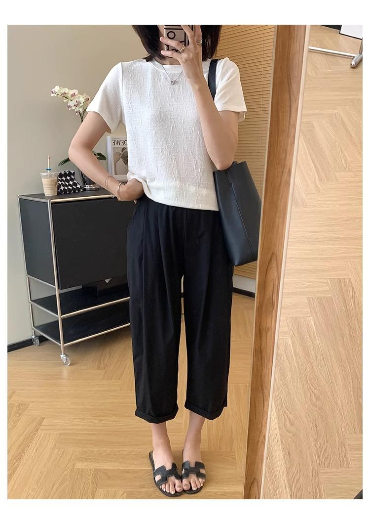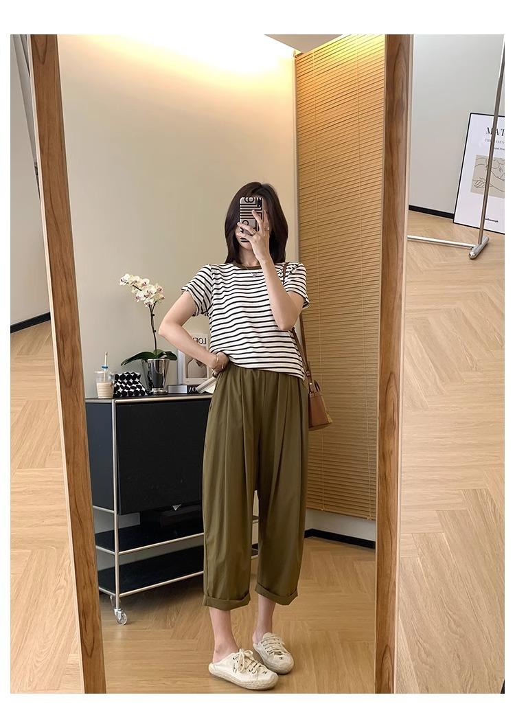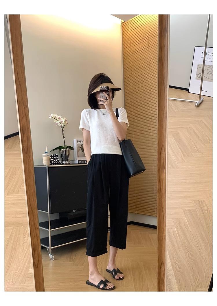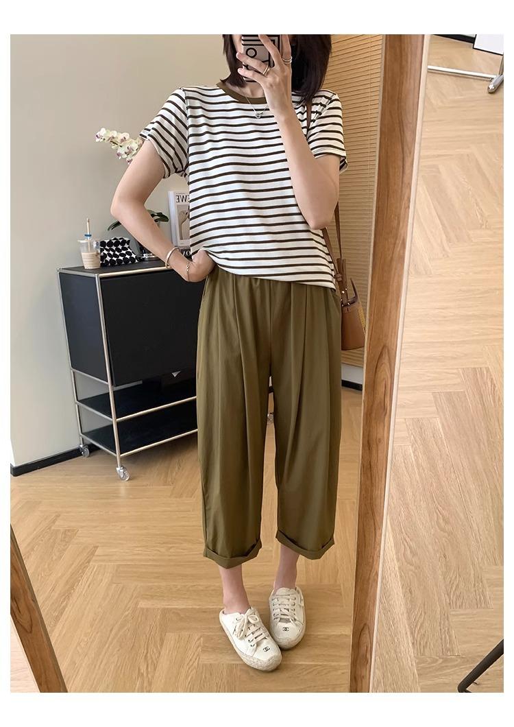 Pantalones harén rectos de cintura alta para mujer, verano 2024, pantalones casuales de pierna ancha recortados con forma de pera y holgados y finos, nuevos