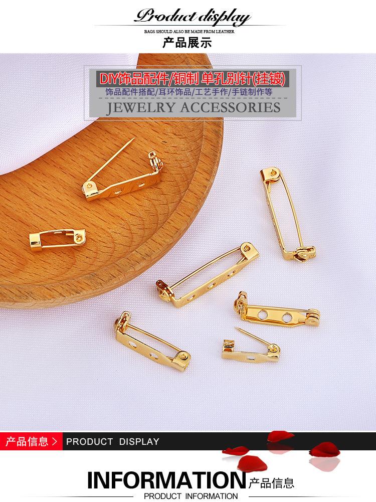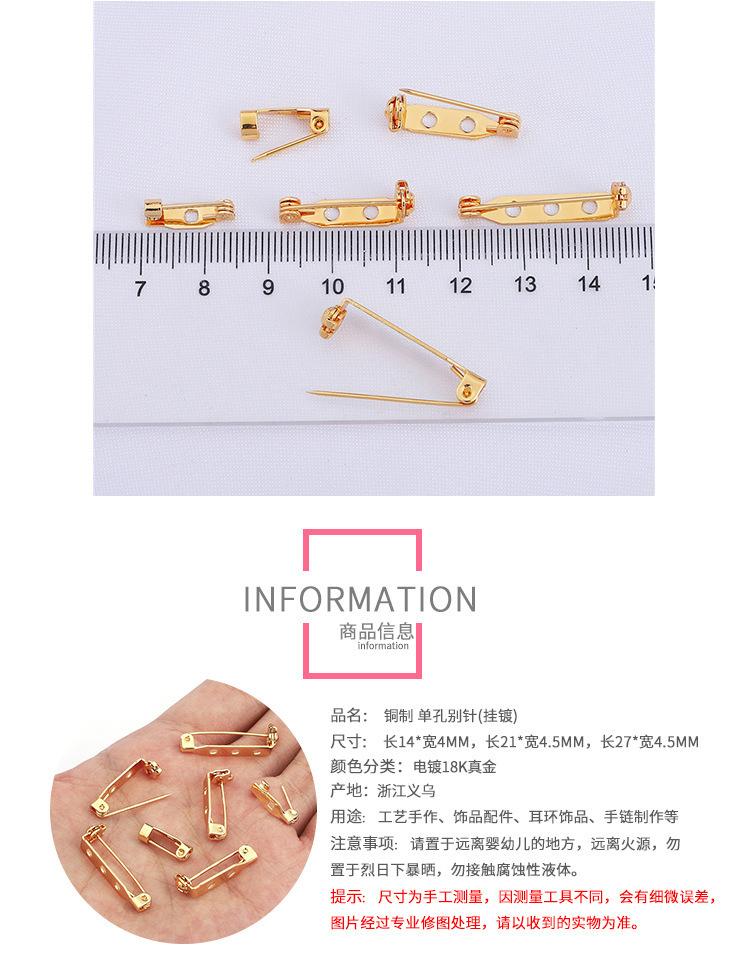 Venta Caliente Transfronteriza Broche de Pin de un Agujero de Oro Real Chapado en Cobre de 18K Hecho a Mano Material DIY Accesorios Insignia Broche Hebilla