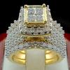 Zhen Rong desea Nuevo Anillo de Diamante Cuadrado Princesa Chapado en Oro de 18k Europeo y Americano Micro Engastado Zircón Super Brillante Anillo de Compromiso para Mujer