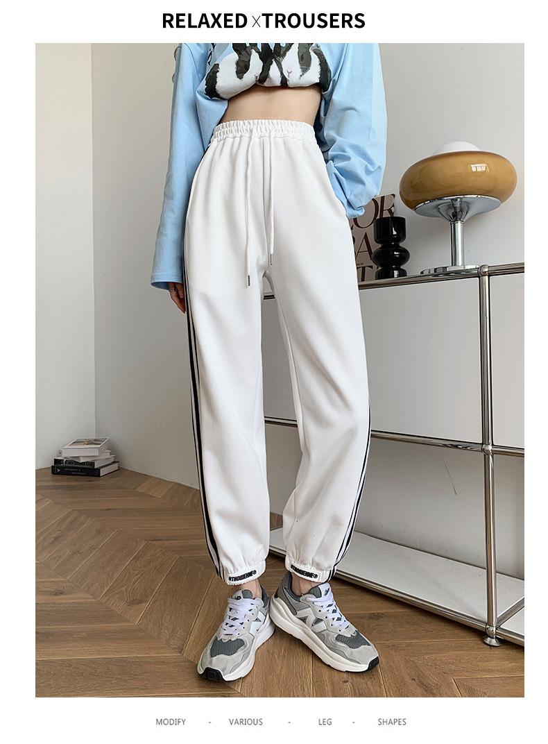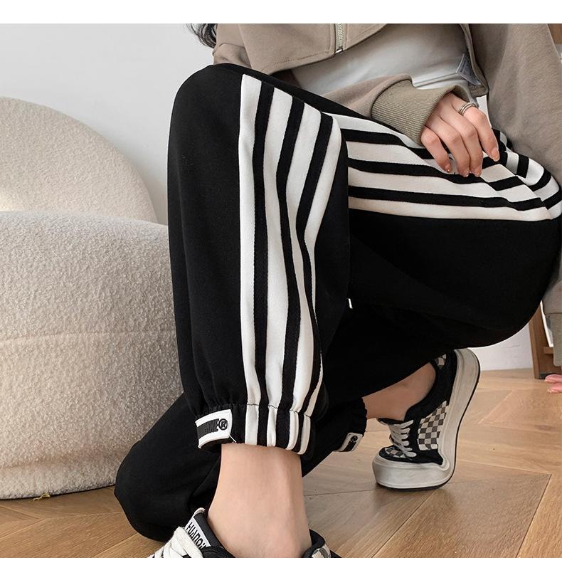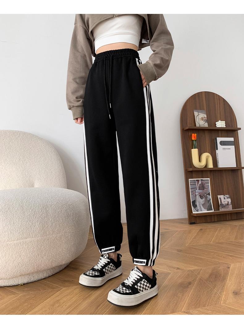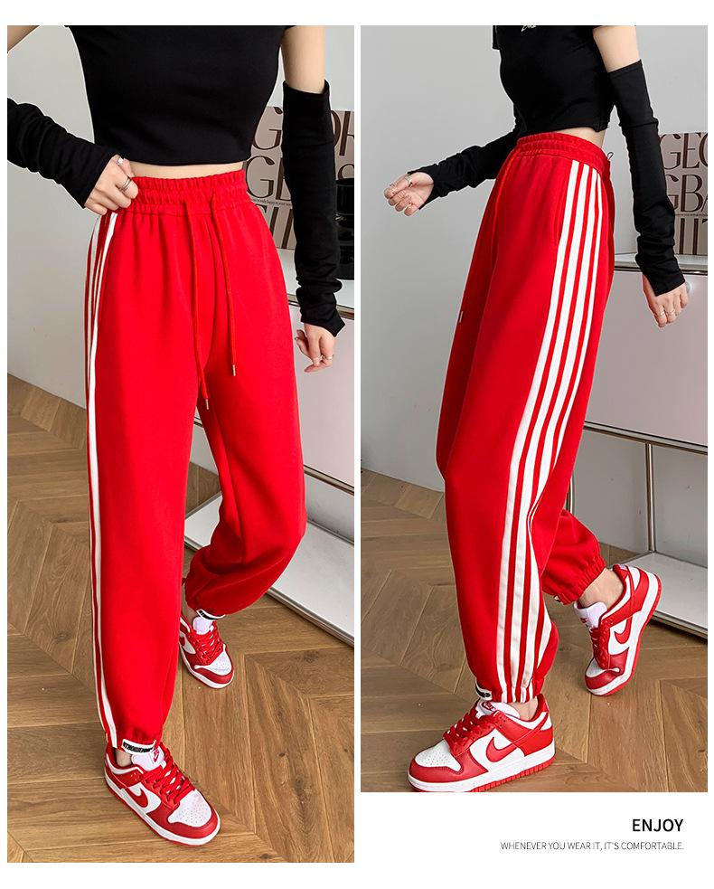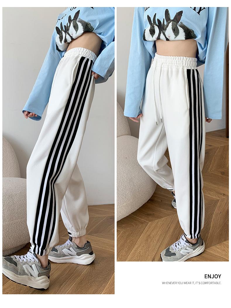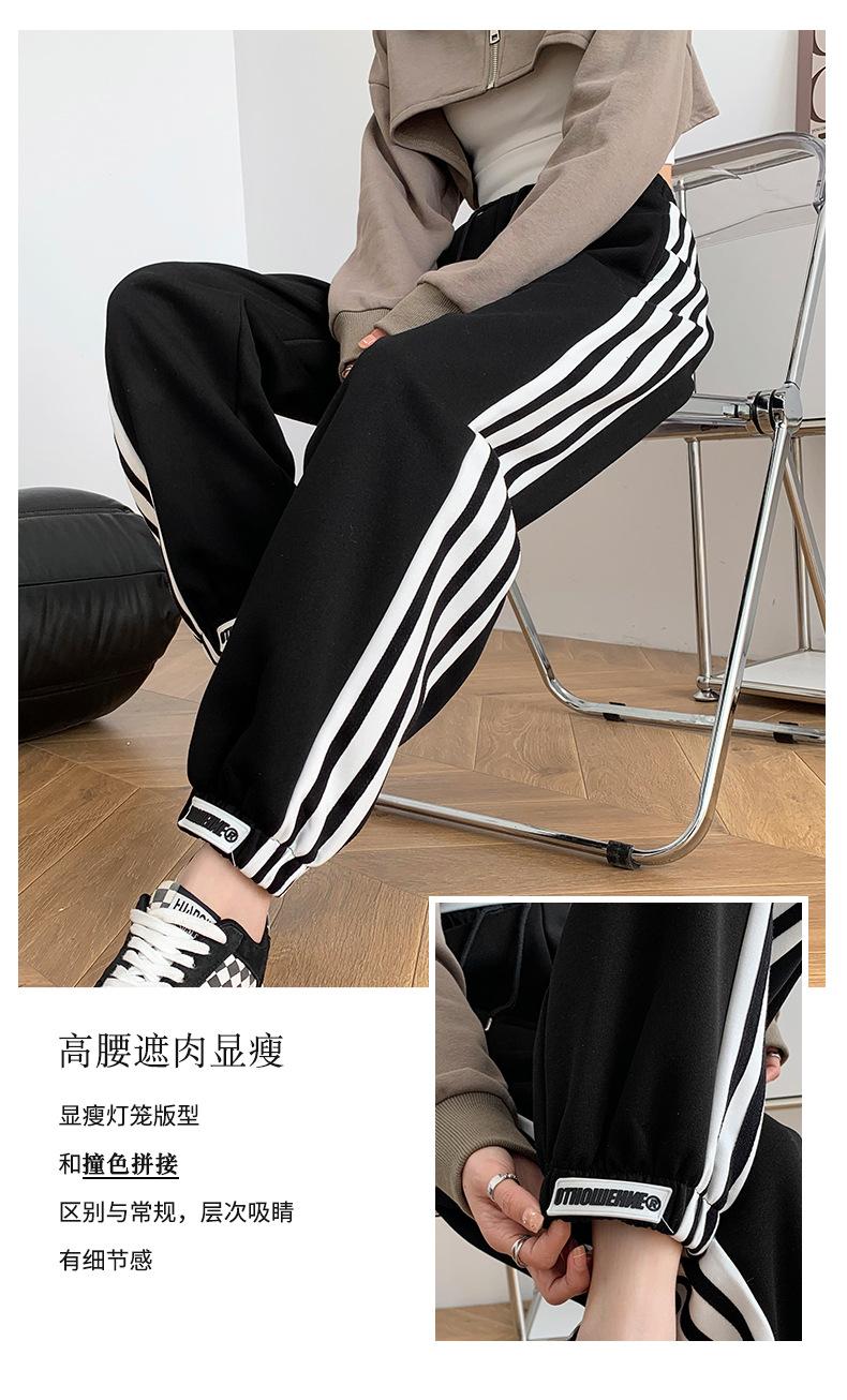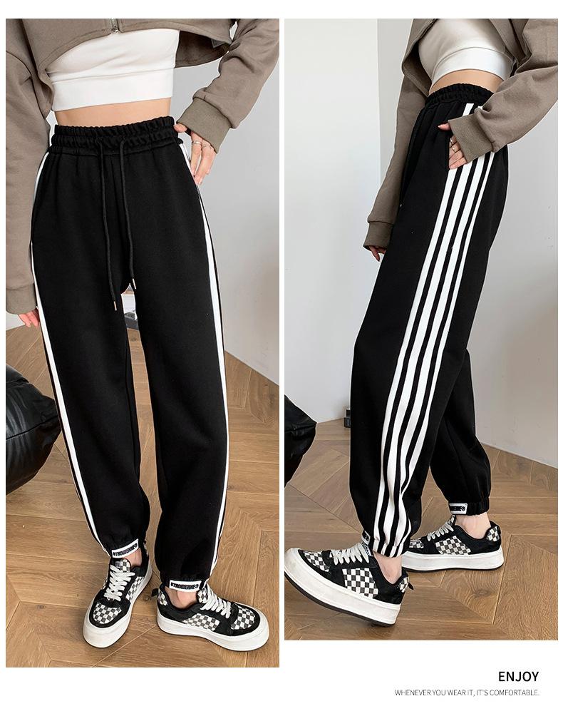 Otoño e Invierno Nueva Moda Pantalones de Chándal con Empalme a Rayas para Mujer de Cintura Alta Casual Holgados con Aspecto Adelgazante Versátiles Pantalones de Chándal Harem