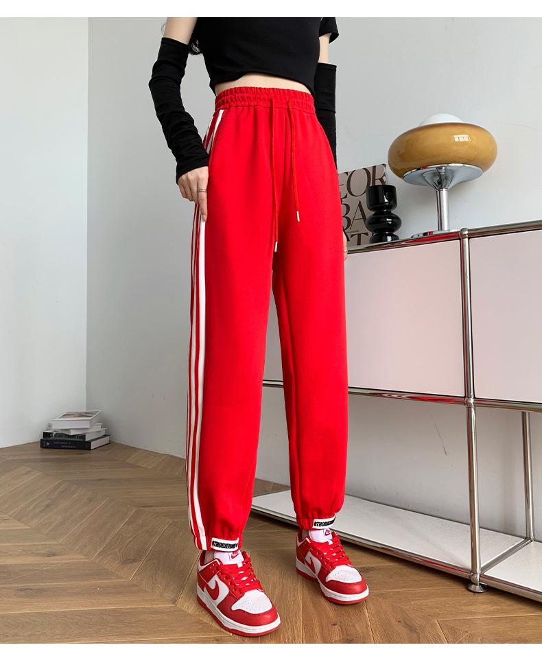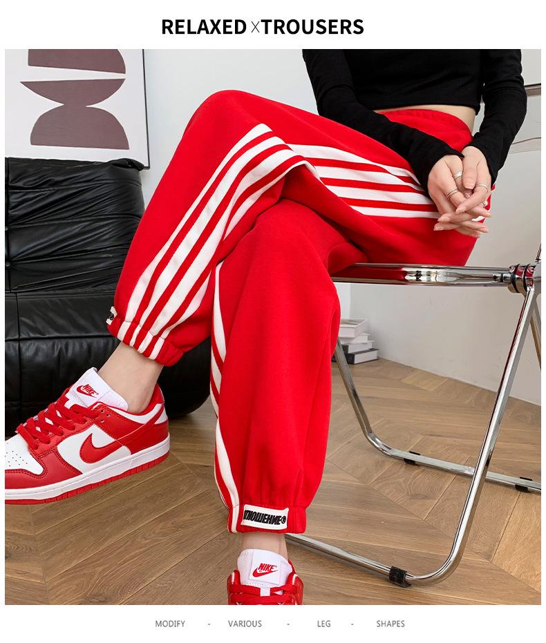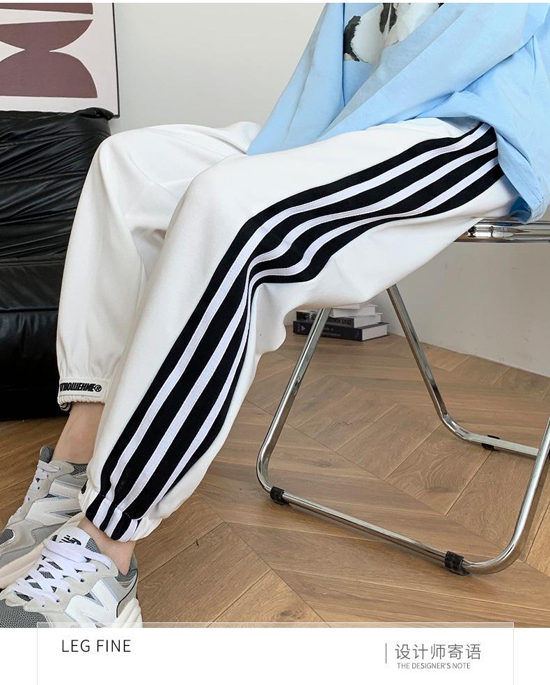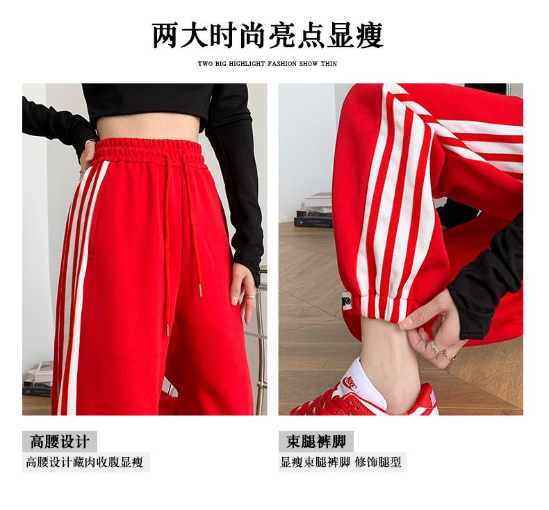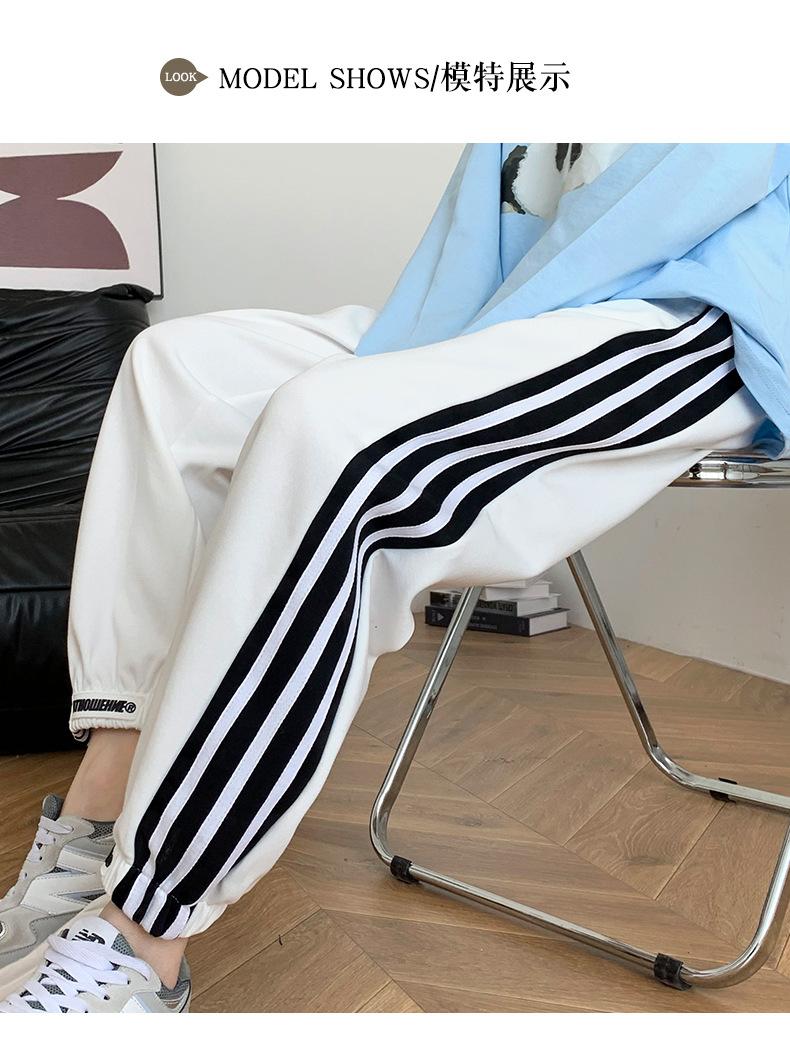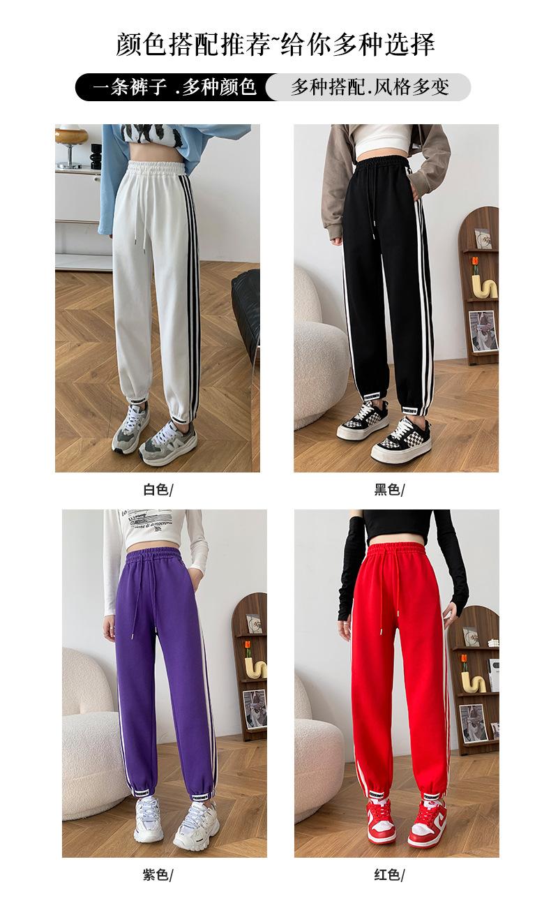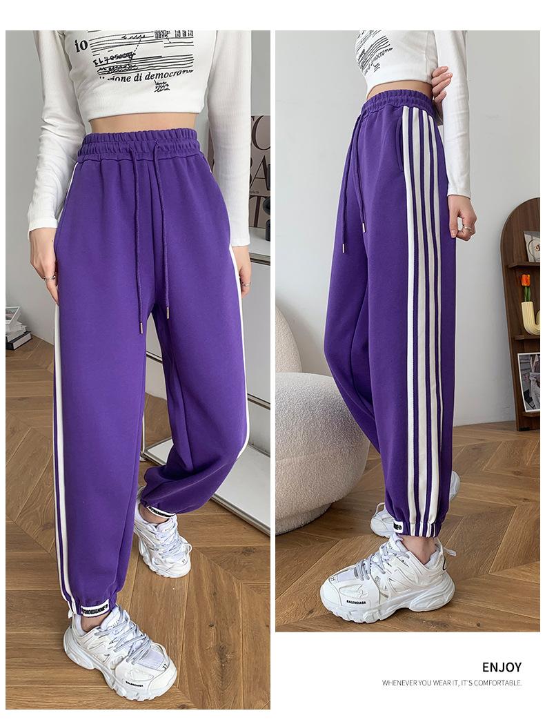 Otoño e Invierno Nueva Moda Pantalones de Chándal con Empalme a Rayas para Mujer de Cintura Alta Casual Holgados con Aspecto Adelgazante Versátiles Pantalones de Chándal Harem