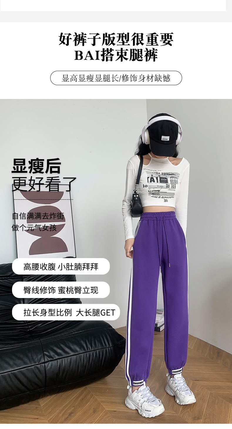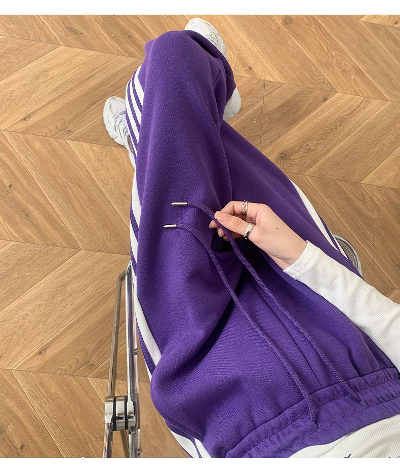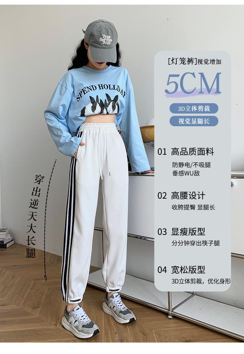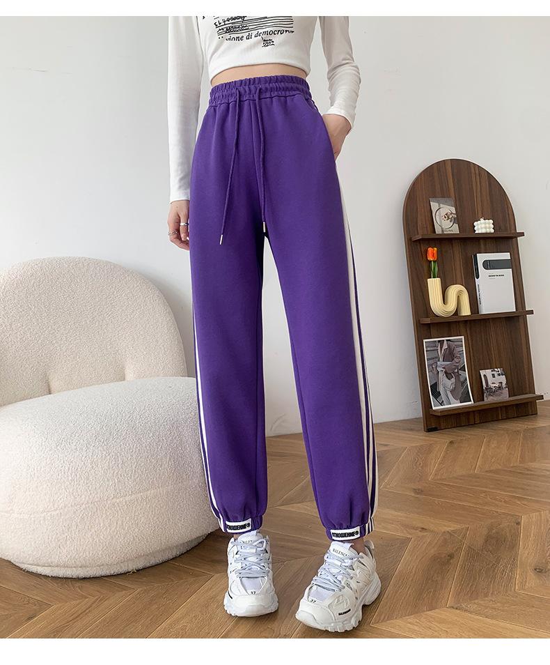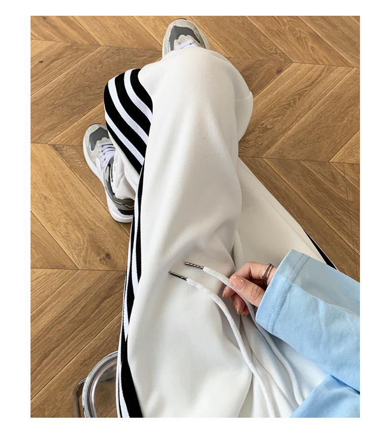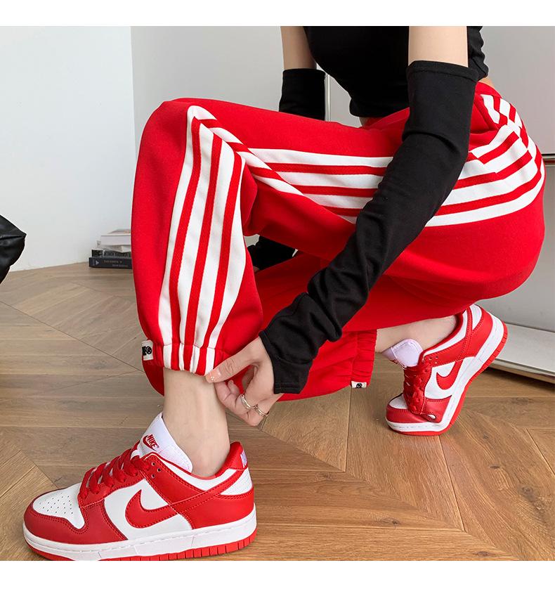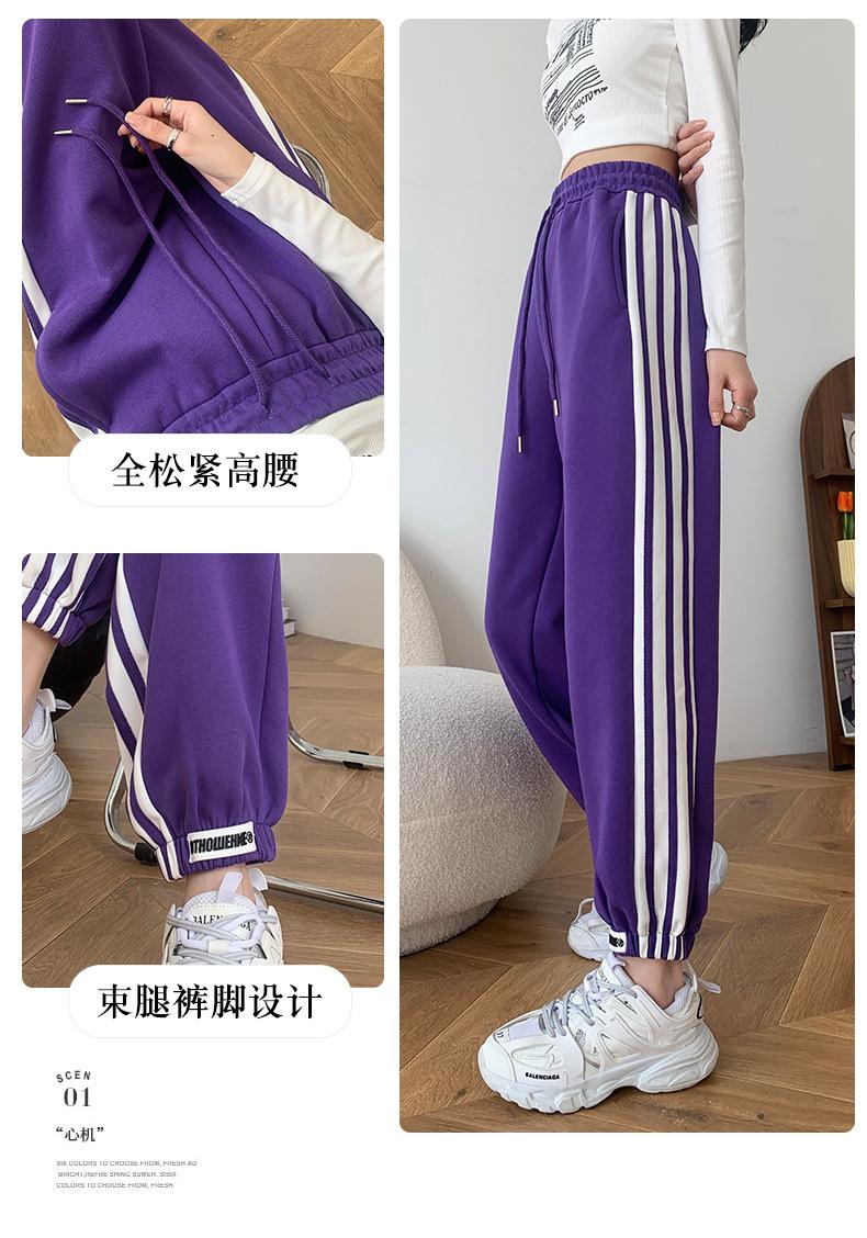 Otoño e Invierno Nueva Moda Pantalones de Chándal con Empalme a Rayas para Mujer de Cintura Alta Casual Holgados con Aspecto Adelgazante Versátiles Pantalones de Chándal Harem