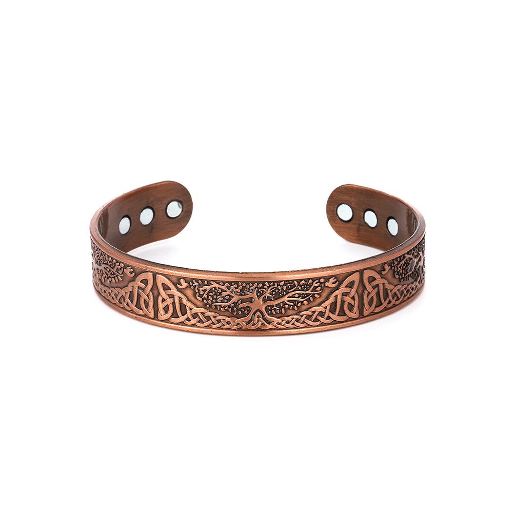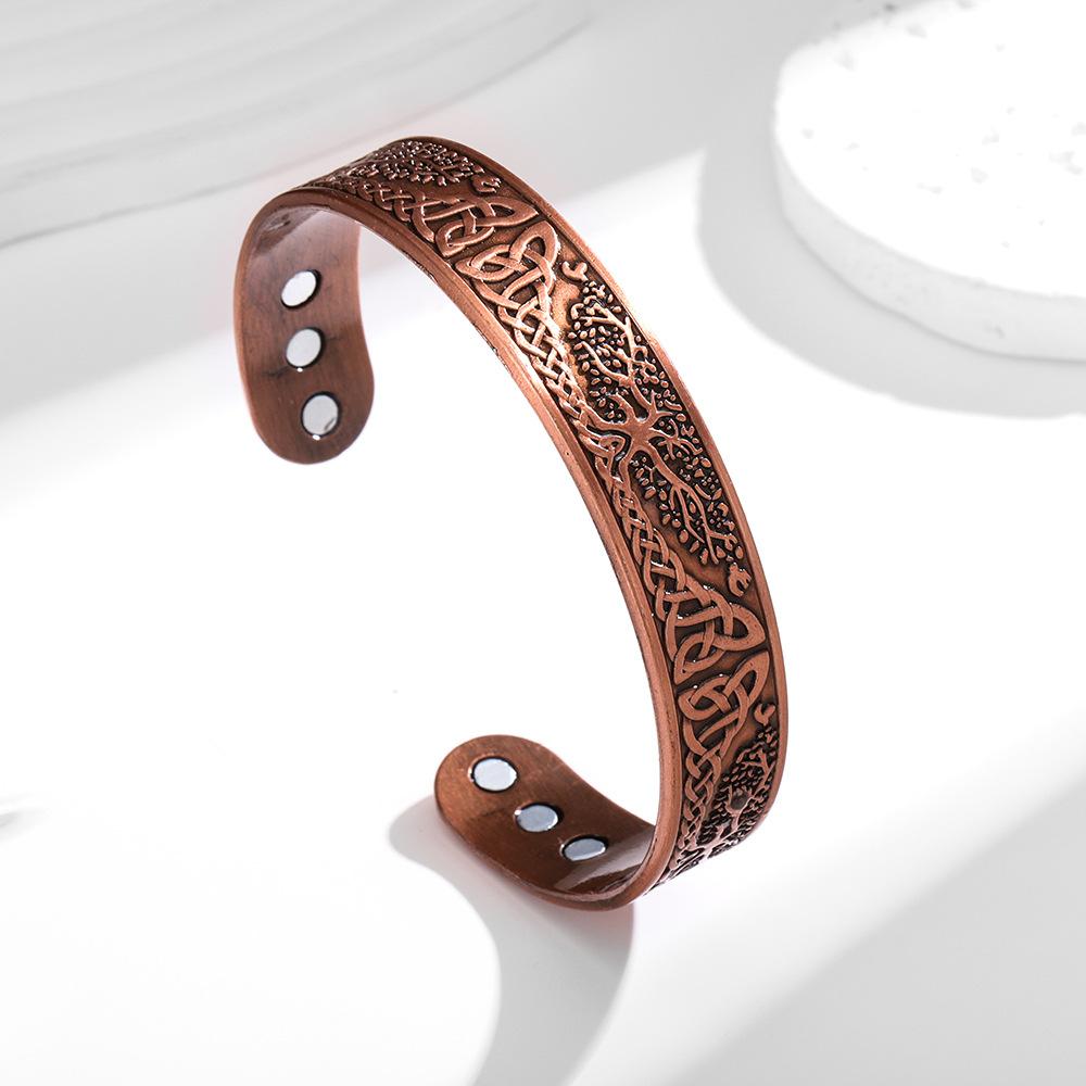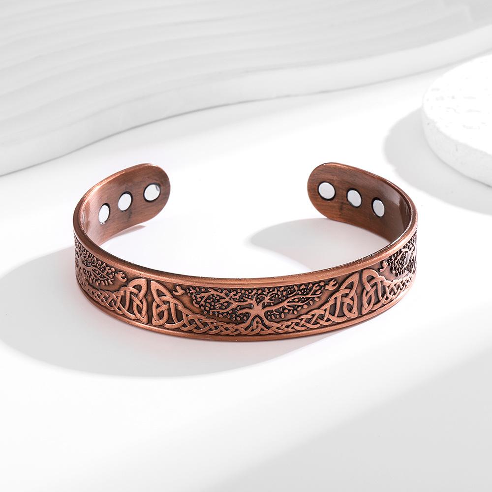 Nuevo Brazalete Vintage Antiguo Color Cobre Rojo Magnético Vikingo de Doble Anillo Personalizado Estilo Coreano Color Cobre Rojo Brazalete Abierto Hecho a Medida