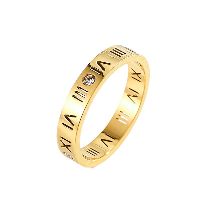 Anillo transfronterizo de acero de titanio caliente que no se desvanece para mujer, romano, cuatro diamantes, pareja de acero inoxidable, anillo dorado de 18k, anillo de moda de circonita