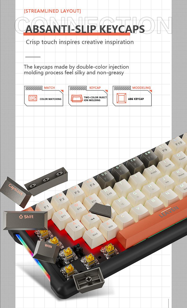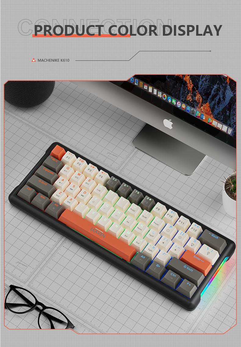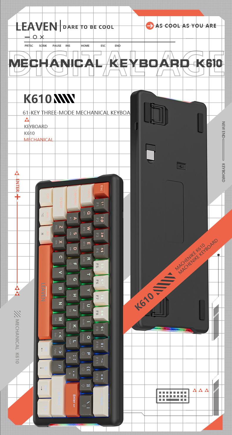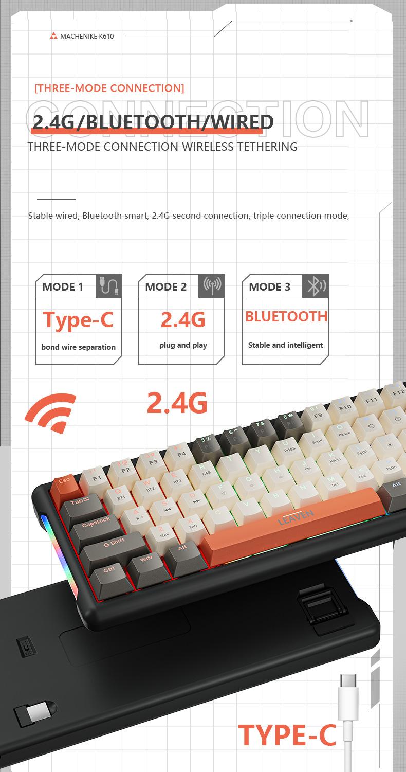 Teclado mecánico inalámbrico Bluetooth para juegos rusos con conexión en caliente y teclado de tres modos Crack K610.