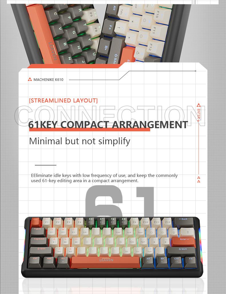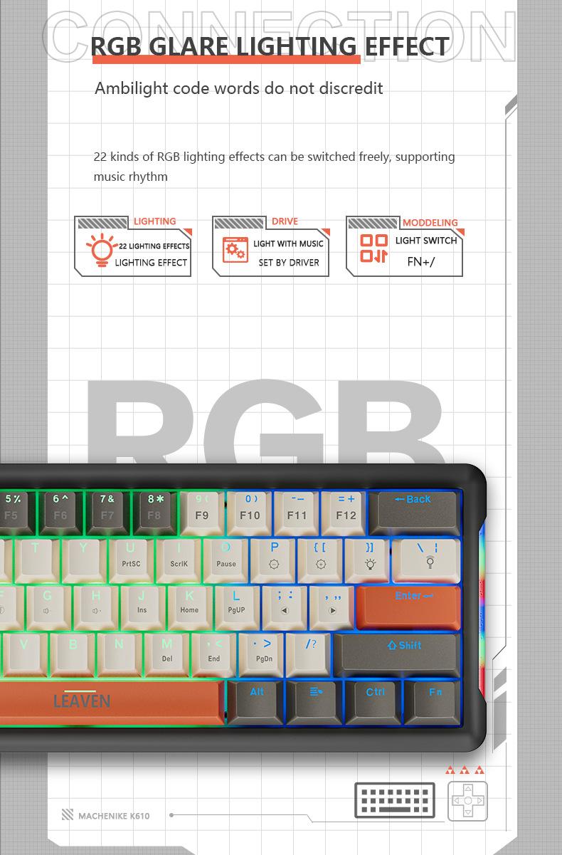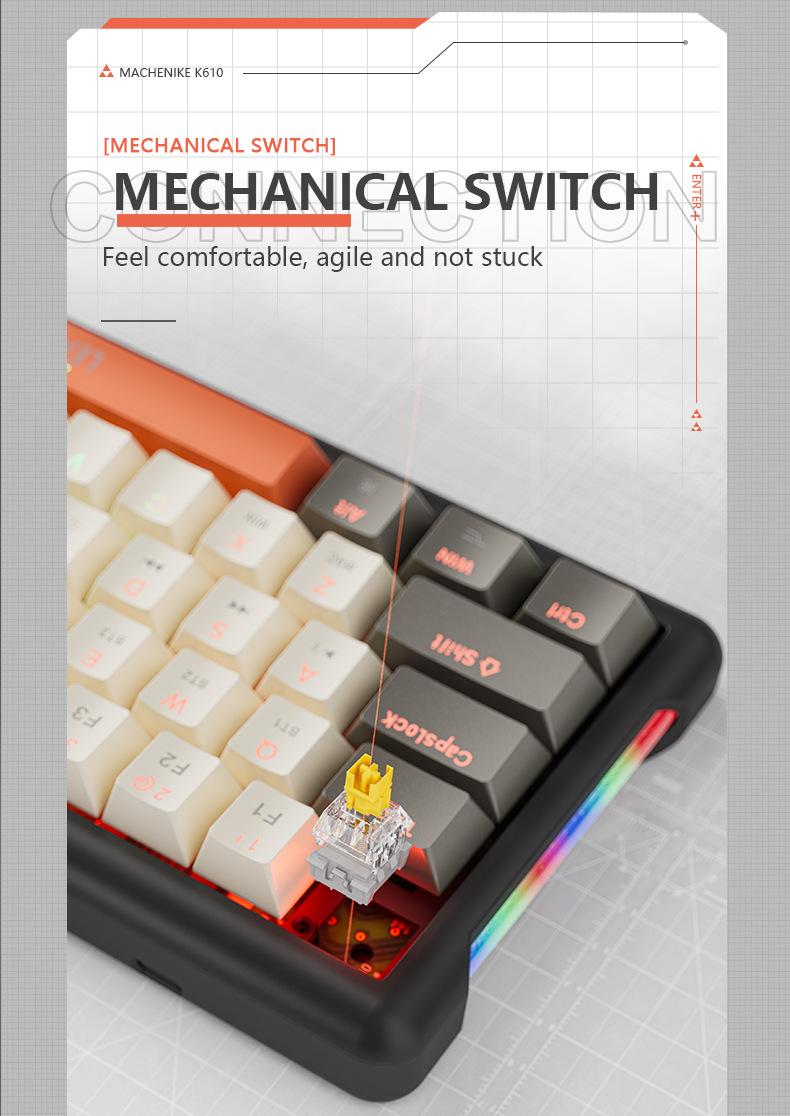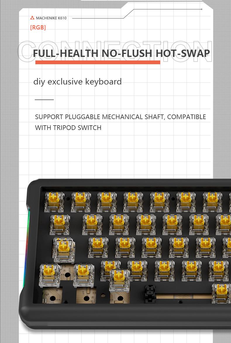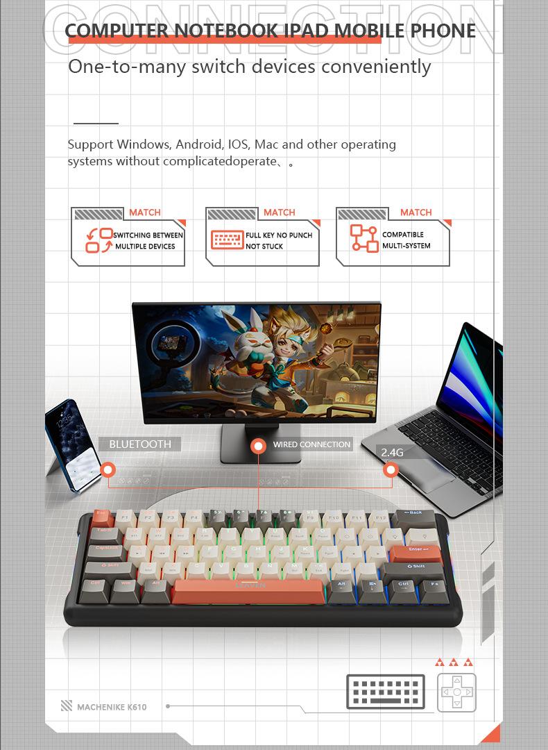 Teclado mecánico inalámbrico Bluetooth para juegos rusos con conexión en caliente y teclado de tres modos Crack K610.