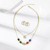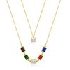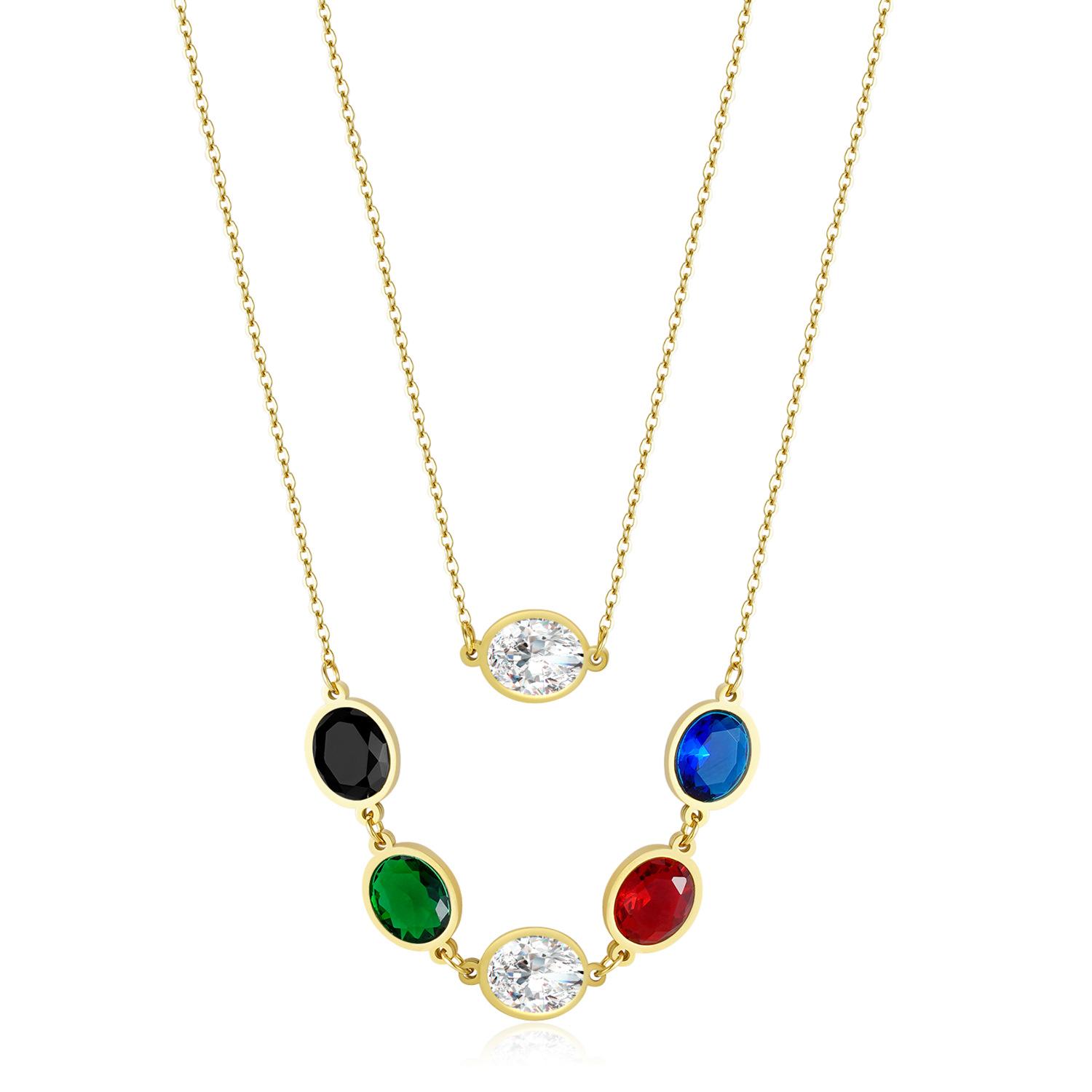 Collar de cadena de clavícula de lujo con gemas de colores transfronterizos de Europa y América, conjunto de colgante de collar de circonita de acero de titanio de doble capa para mujer