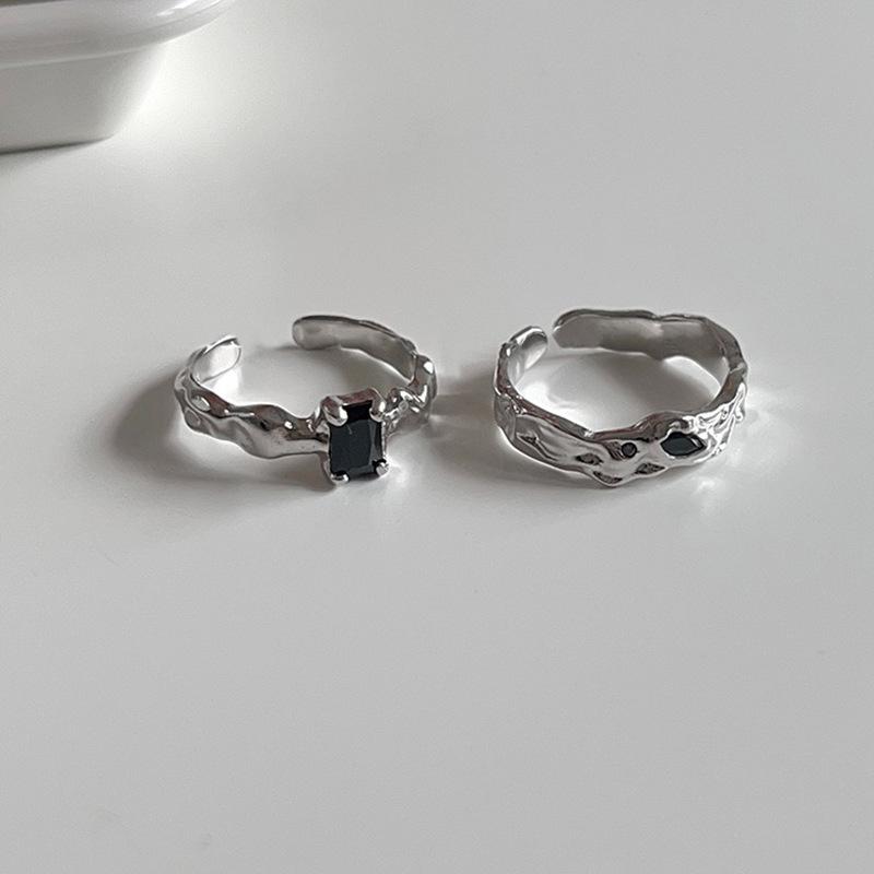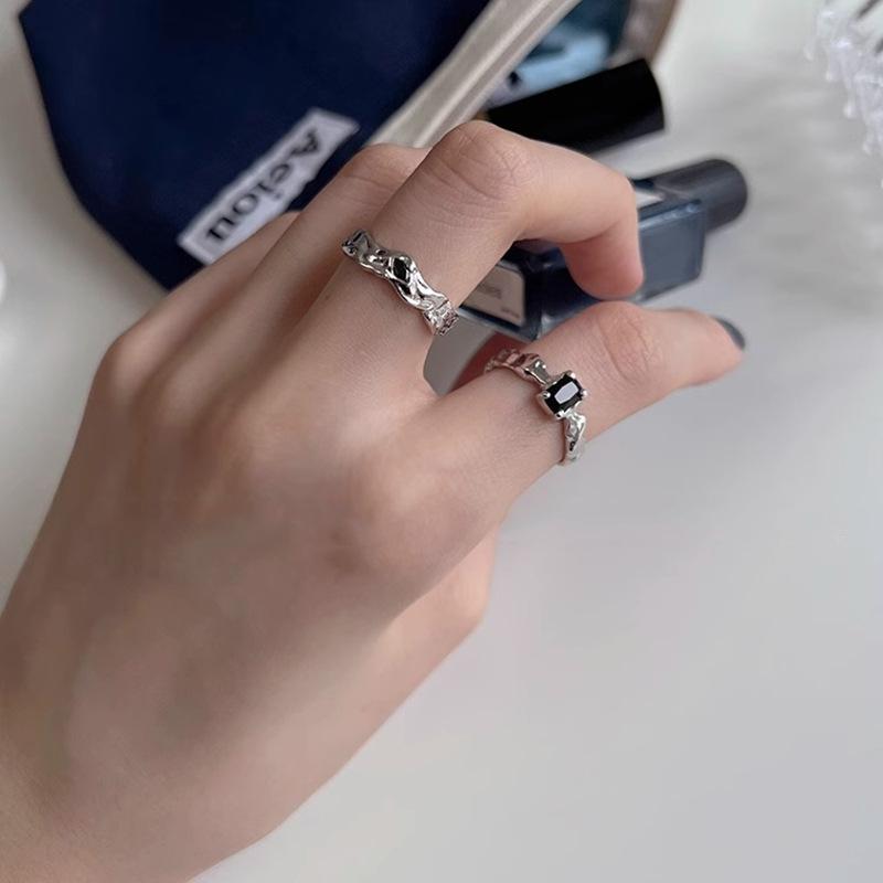 Anillo de Diamantes Cuadrados Micro-incrustados con Gema Negra de Diseño Nicho Estilo Coreano de Diseño de Forma Especial Anillo de Dedo Abierto Cool de Moda para Mujer