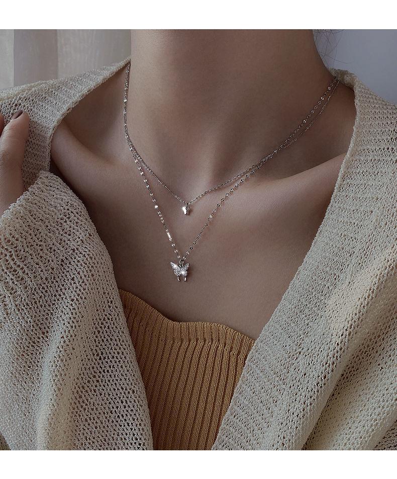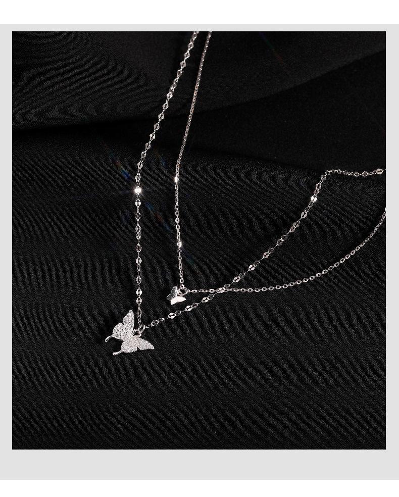 Collar de mariposa de doble capa para mujer 2022, nuevo estilo coreano, cadena de clavícula para novias, nicho, diseño de lujo ligero, cadena de suéter con sentido de moda