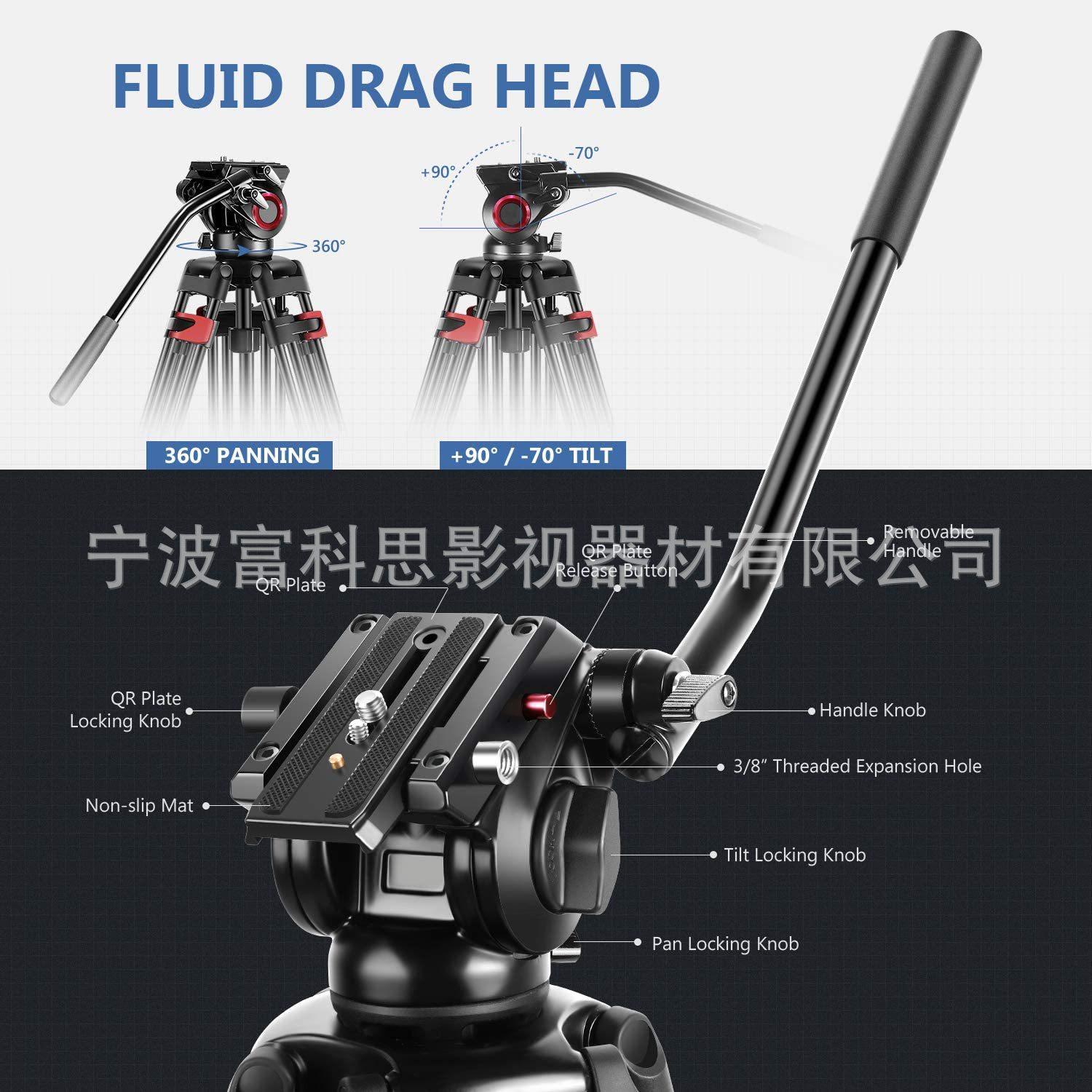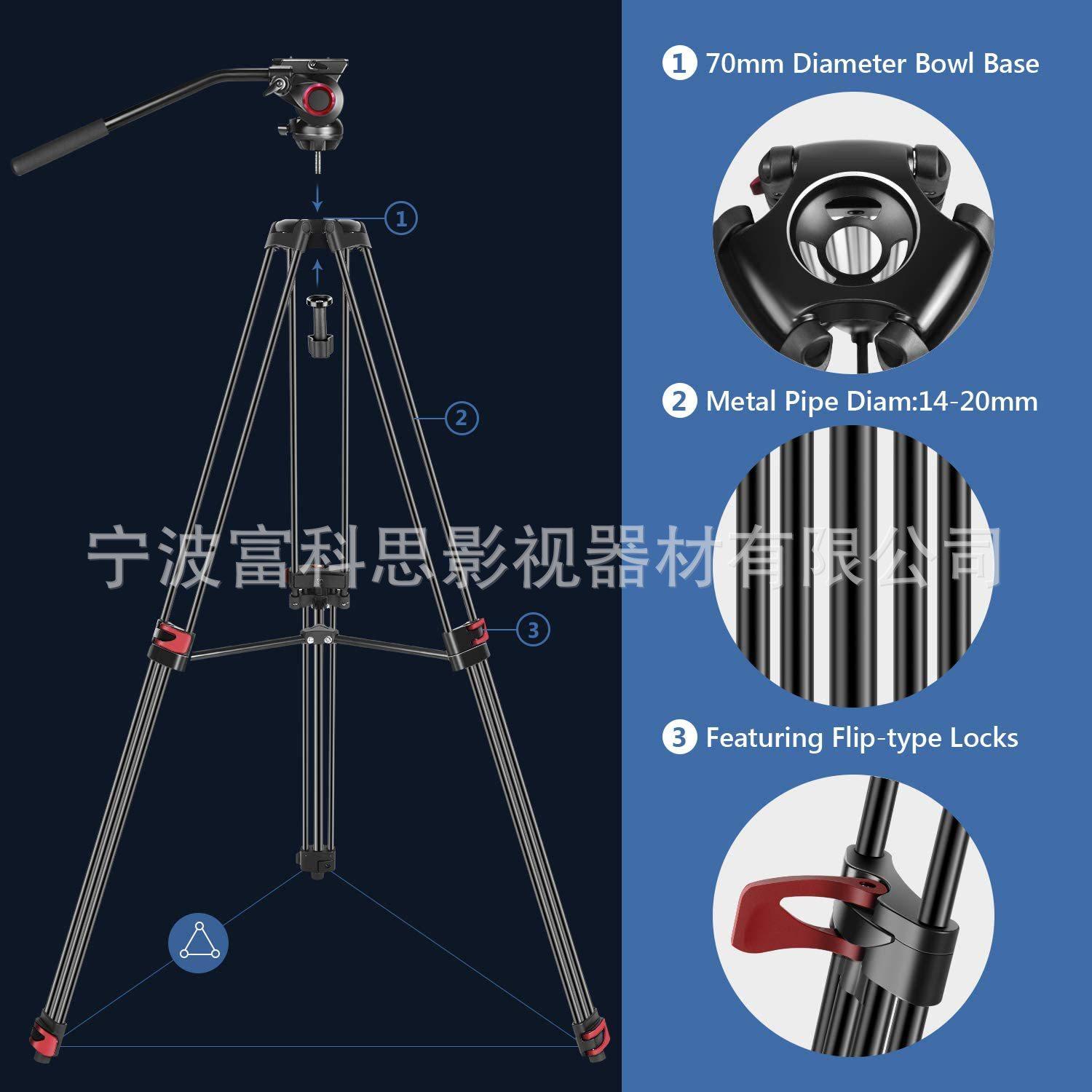 ★Este trípode con rótula fluida de dos etapas viene con hebillas de goma de bloqueo y un cuenco de 75 mm incorporado; el separador de nivel medio mejora la estabilidad manteniendo las patas del trípode en una posición bloqueada