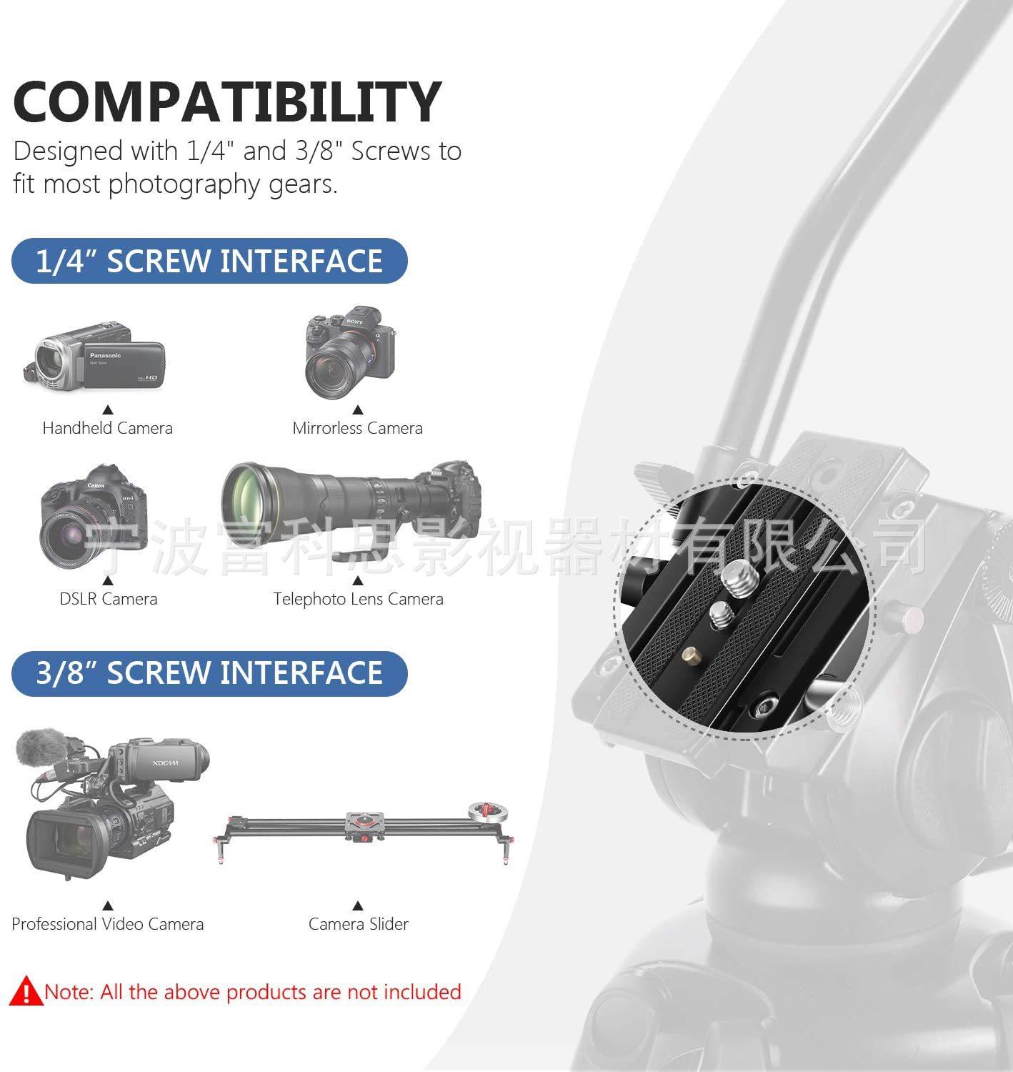 ★La placa de liberación rápida viene con un tornillo de 1/4"-20 y un tornillo de 3/8"-16 almacenados en roscas debajo de la placa, proporcionando un rango de deslizamiento de +20/-25 mm para capacidades de movilidad