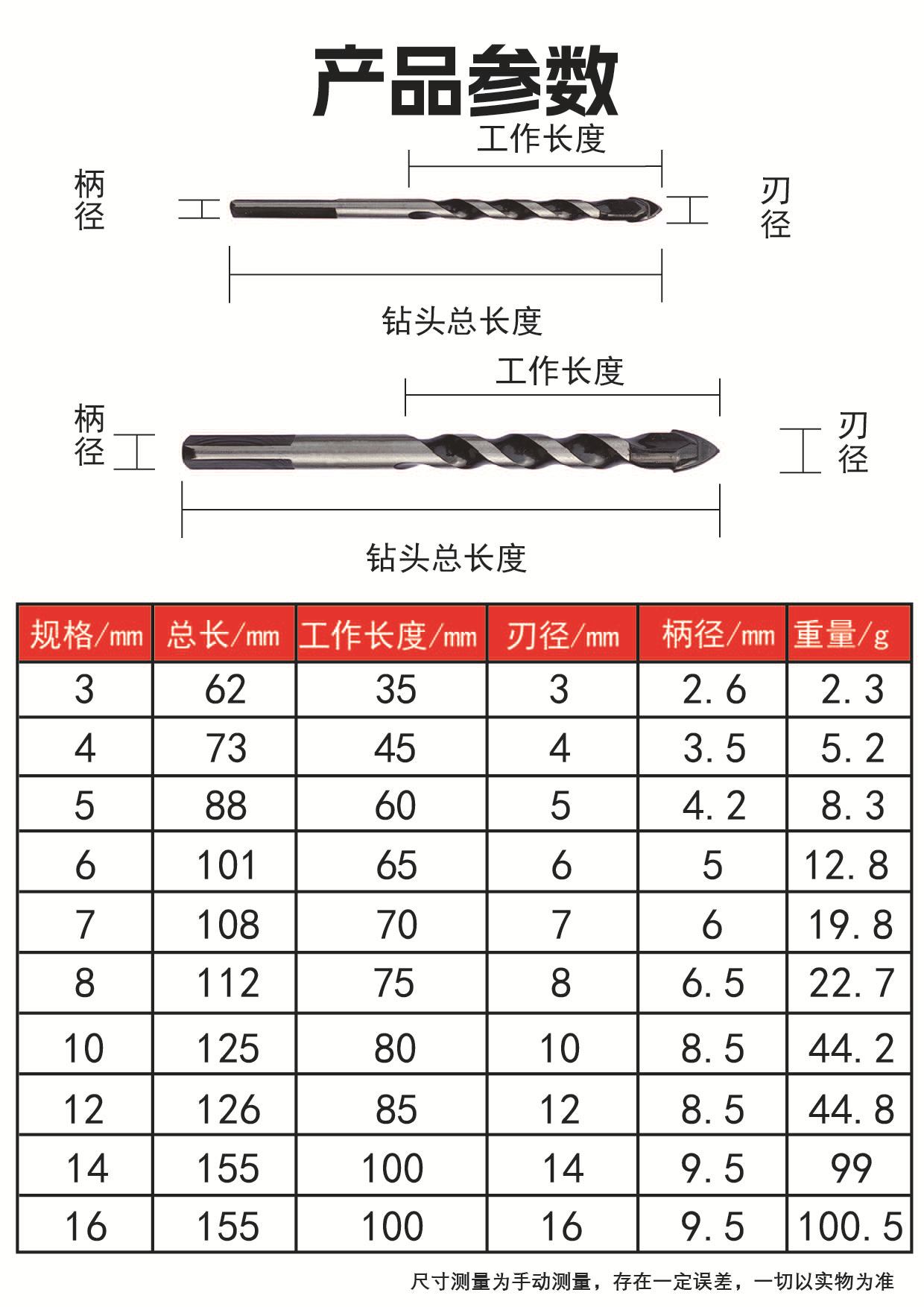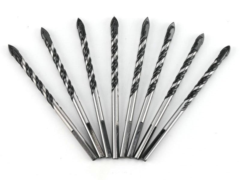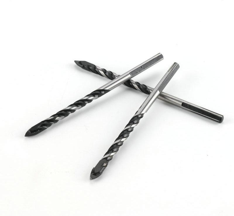 Broca Triangular para Azulejo Cerámico de Aleación de Pulverización de Doble Rosca 6-12mm Especificación Taladro de Pistola Broca Negra