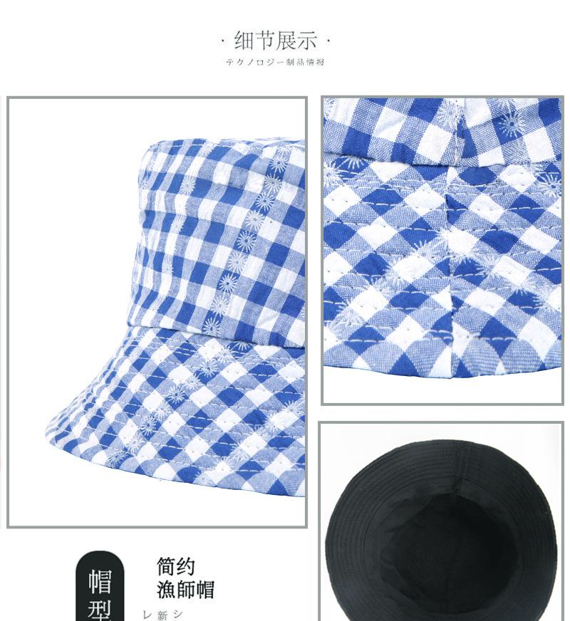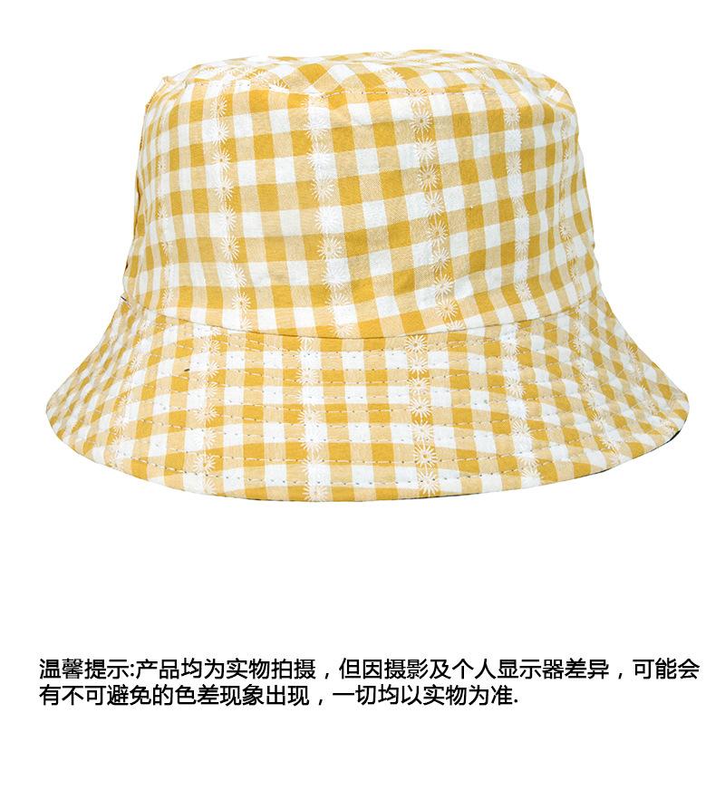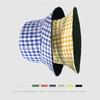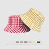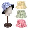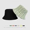 Sombrero de pescador a cuadros de doble cara estilo japonés, informal, para mujer, estilo coreano, bonito sombrero de pescador con protección solar, sombrero de lavabo de parte superior plana.