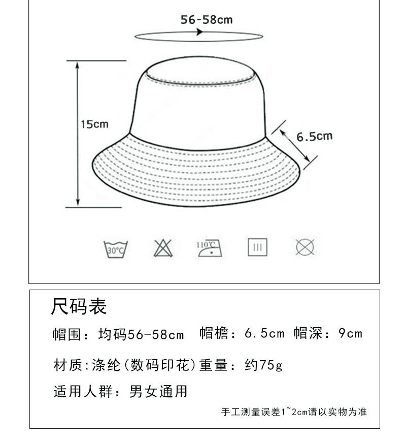Sombrero de pescador de ala ancha con estampado de comercio exterior, sombrero de lavabo de estilo coreano que combina con todo, sombrero de hoja de palma del mismo estilo de Amazon.