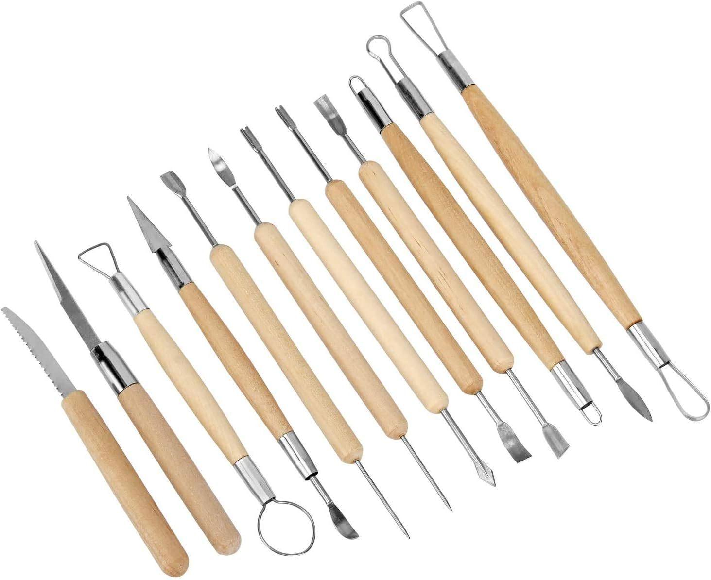 Herramientas de cerámica de madera para esculturas de arcilla, herramientas de bricolaje, herramientas de arcilla para esculturas de cerámica blanda, cuchillo de tallado en blanco