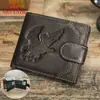 Cartera de hombre de Amazon, corta, de negocios, de piel de vaca, con tarjetero, monedero y clip dorado de cuero genuino.