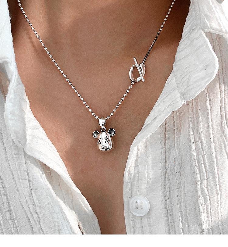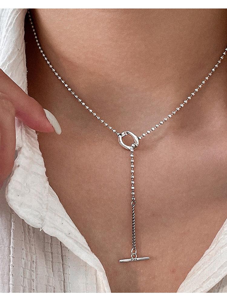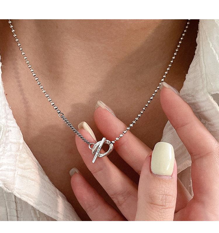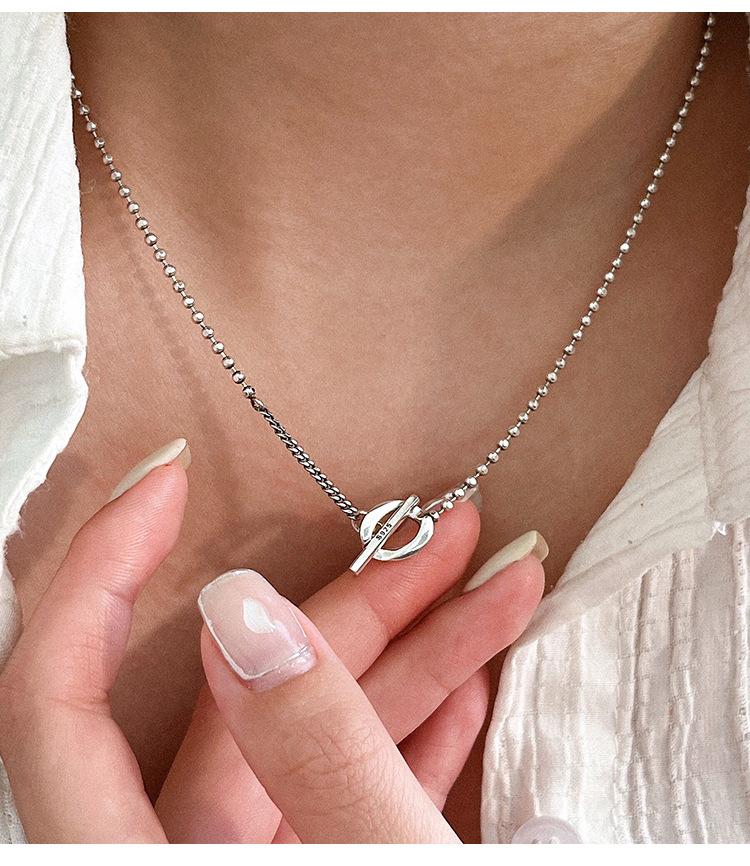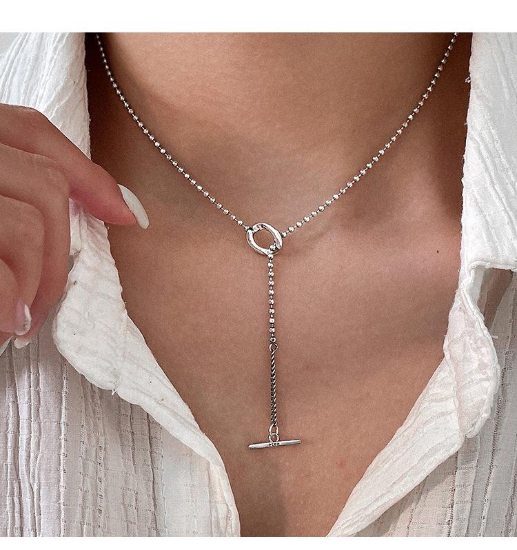 Collar de cadena de cuentas de plata esterlina s925 todo en uno Ruitai con cierre de palanca OT Corea del Sur cadena para suéter nicho de lujo ligero collar de alta gama