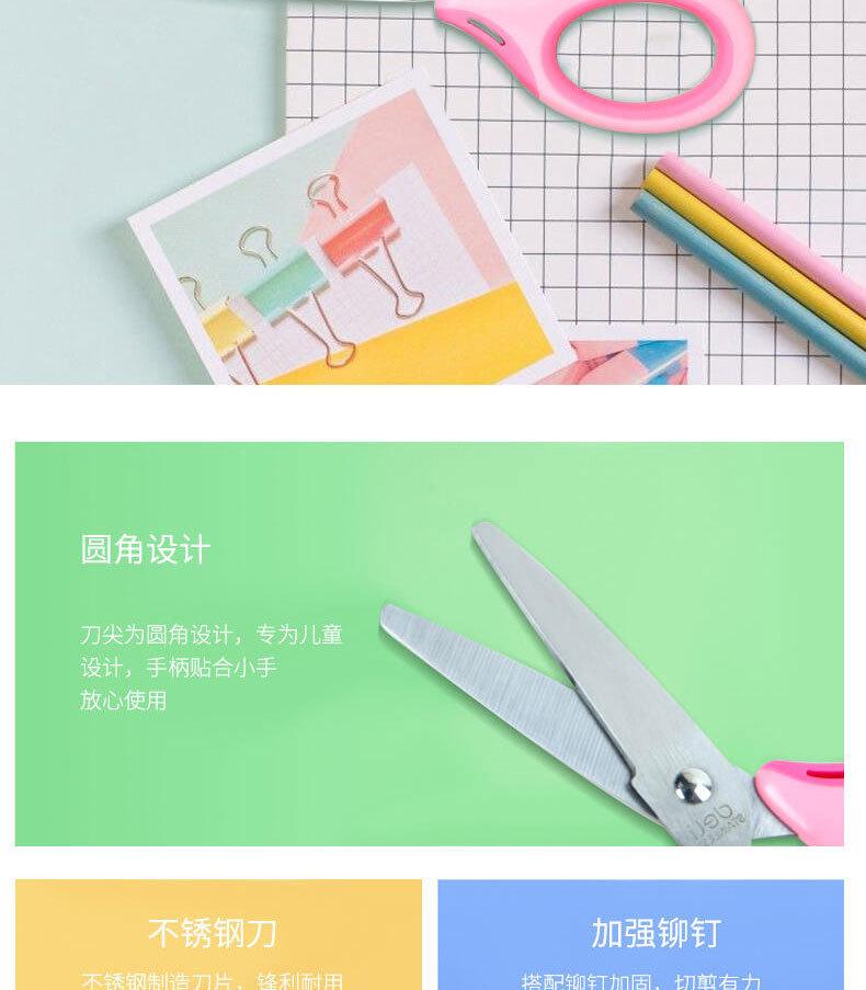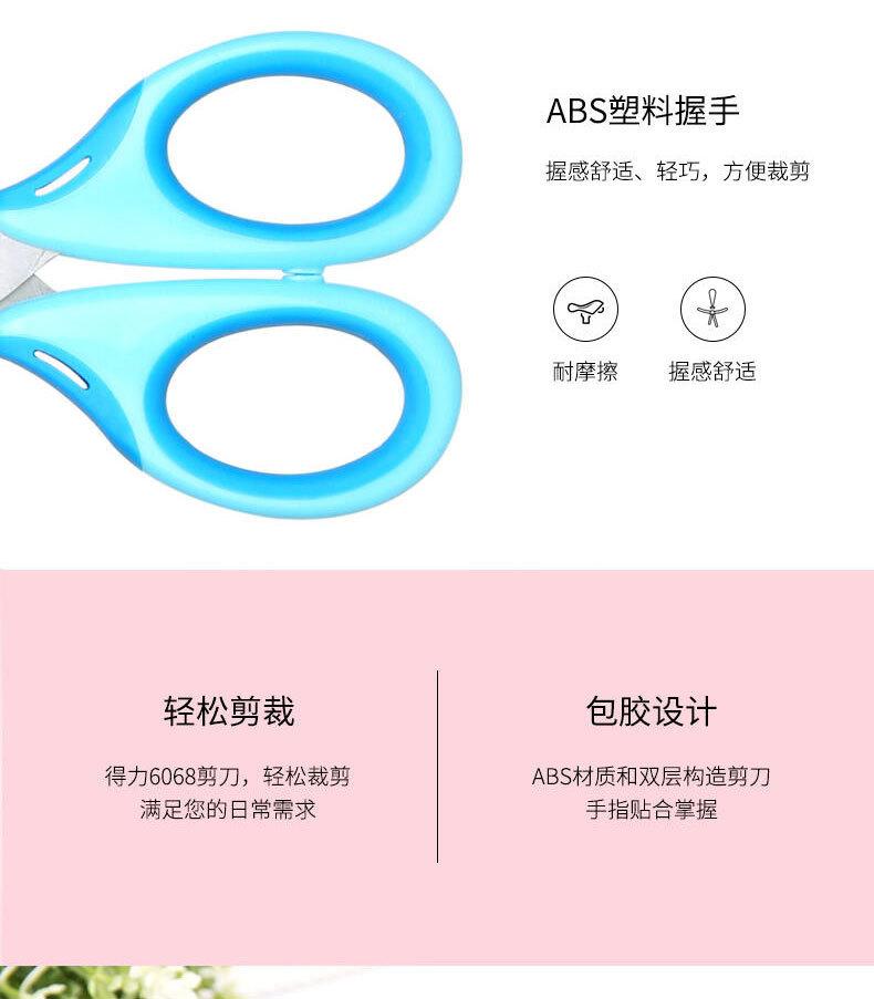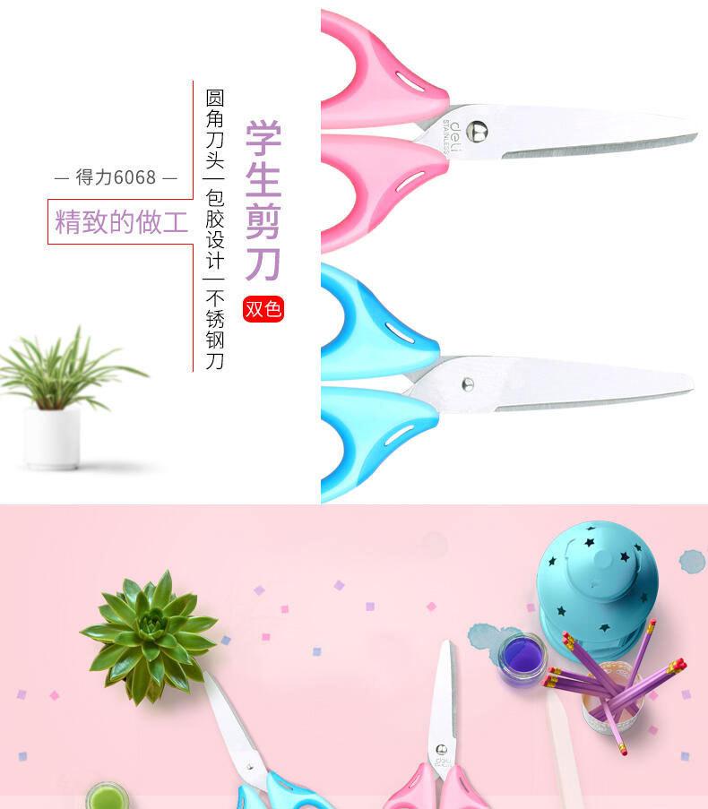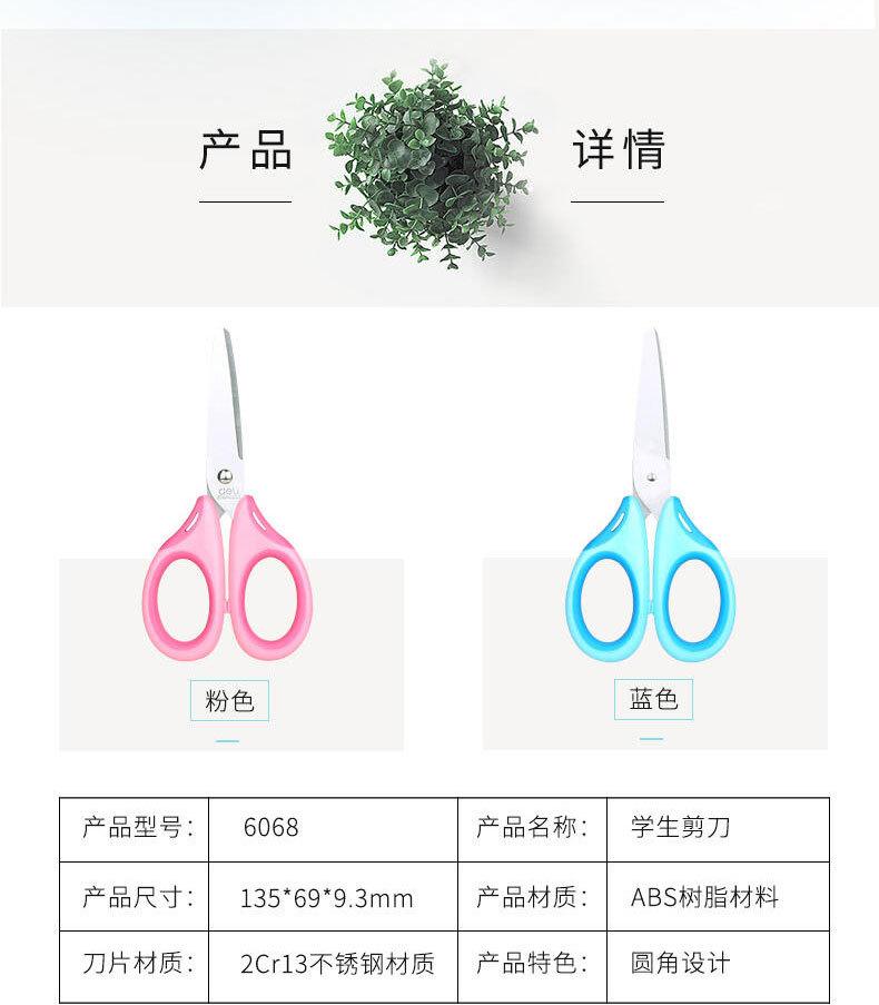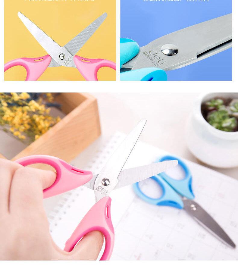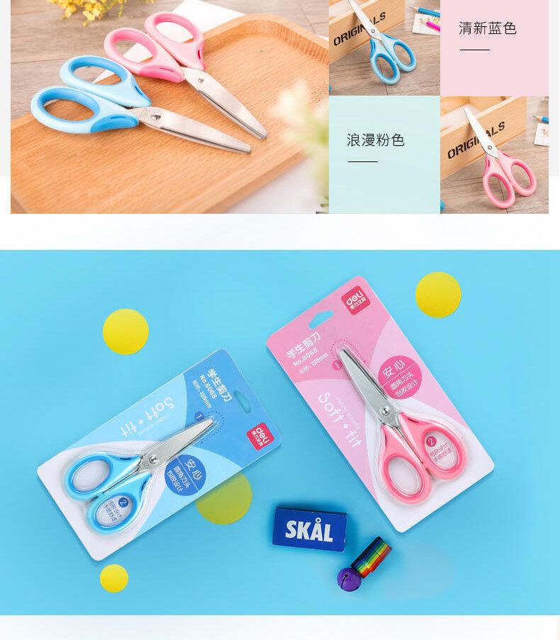 Tijeras para estudiantes Deli 6068, tijeras de cabeza redonda, tijeras manuales para tareas de primaria, tijeras pequeñas de acero inoxidable para cortar papel.