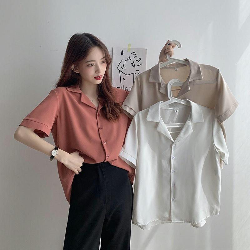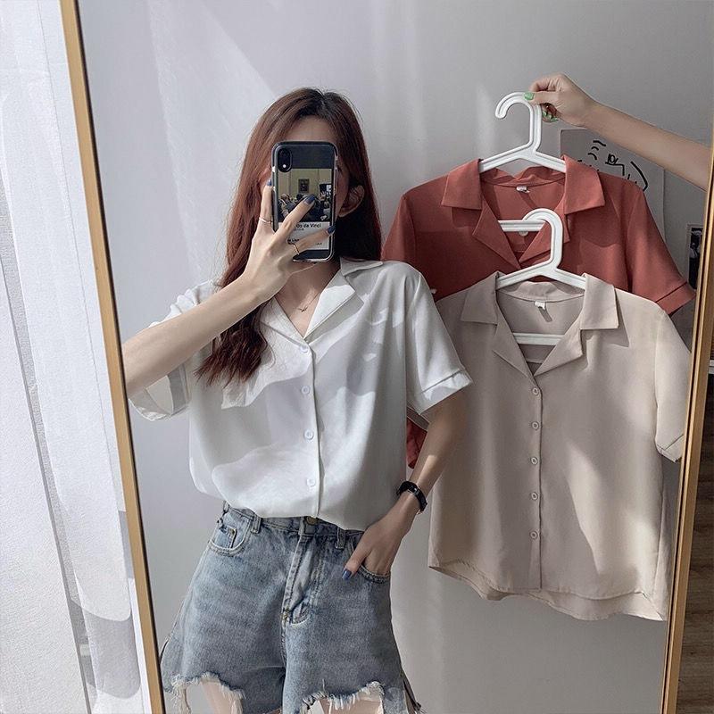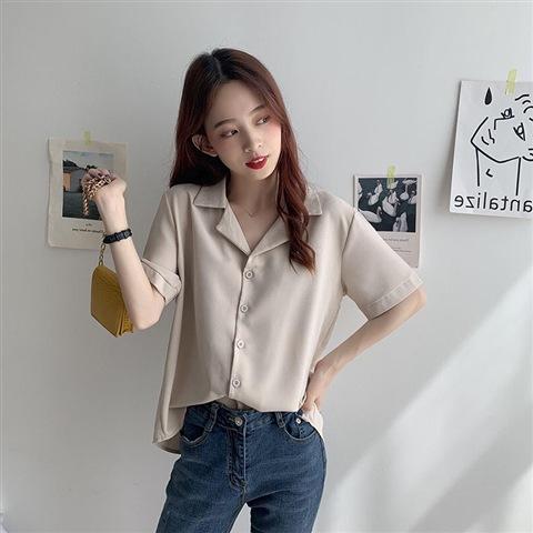 Camisa Nicho con Sentido del Diseño Camisa Elegante para Estudiante Verano Nueva Delgada Cuello de Vestido Suelta Chifón Manga Corta Top para Mujer