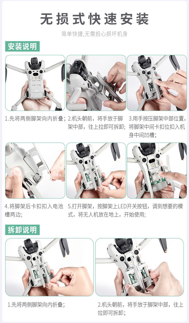 Startrc Es Adecuado para Dji Mini4Pro Trípode Elevador Luz LED Advertencia Tren de Aterrizaje Accesorios para Drones Dji
