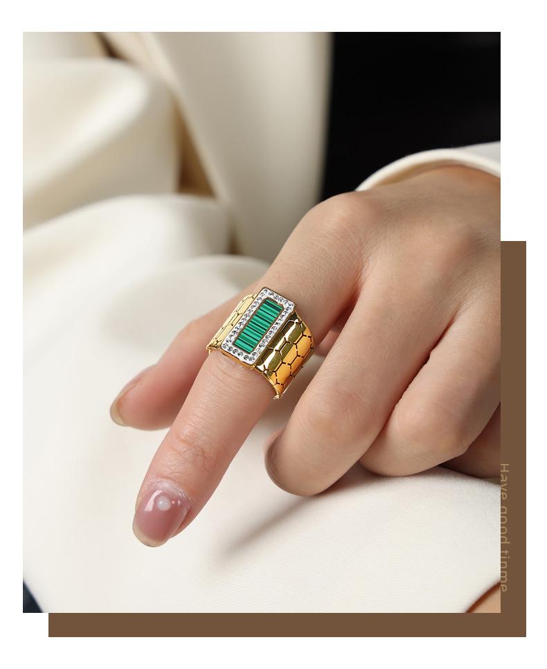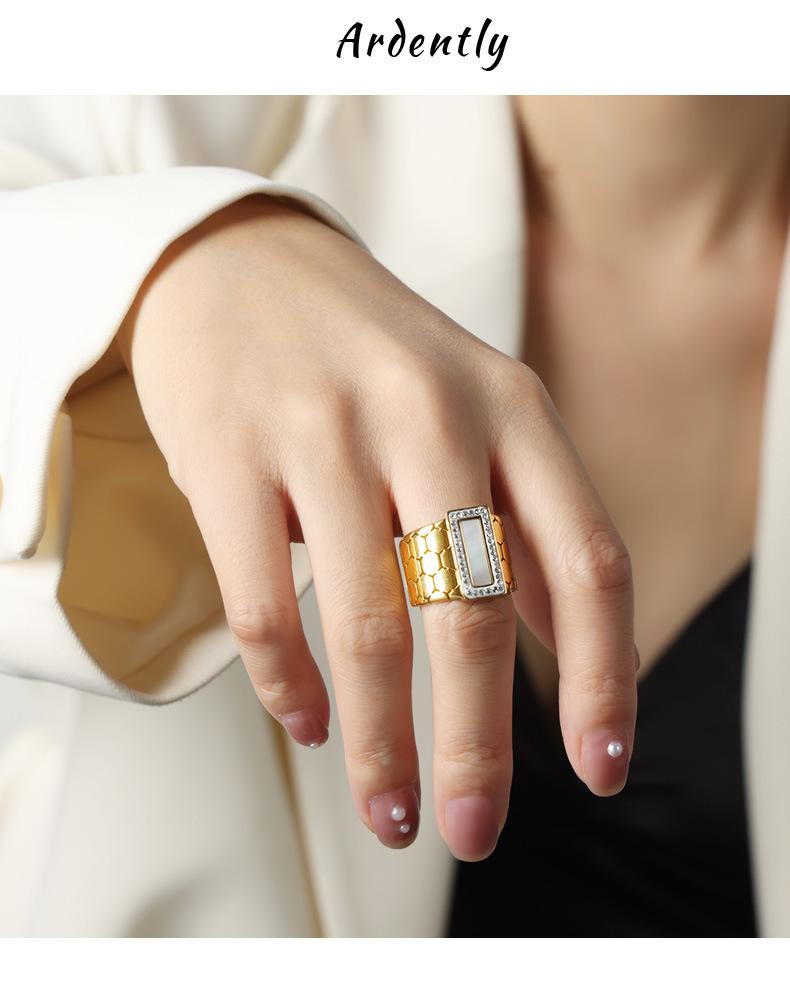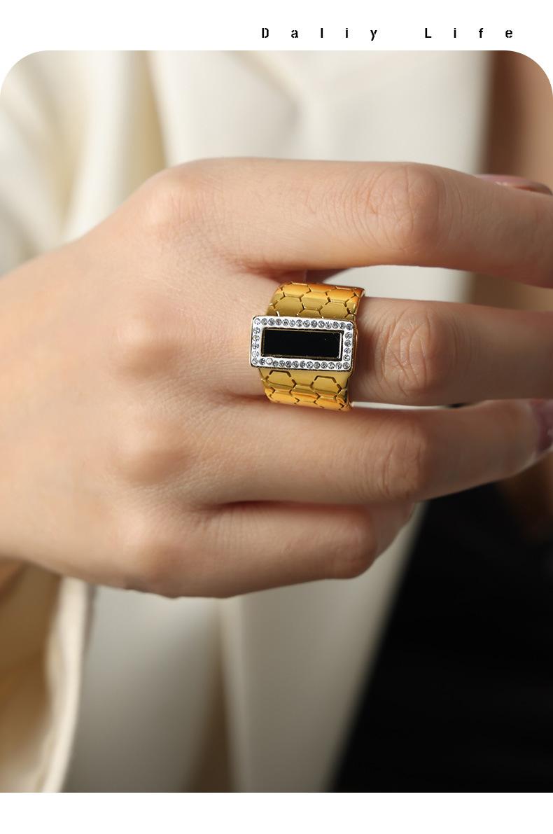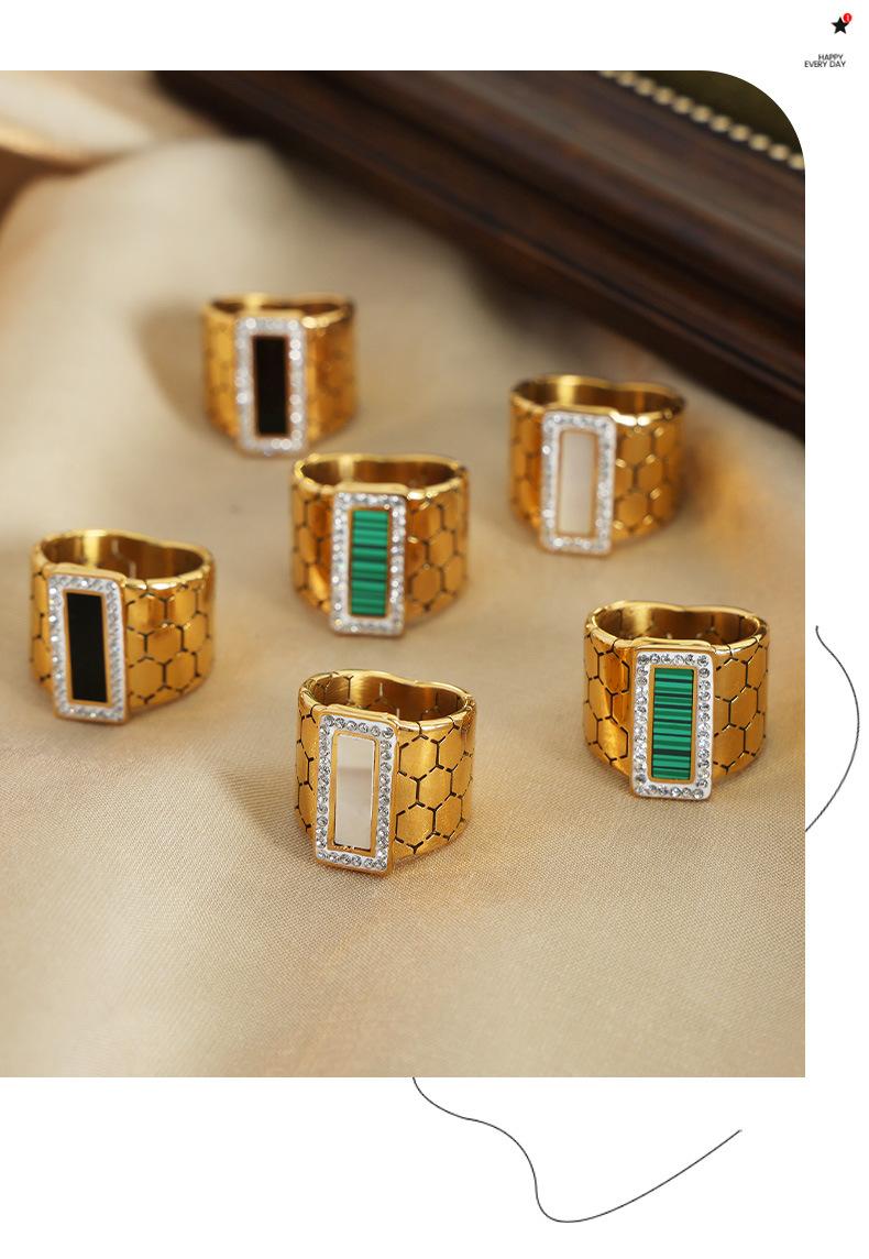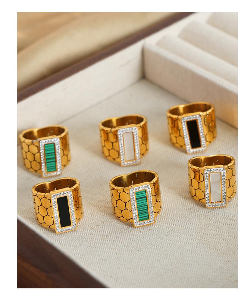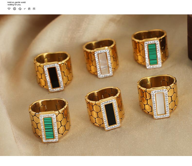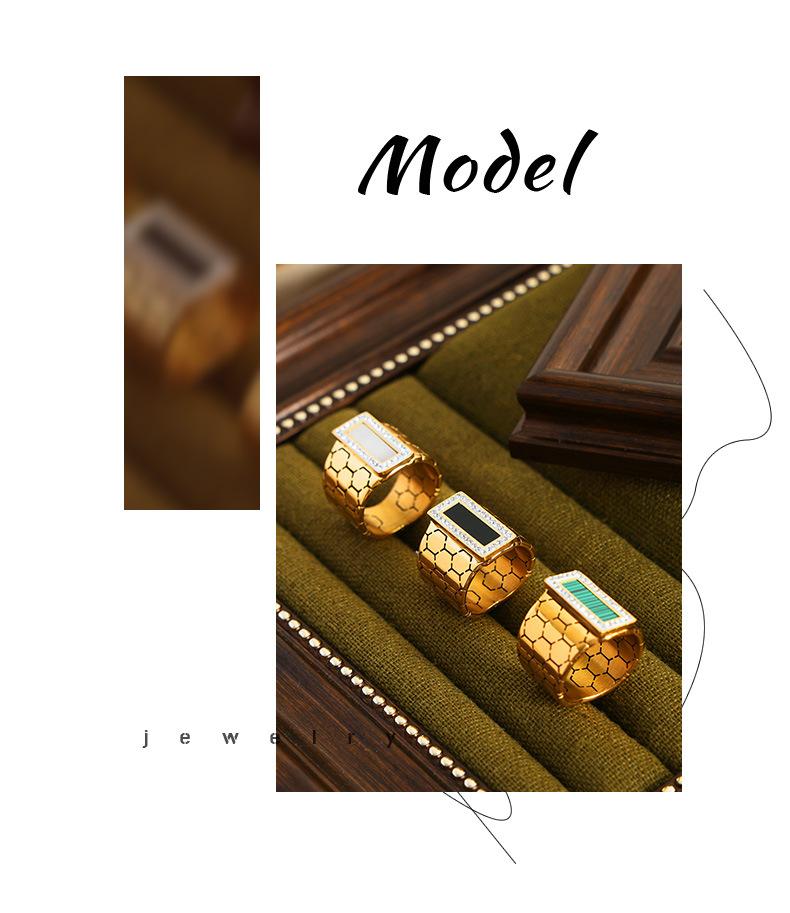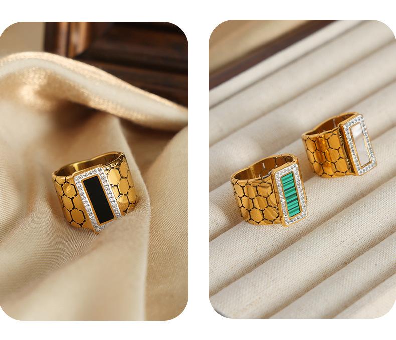 Joyería de Nicho de Moda Estilo Hong Kong Anillo de Acero de Titanio con Textura Hexagonal con Diseño de Escarabajo Blanco Acrílico Cuadrado con Incrustaciones de Diamantes