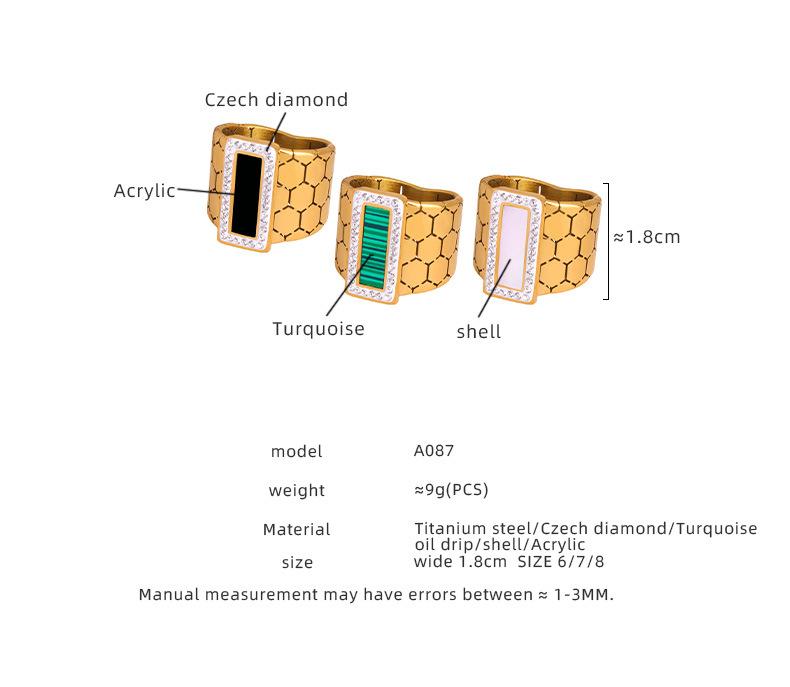 A087-White shell gold ring, A087-Black Acrylic Gold Ring, A087-Turquoise Gold Ring