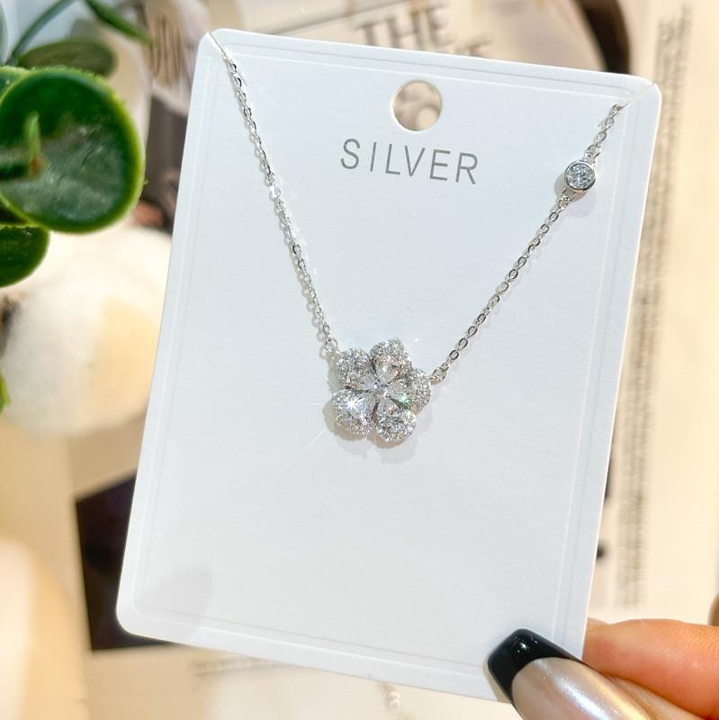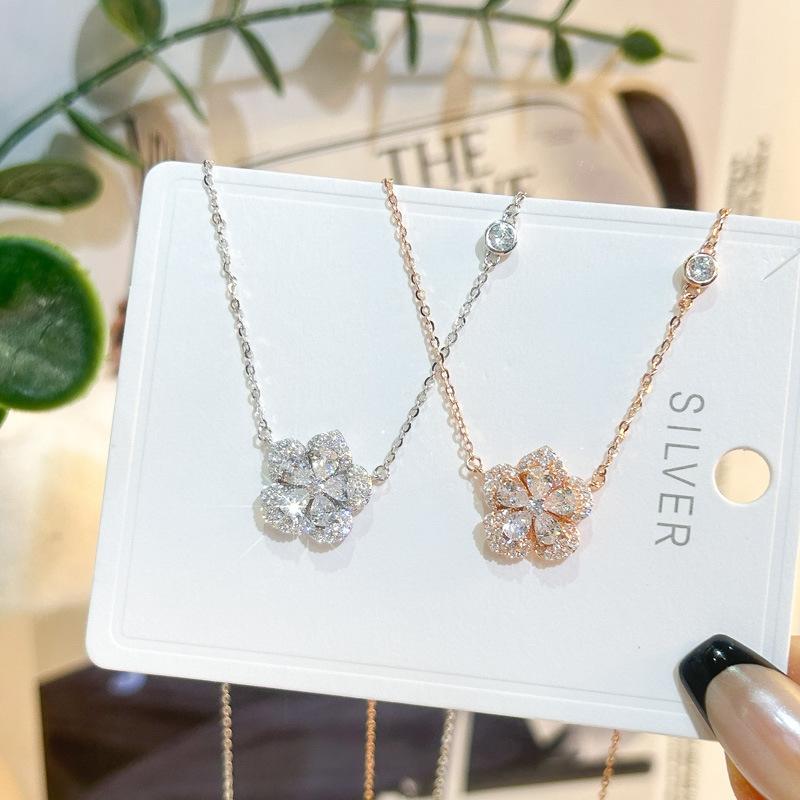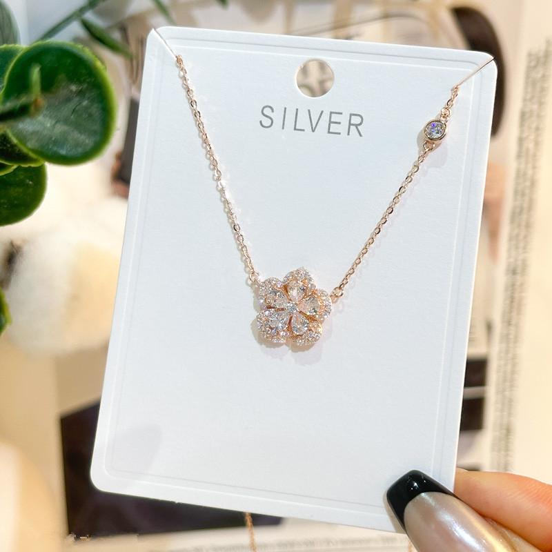 Collar de plata de ley s925 con colgante de flor pequeña para niña, cadena de clavícula con temperamento a juego, diseño de nicho, cadena de collar de lujo ligera al por mayor