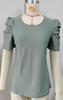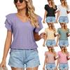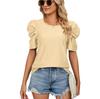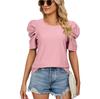 Camiseta holgada con mangas abullonadas plisadas y cuello redondo de color sólido para mujer, nueva camiseta de comercio exterior transfronterizo europeo y americano de Amazon 2023