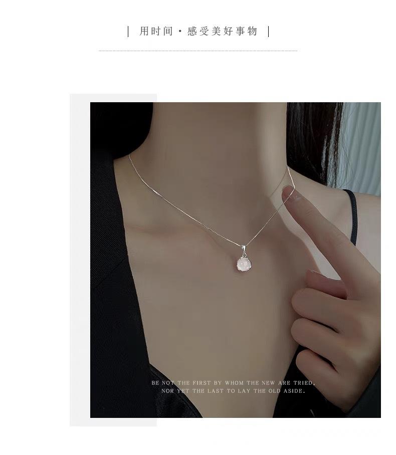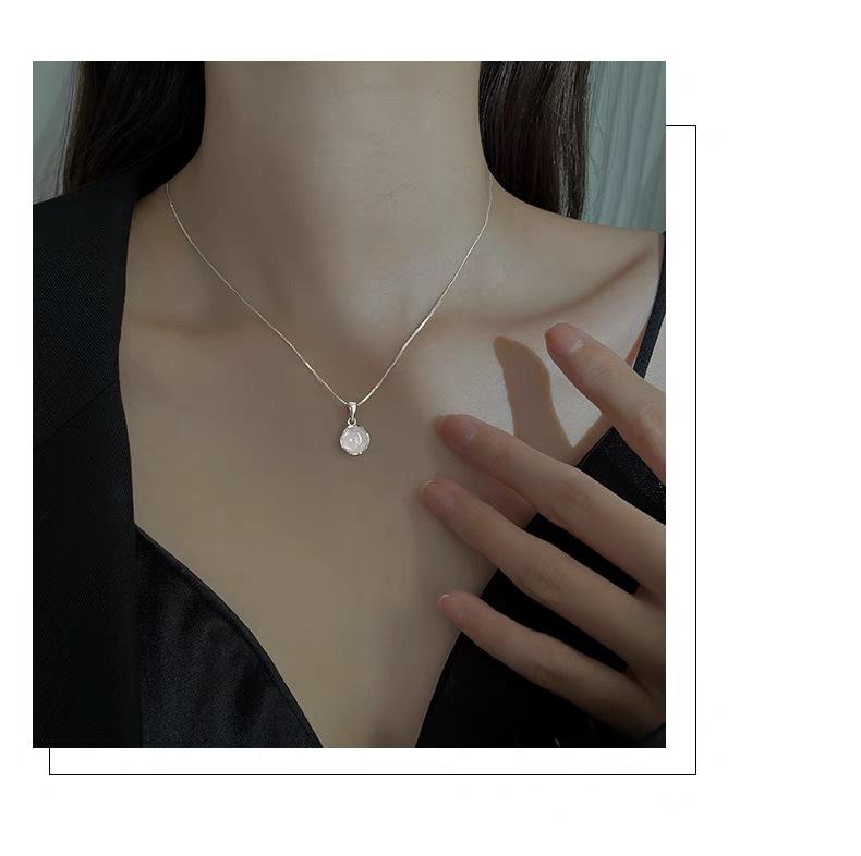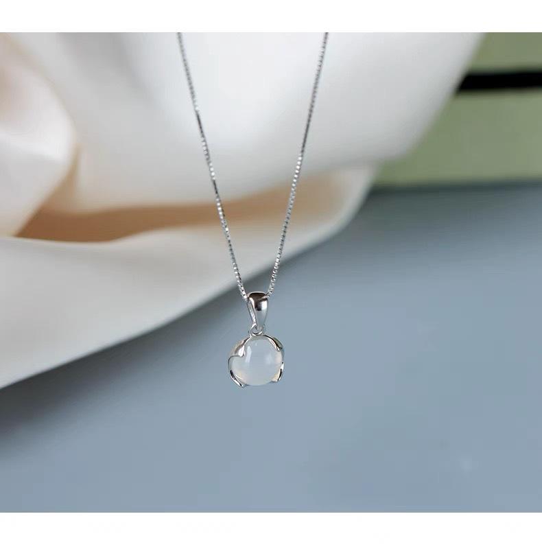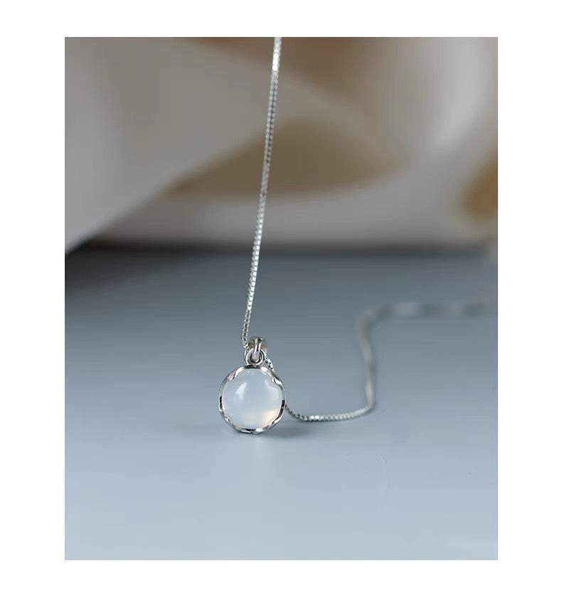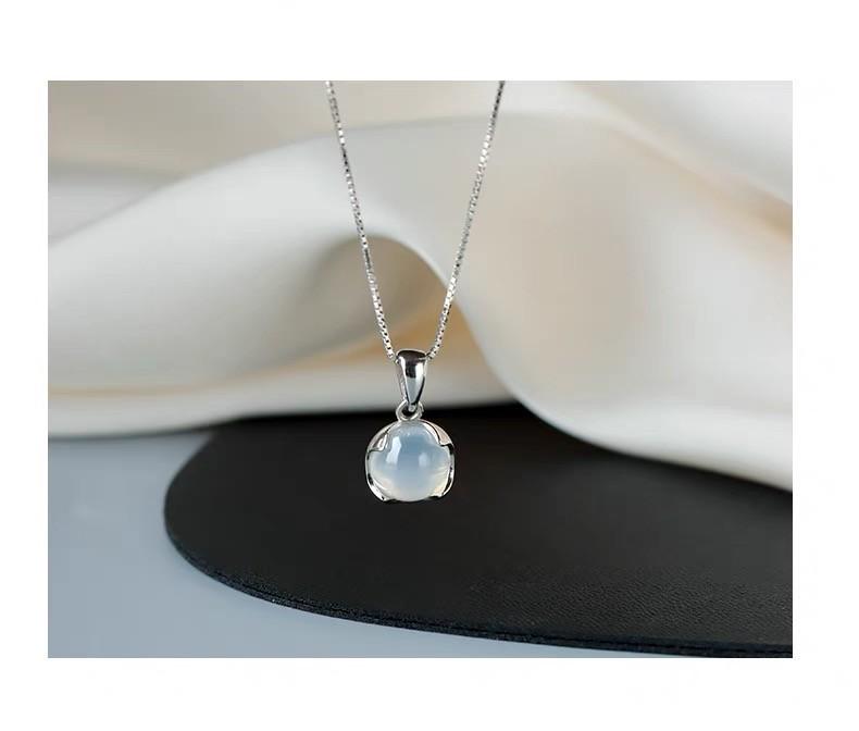 Collar con colgante de cuentas redondas de calcedonia blanca estilo coreano de plata esterlina s925, cadena de clavícula de estilo simple y fresco, suministro de fábrica al por mayor