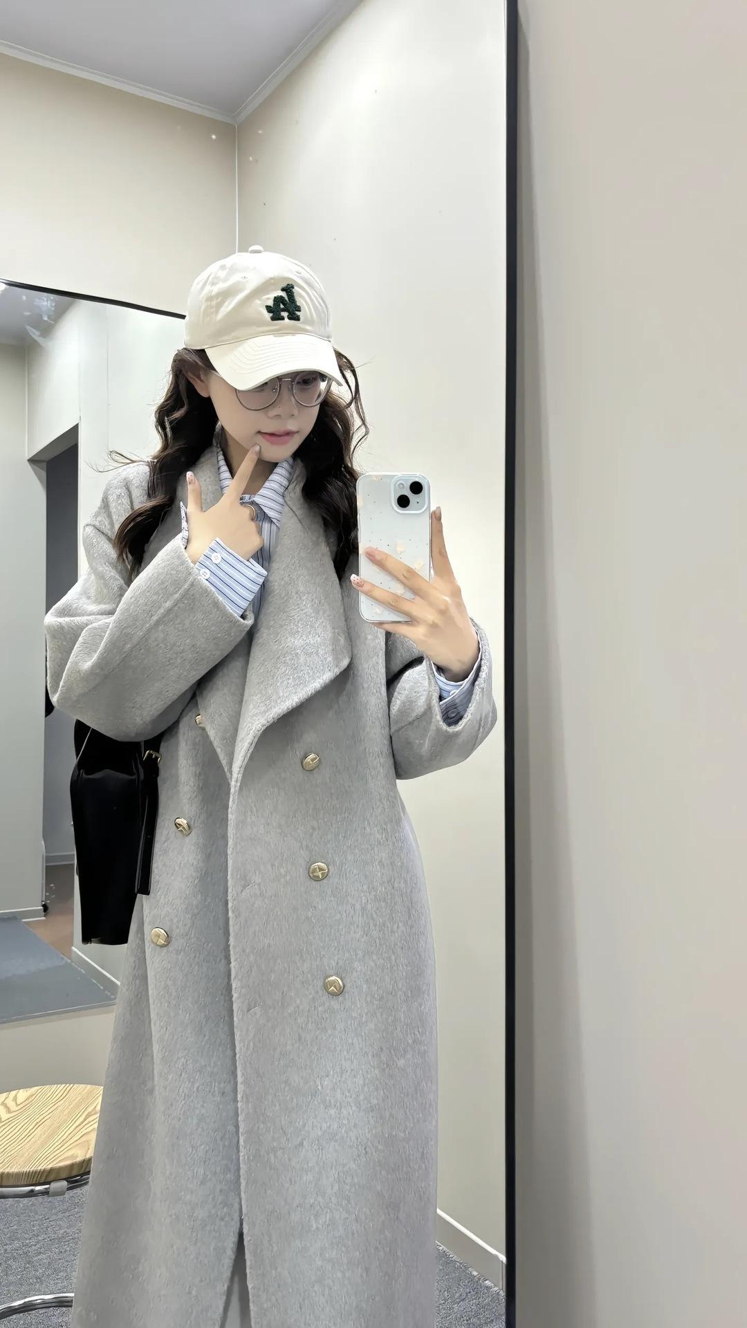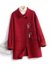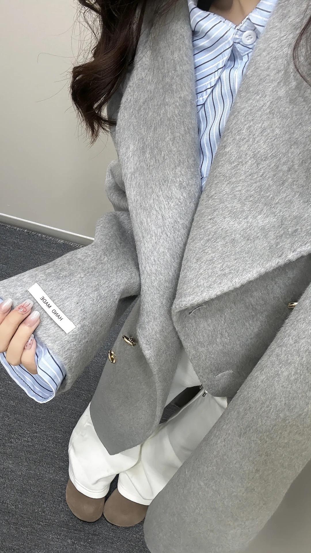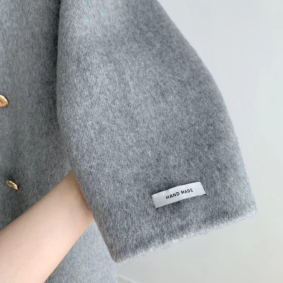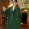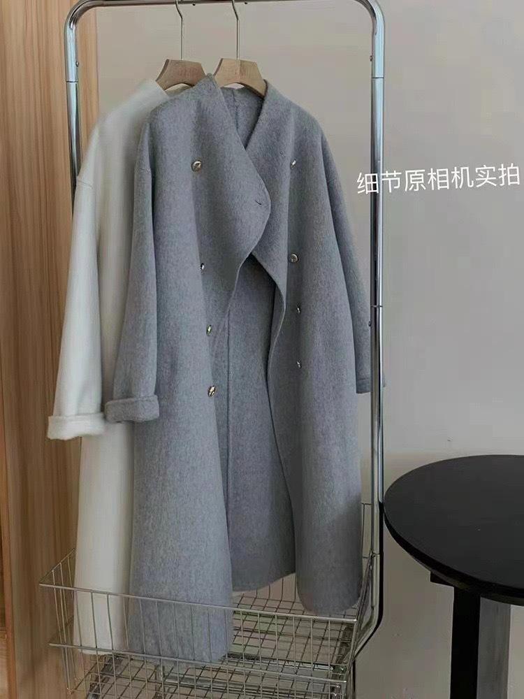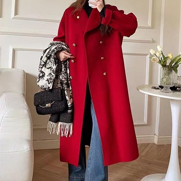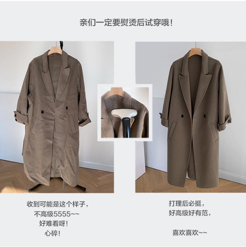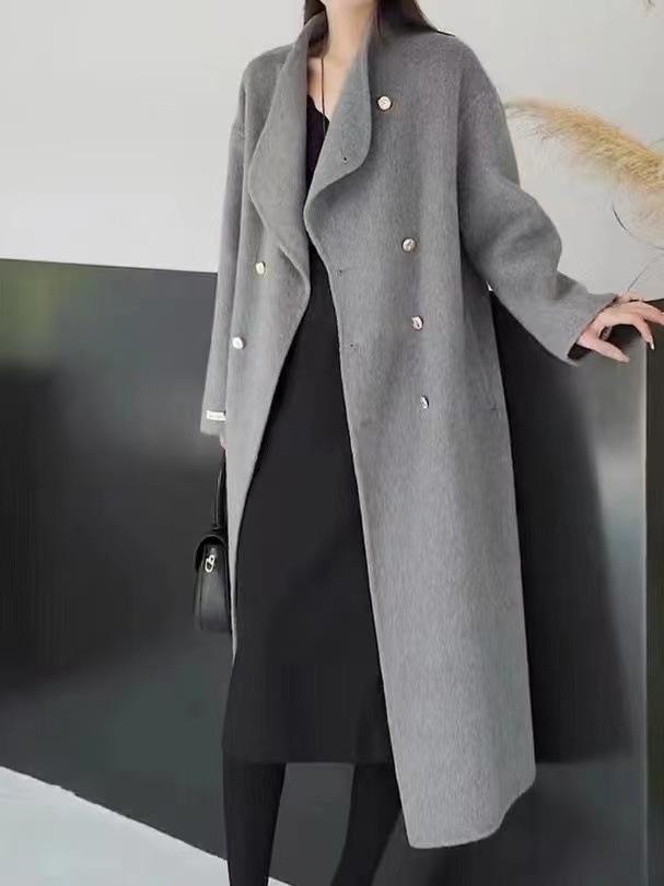 Otoño e Invierno Cuello Alto Doble Botonadura Asimétrico Largo Suelto Cachemira Ropa Exterior para Mujer Ropa Exterior de Alta Gama Elegante Estilo K