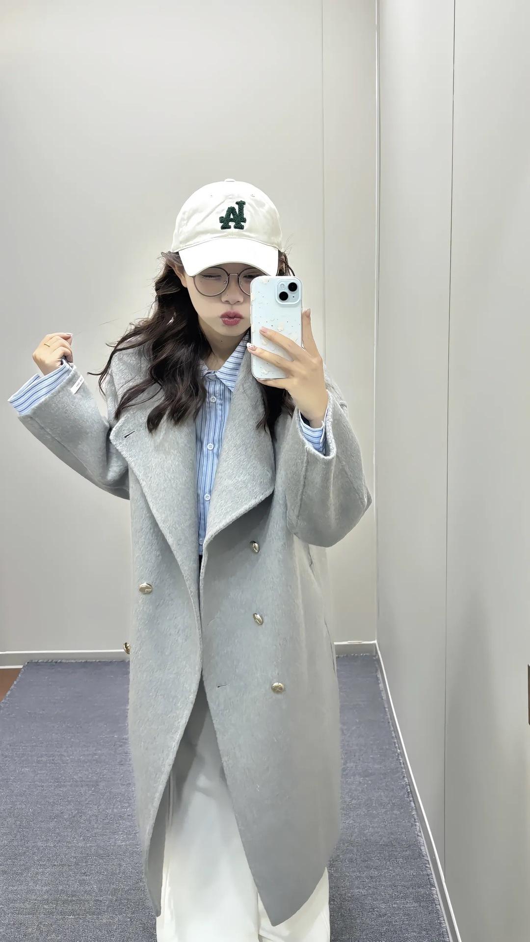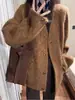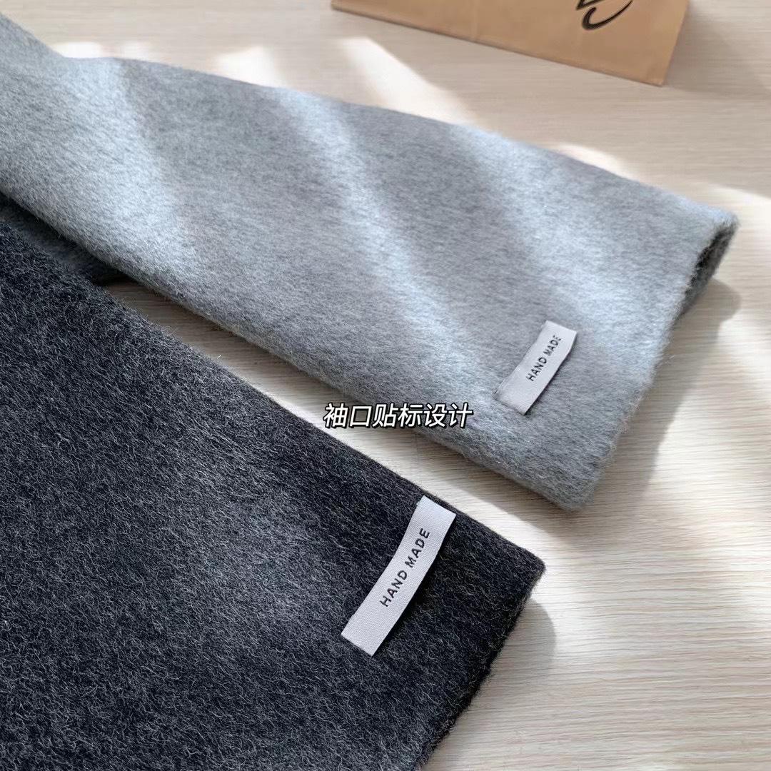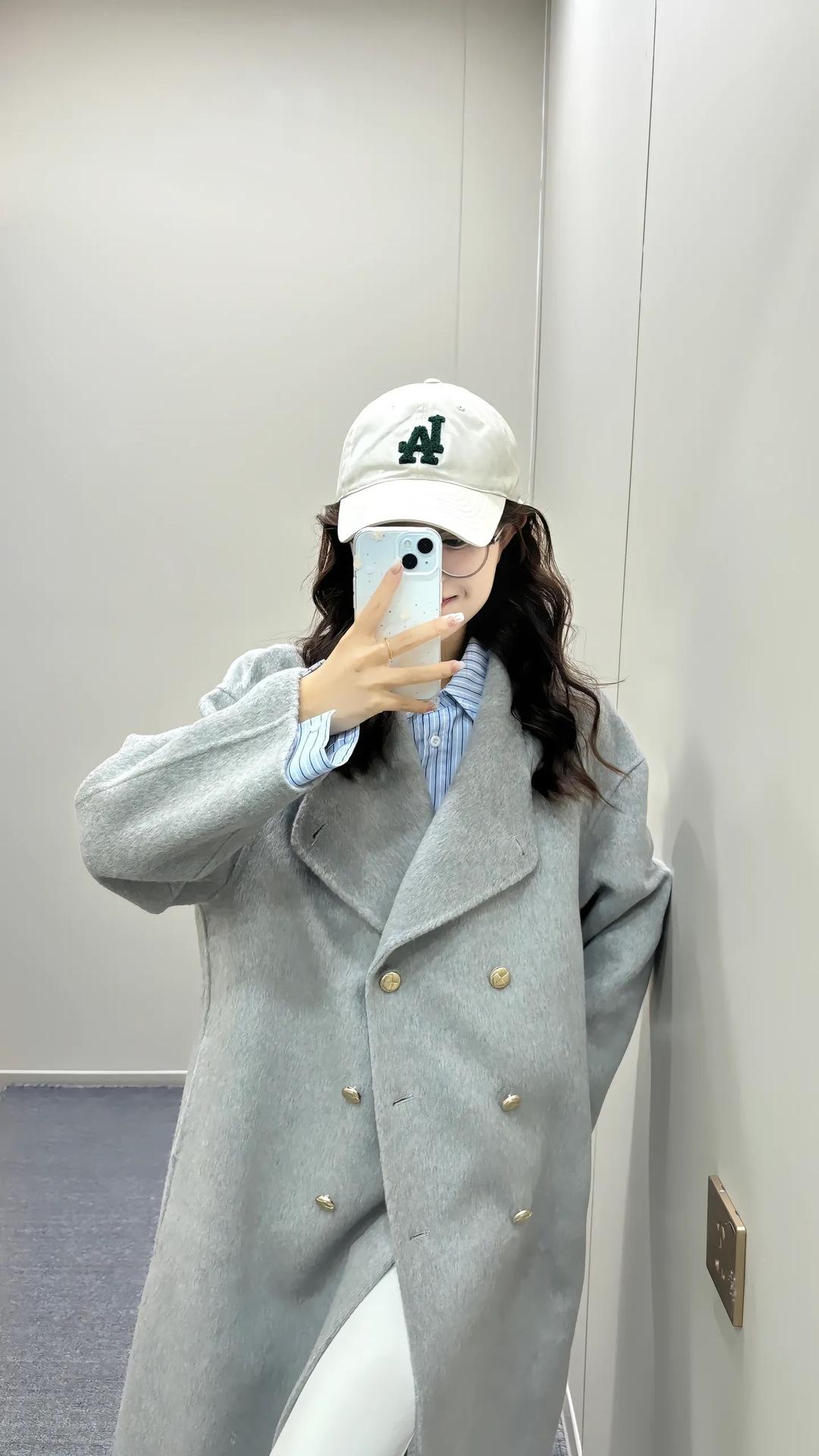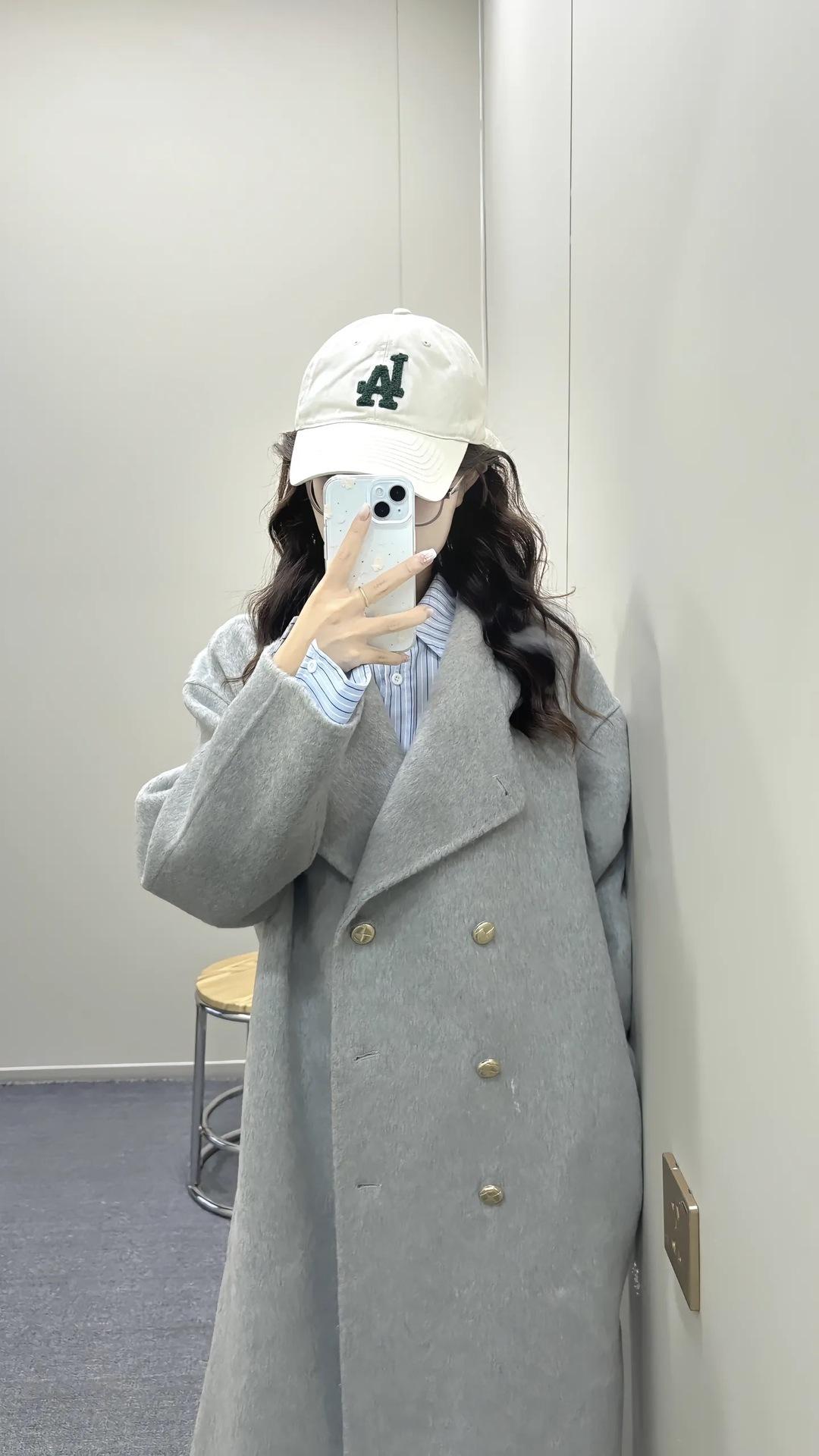 Otoño e Invierno Cuello Alto Doble Botonadura Asimétrico Largo Suelto Cachemira Ropa Exterior para Mujer Ropa Exterior de Alta Gama Elegante Estilo K